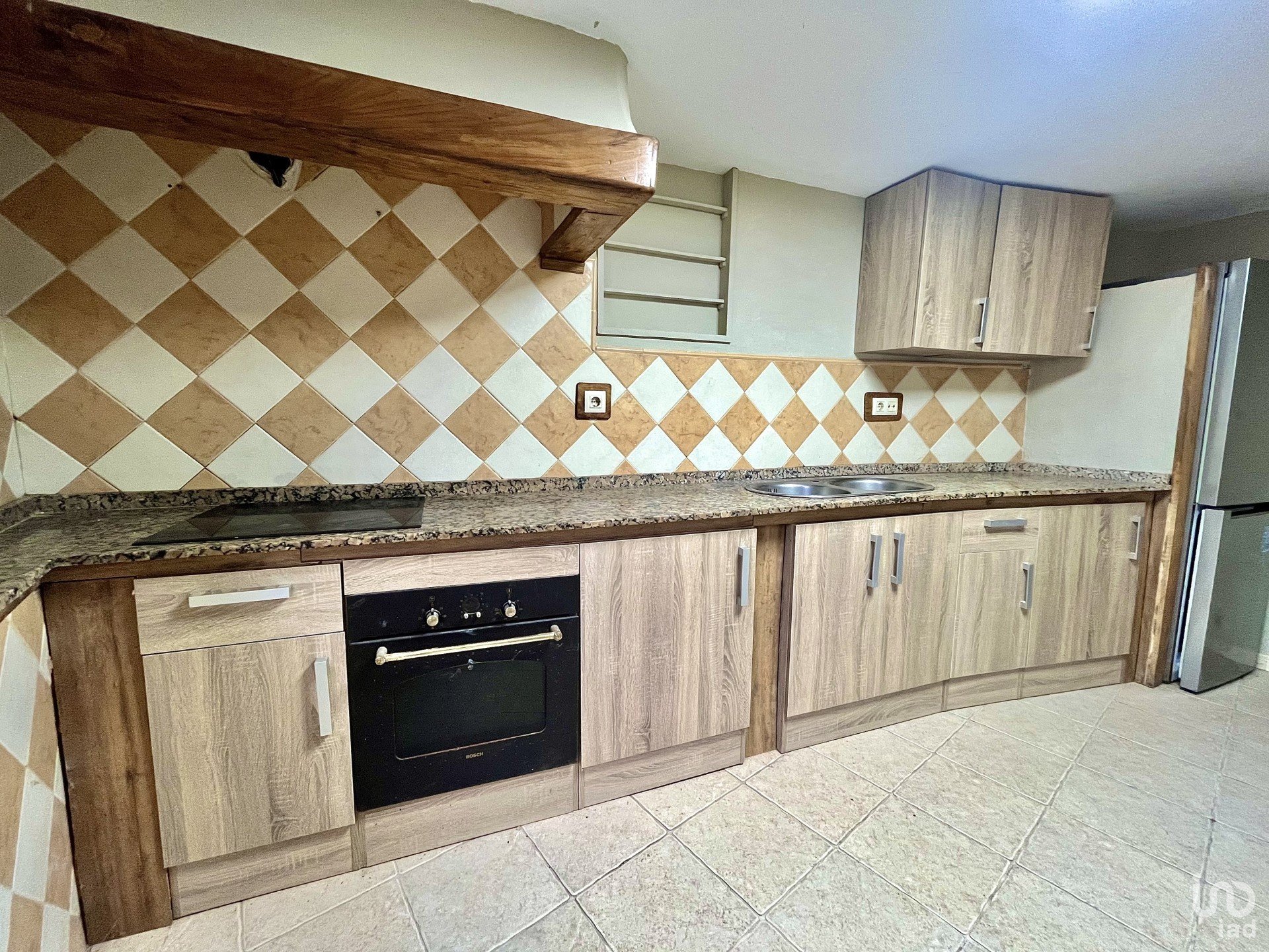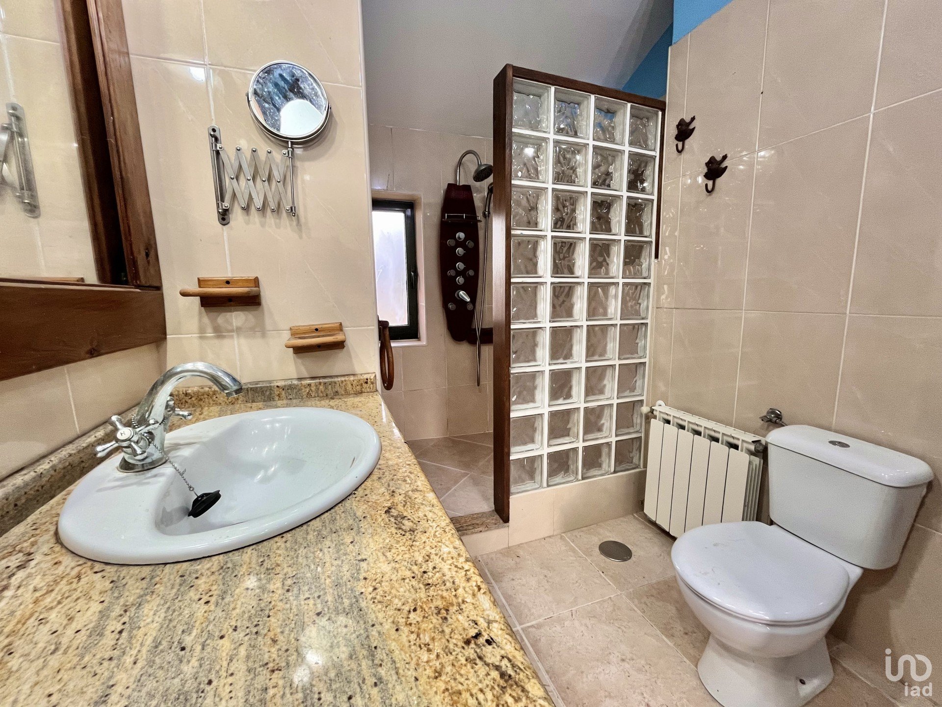 - Planta superior: dos habitaciones con armarios empotrados, una de ellas muy espaciosa, y un baño completo con ducha y doble lavabo.