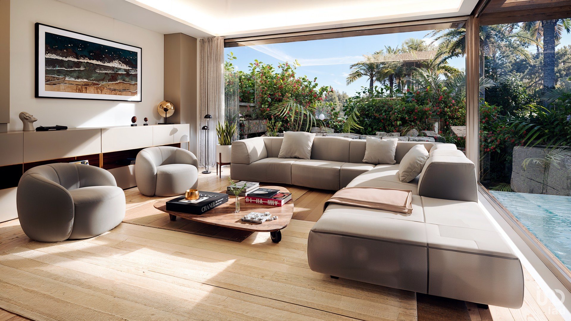 Estas villas cuentan con amplios jardines privados, ideales para el entretenimiento al aire libre y la relajación, así como piscinas de agua salada con un elegante efecto infinito. Mantenga su forma física y bienestar con su propio gimnasio, hammam y sauna. En el interior, las villas están diseñadas con amplias ventanas de piso a techo que inundan los interiores de luz natural, creando espacios de vida aireados y cómodos. El salón de esquina ofrece excelentes vistas de su jardín y terrazas, mientras que el comedor luminoso también ofrece hermosas vistas del jardín, perfecto para disfrutar de las comidas con vistas. La cocina completamente equipada cuenta con electrodomésticos de alta calidad y una isla atractiva y funcional.