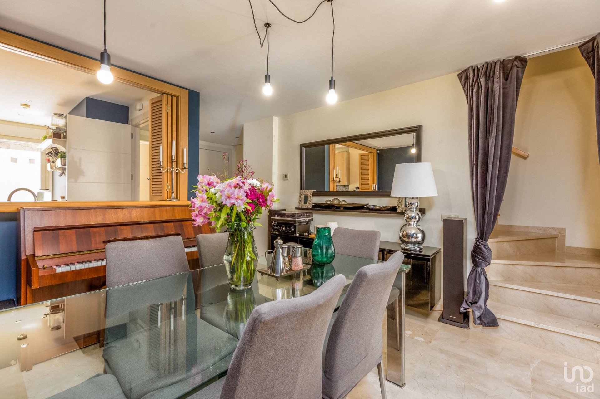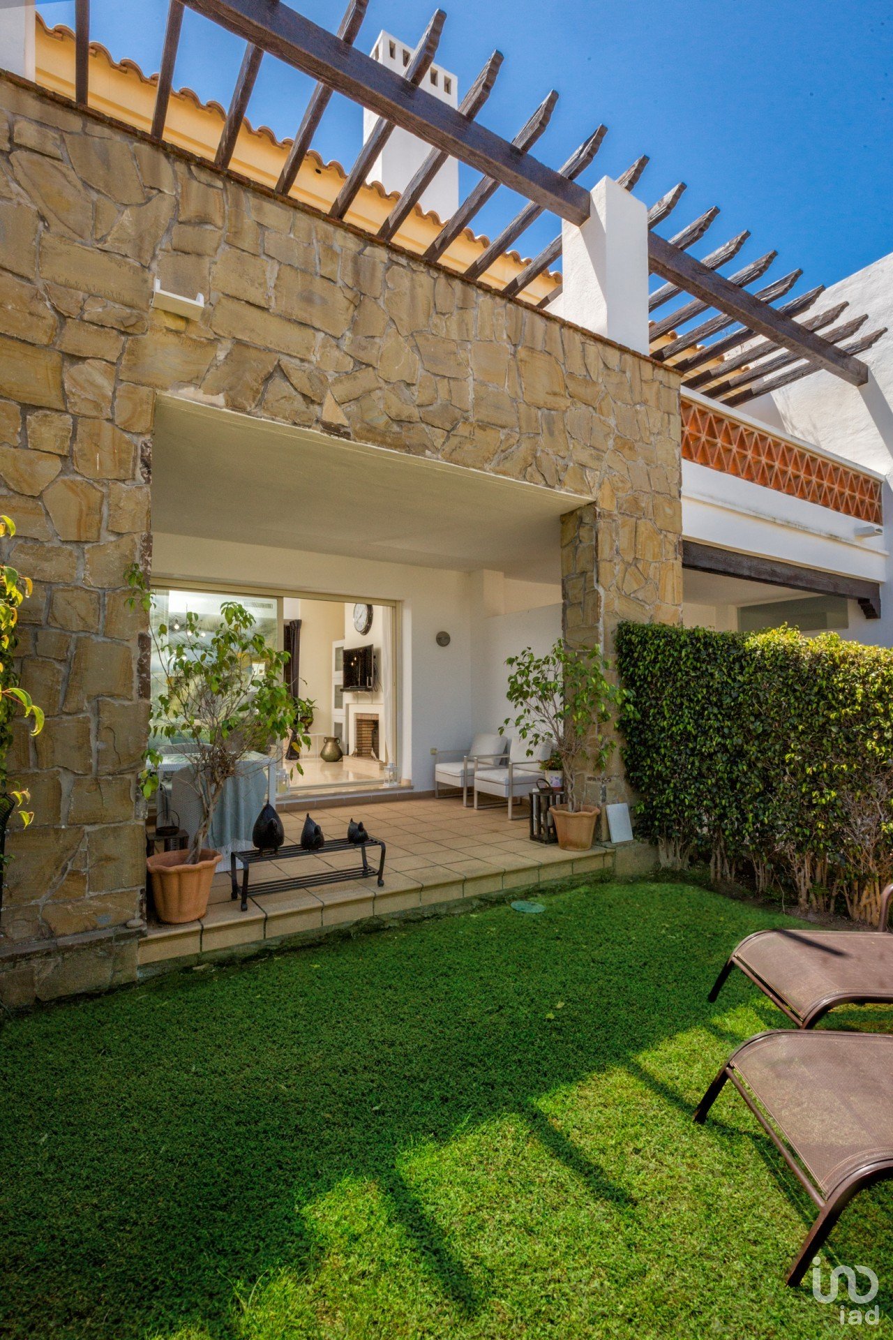 PLANTA BAJA: Espacioso salón-comedor con chimenea, cocina independiente totalmente equipada, aseo de cortesía y acceso directo al jardín privado con zona chill-out.