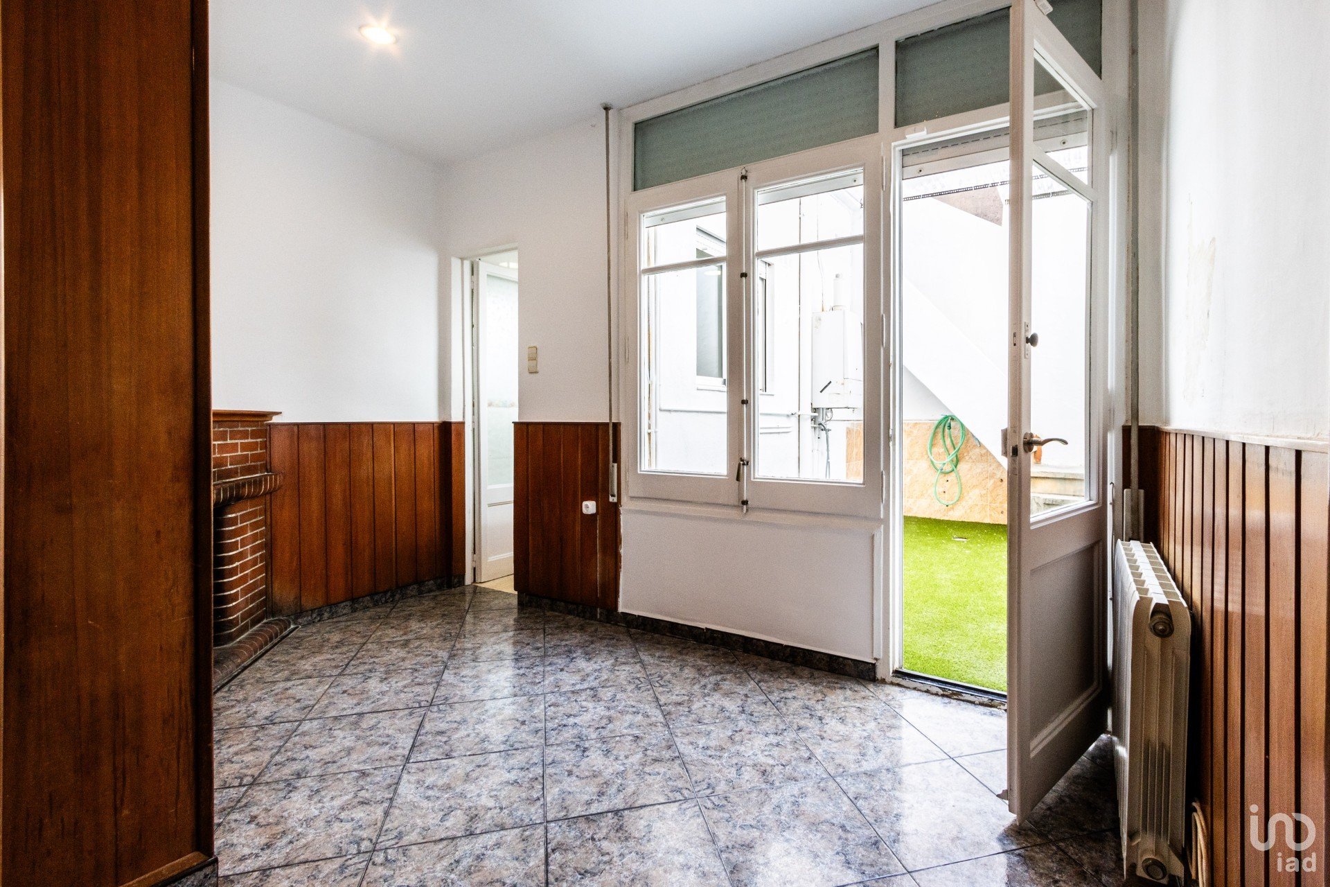 Una vez recorrido el pasillo, llegamos a la zona de día de la vivienda, donde tendremos el comedor, con división de ambientes: zona de salón-comedor y sala de estar. En esta estancia destaca una chimenea de construcción antigua, no solo por su encanto y diseño, sino también por su excelente funcionamiento. Tiene un tiro muy eficiente que evita que el humo entre en la vivienda, garantizando así una experiencia segura, limpia y confortable. Es un elemento que aporta calidez tanto en lo estético como en lo funcional, ideal para disfrutar en los meses más fríos. Este salón da acceso a la joya de la corona: un patio con césped artificial donde disfrutar al aire libre con familia y amigos de comidas, reuniones y/o celebraciones, con la privacidad y comodidad óptimas. También tendremos acceso a la cocina: amueblada y equipada, de forma alargada en paralelo hasta el final de dicho patio. Al final del mismo, encontramos unas escaleras que nos llevarán a una pequeña terraza, con unas vistas panorámicas orientadas al este de la ciudad, y terminaremos en un pequeño lavadero.