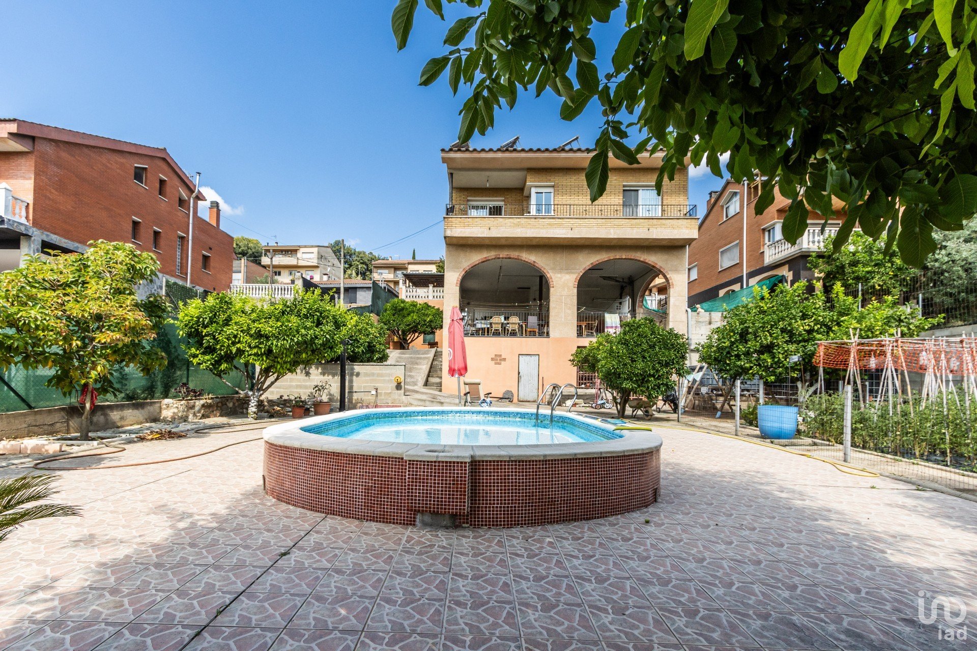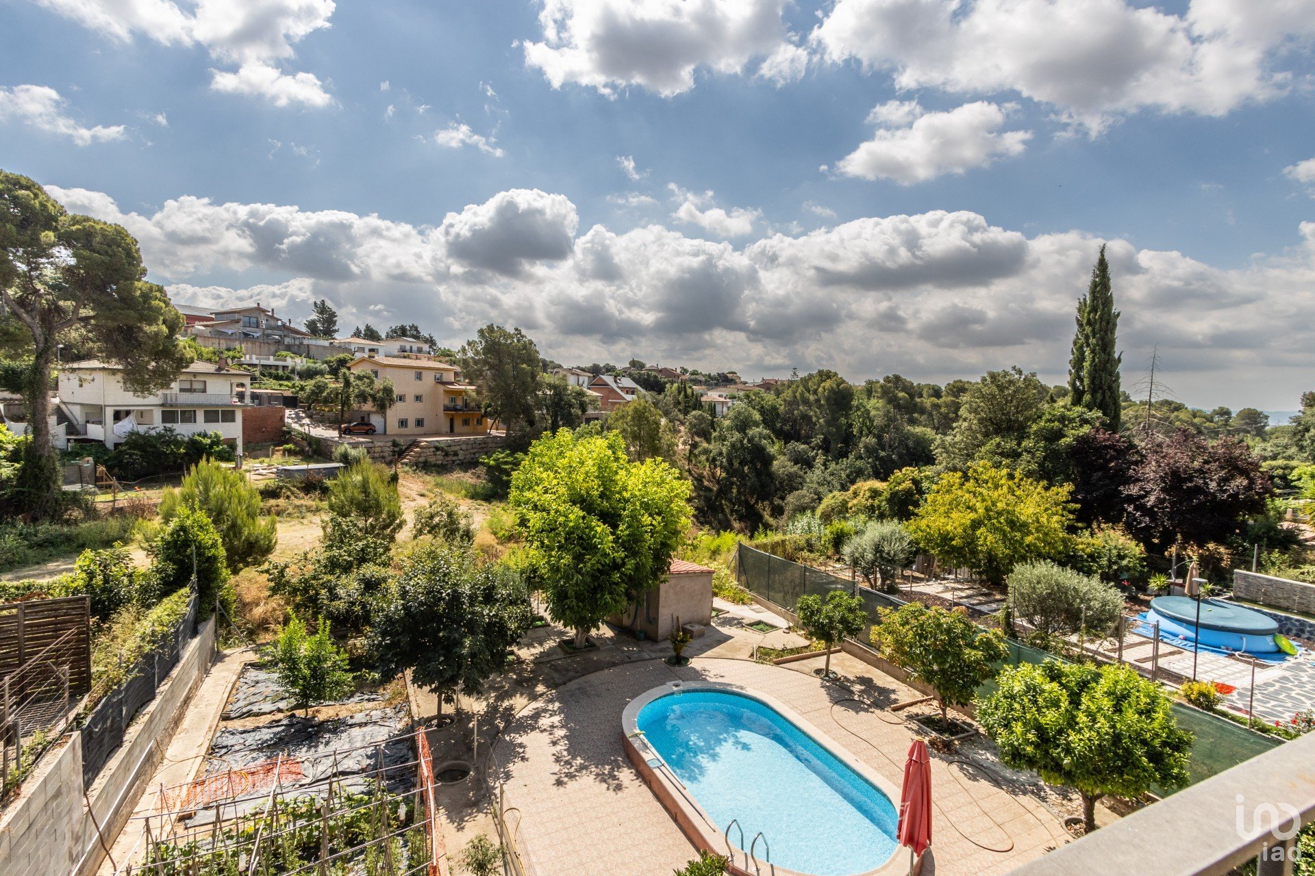 En el exterior, disfrutarás de un espacio único y privado: zona de barbacoa, gran patio con variedad de arboles, una piscina de obra, zonas de sombra con árboles, varios espacios de almacenaje y un huerto propio, ideal para cultivar tus propias frutas y verduras.
