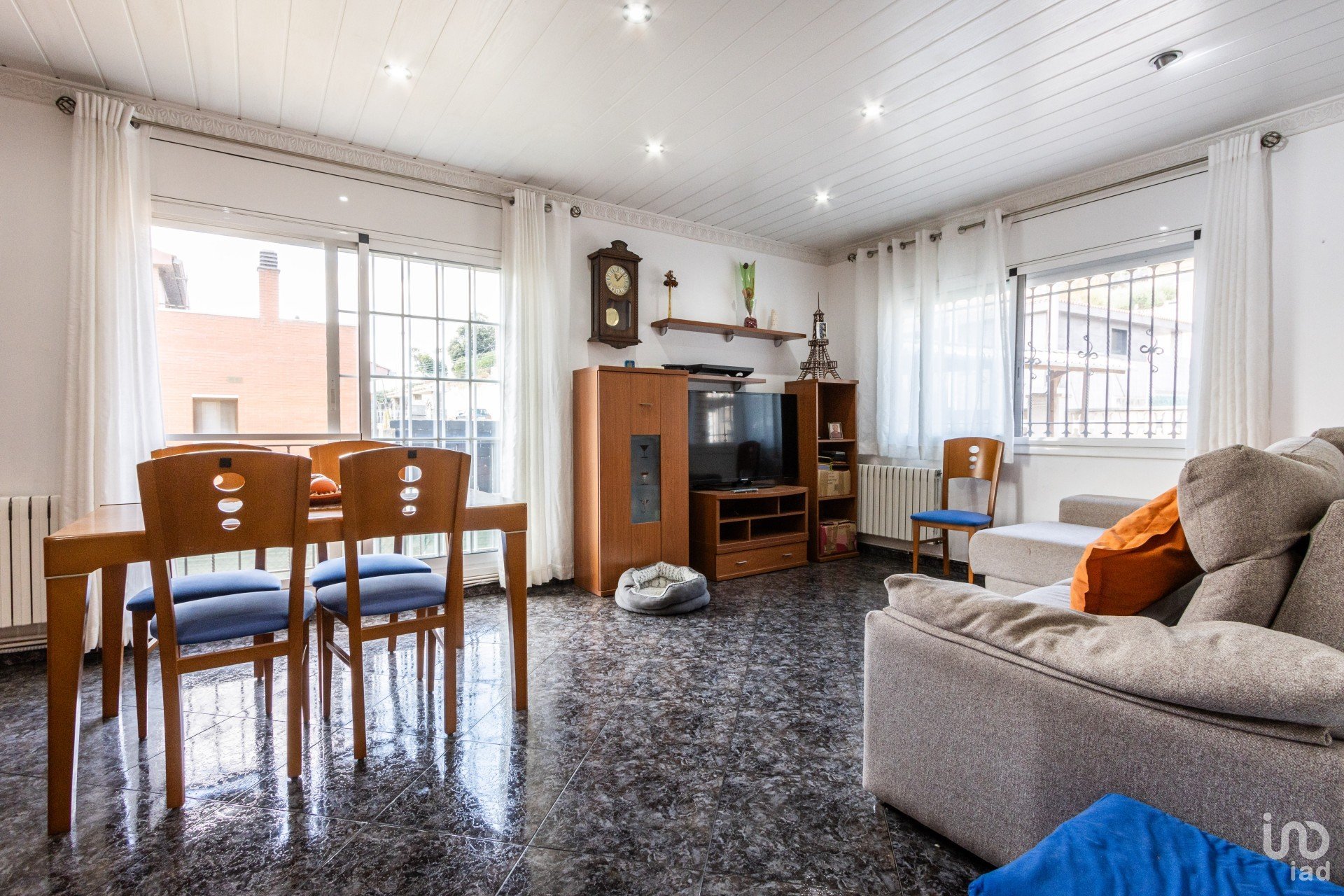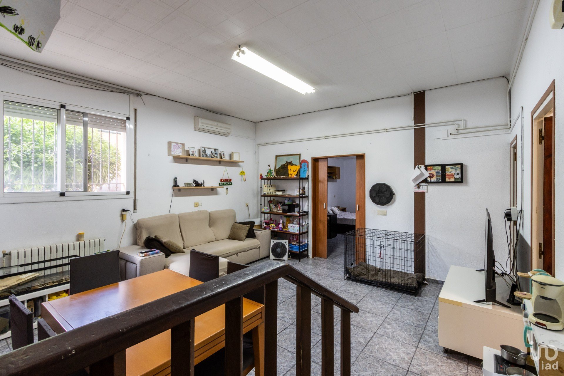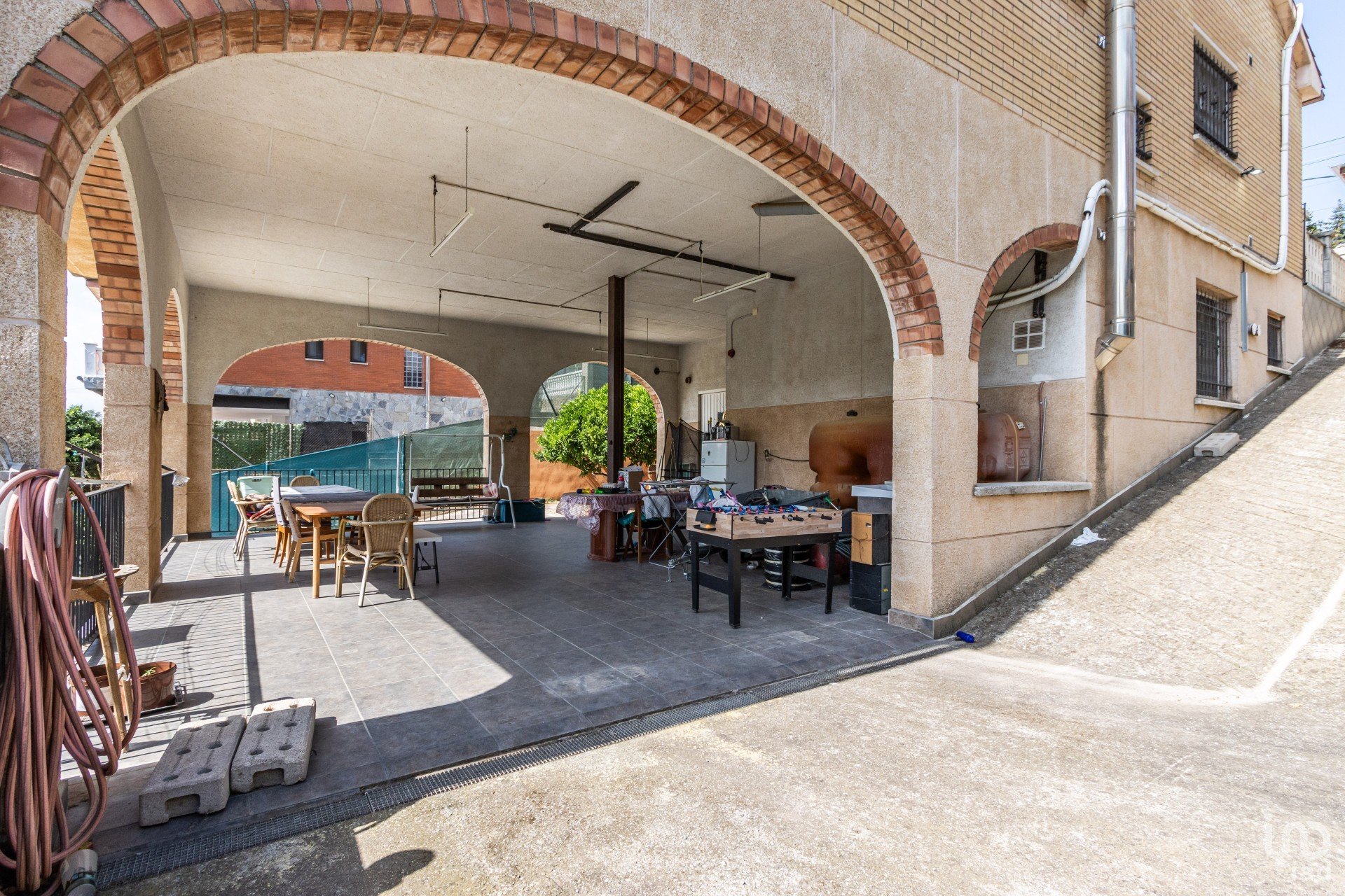 La planta inferior (-1) ha sido completamente reformada y convertida en una segunda vivienda con entrada independiente. Dispone de un gran comedor, cocina propia, baño completo y tres habitaciones dobles. Desde aquí se accede a un porche cubierto, perfecto para celebraciones y momentos al aire libre.