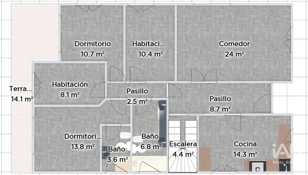 Al acceder por la planta principal (planta 0), un recibidor distribuye los espacios: a mano derecha se abre un acogedor salón-comedor, y a la izquierda una amplia cocina con chimenea, perfecta para los días de invierno. Más adelante, encontrarás un baño completo, una habitación principal tipo suite con baño privado y salida a una terraza privada, una gran habitación individual y una habitación doble con acceso a la misma terraza.