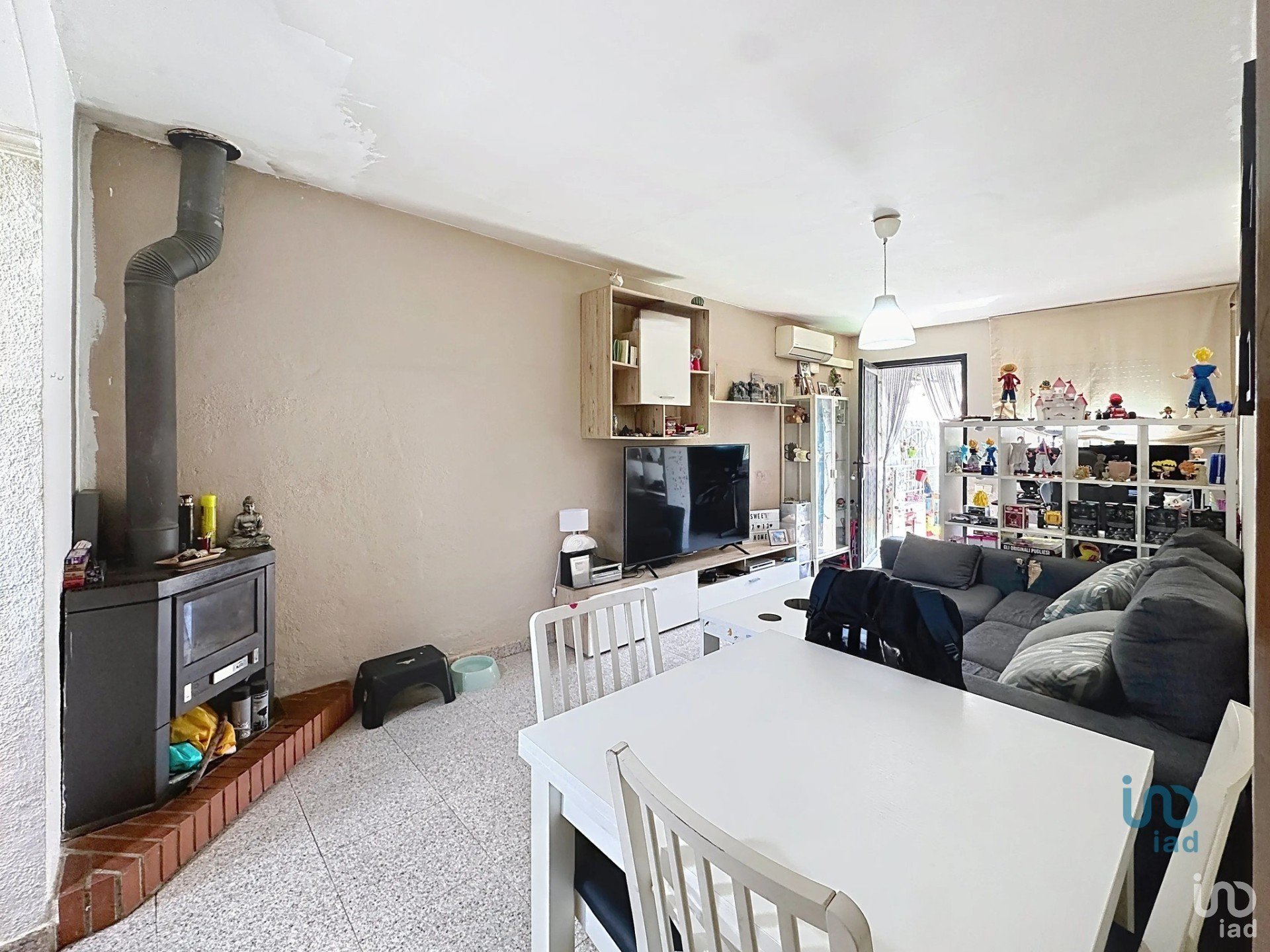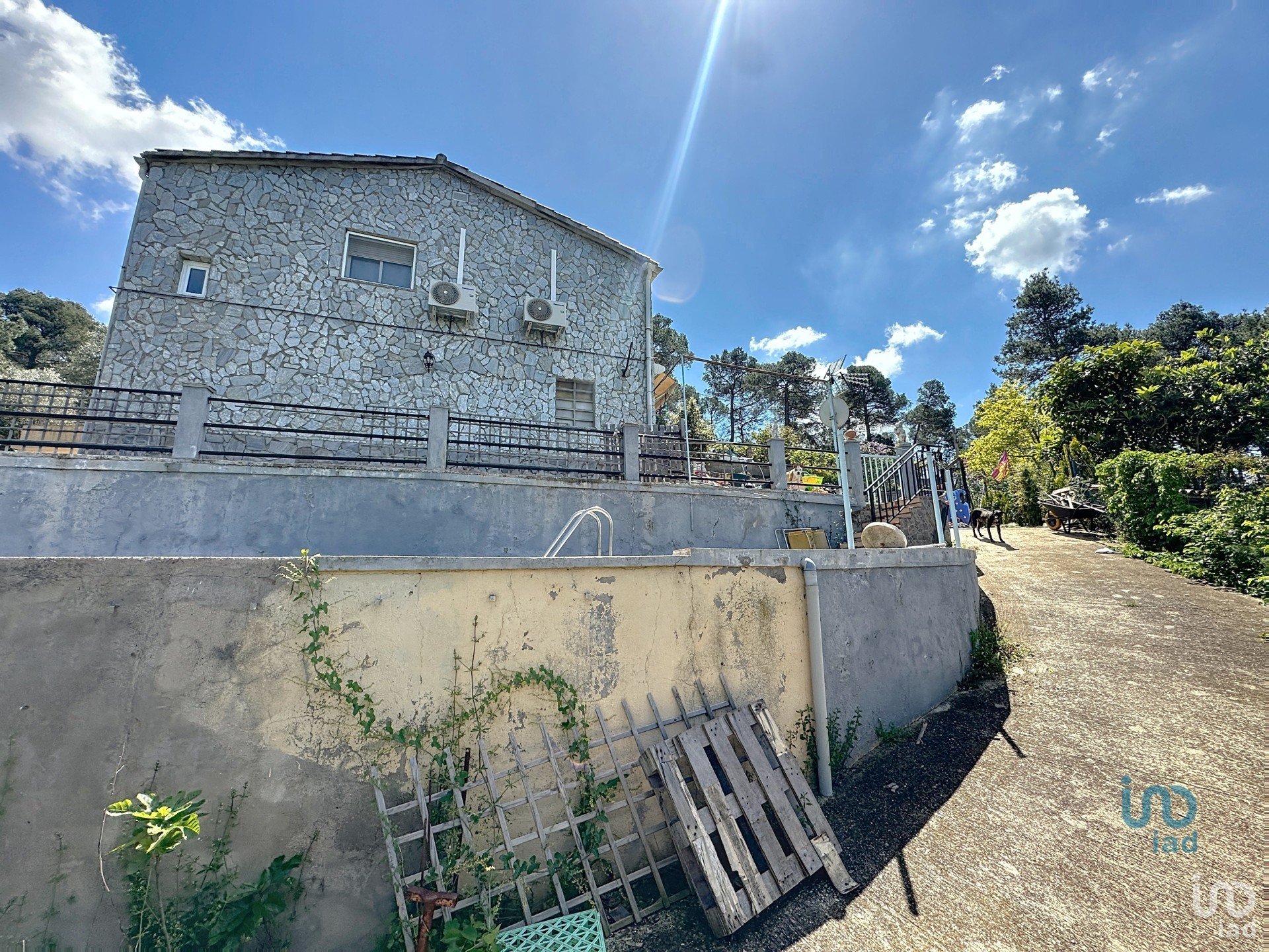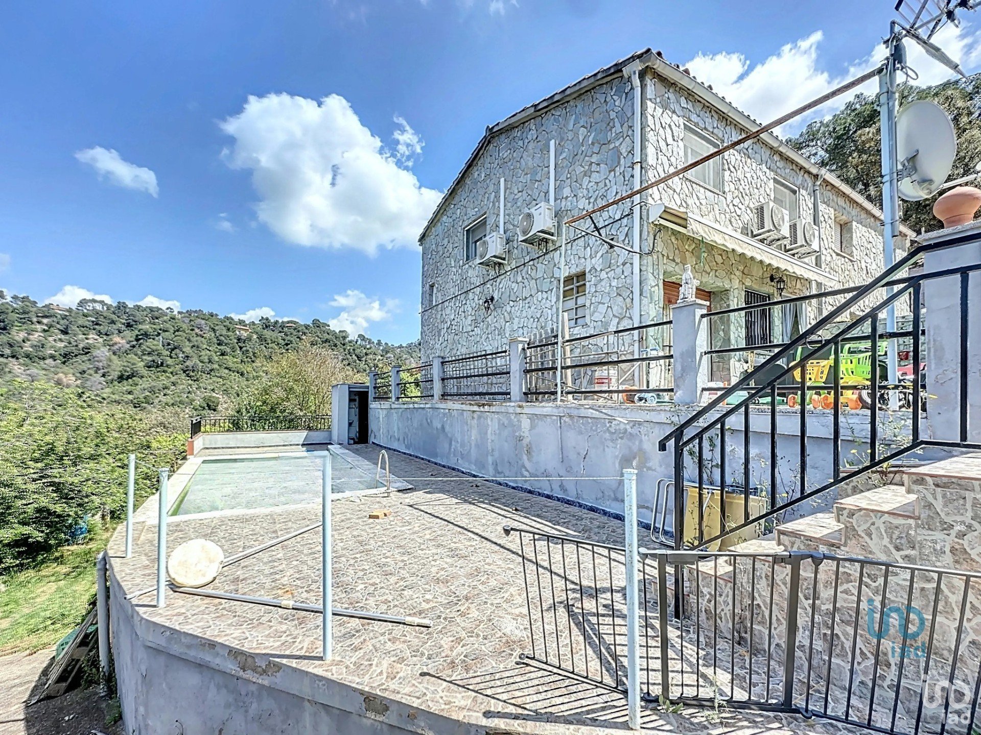 Dispone de aire acondicionado con bomba de frío/calor, chimenea, suelos de gres y ventanas de aluminio con doble acristalamiento. La vivienda cuenta también con descalcificador, cocina con gas butano y piscina con bomba instalada hace cinco años.