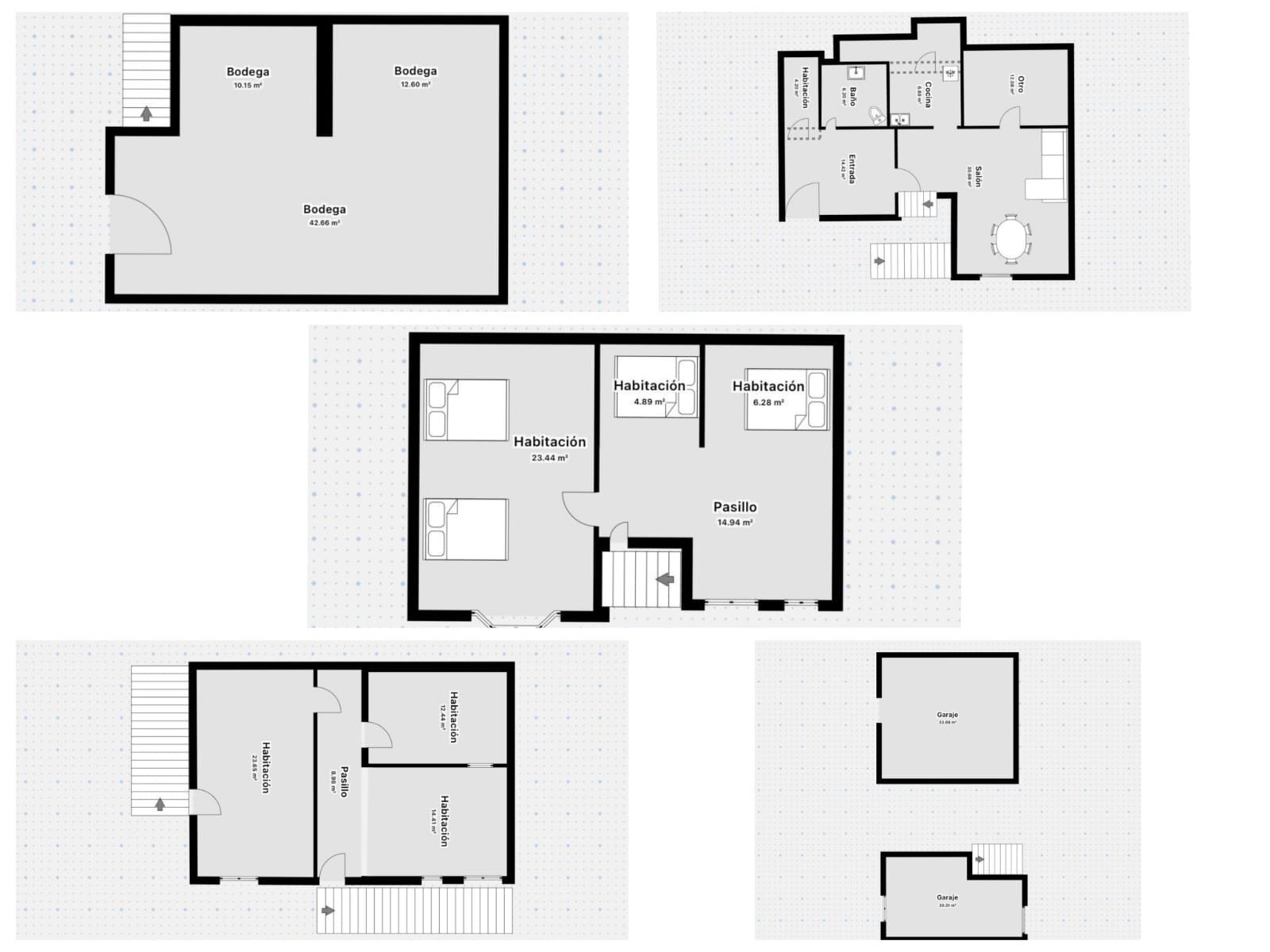 La vivienda ofrece distintas alternativas por su gran espacio. Consta de 5 plantas, con posibilidad de acceder por dos entradas de distintas calles.