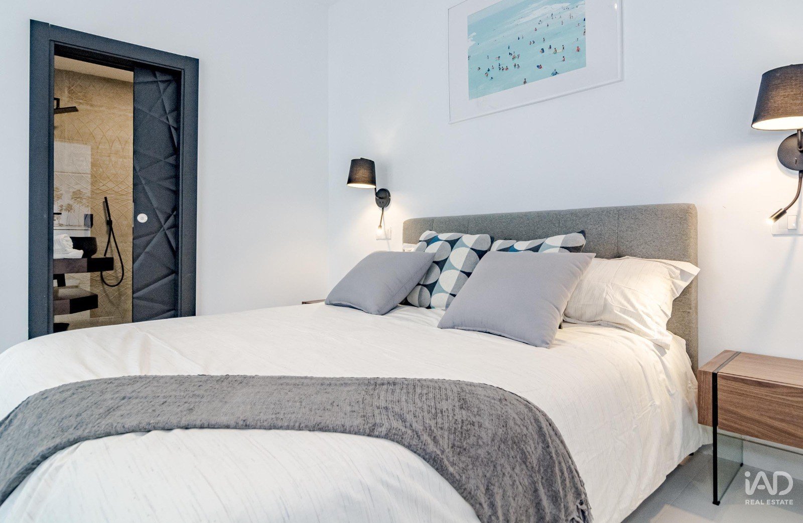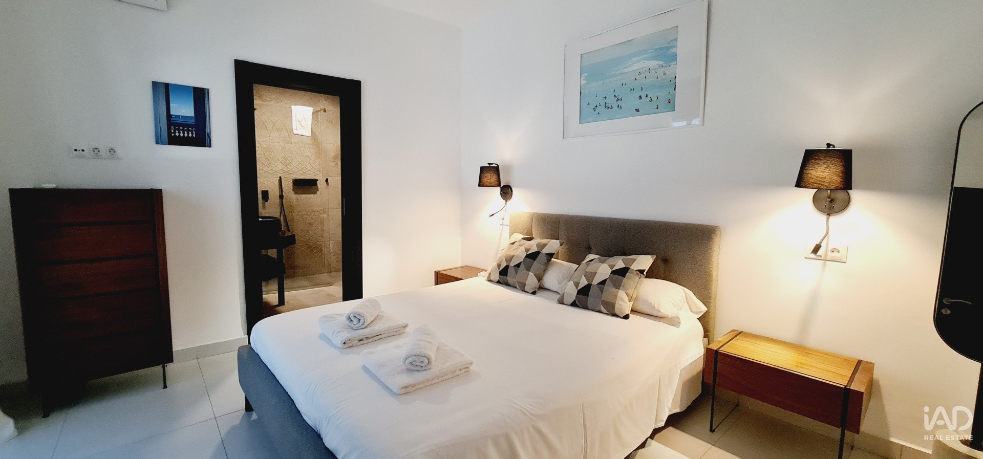 2 dormitorios amplios, cada uno con baño en suite, armarios empotrados y balcones exteriores.