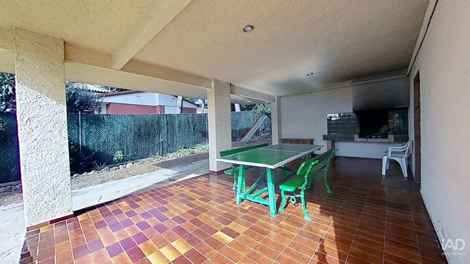 Amplia parcela de 1.027 m² con piscina, Barbacoa y zonas de ocio para los niños al aire libre.