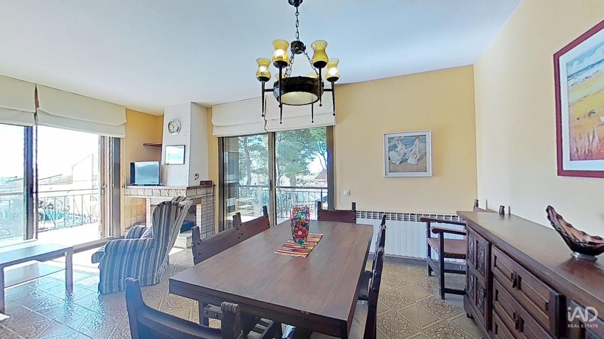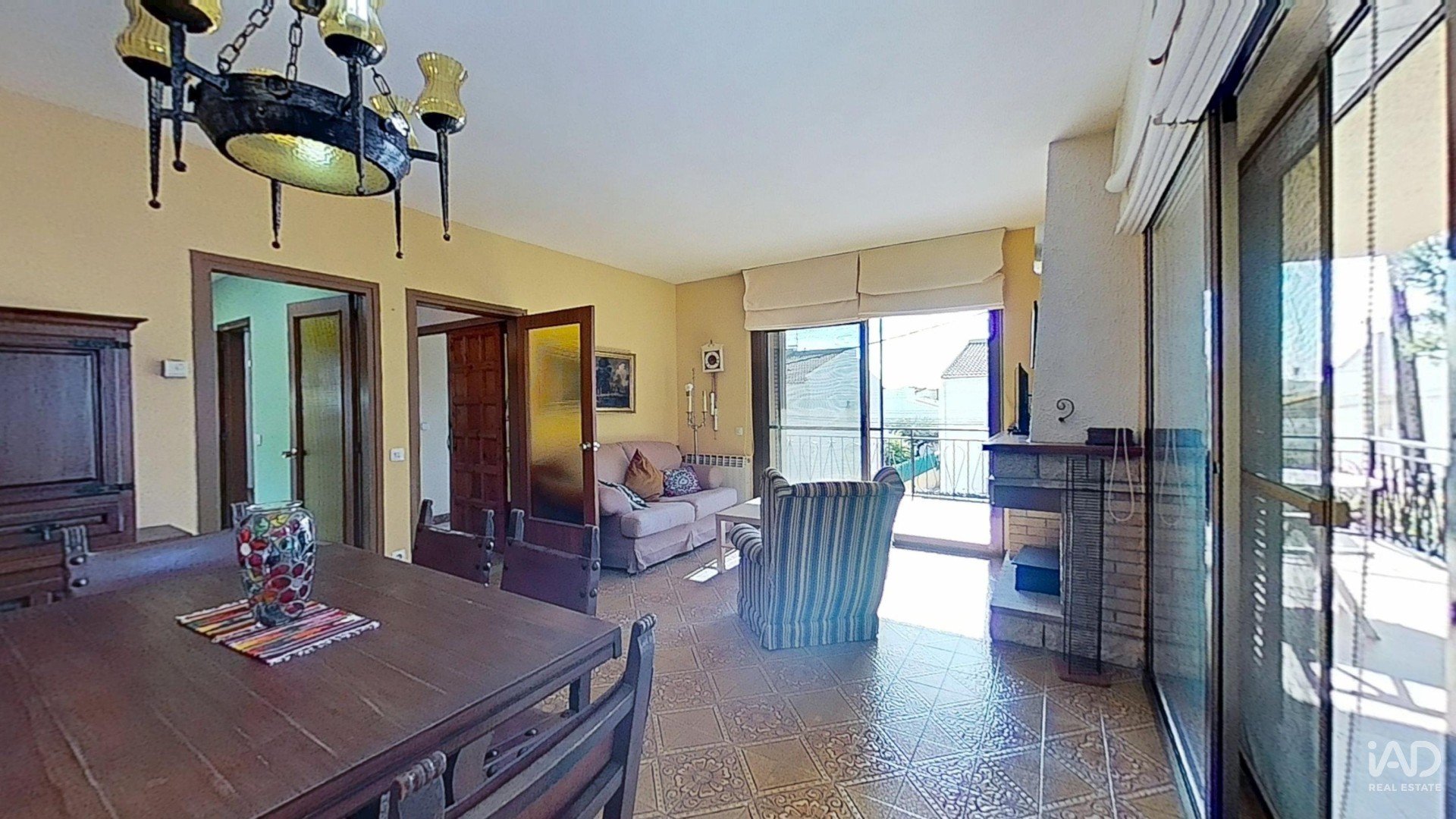 Salón luminoso con chimenea y salida a terraza sur