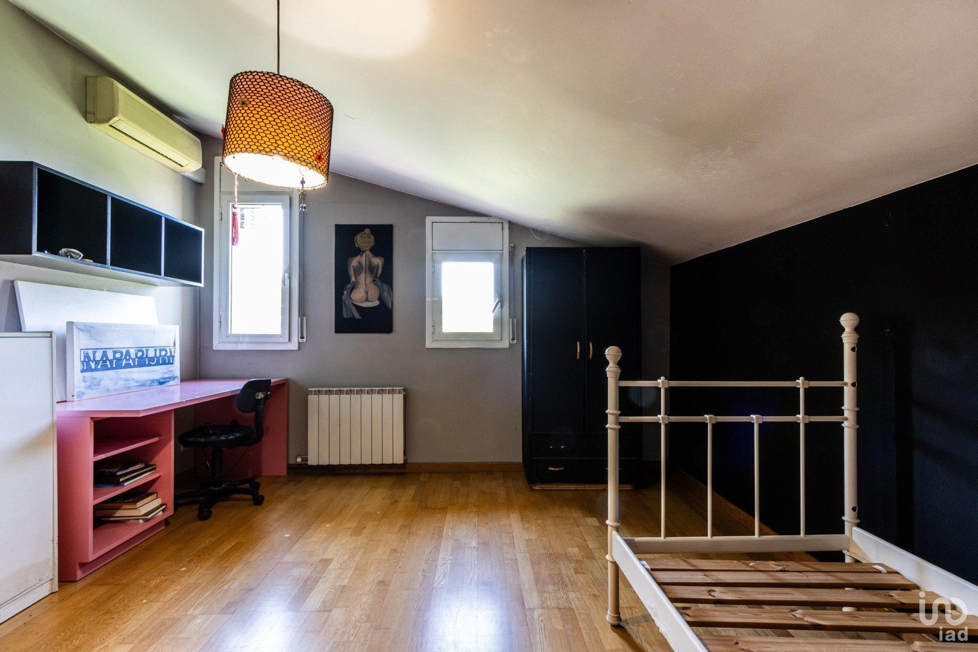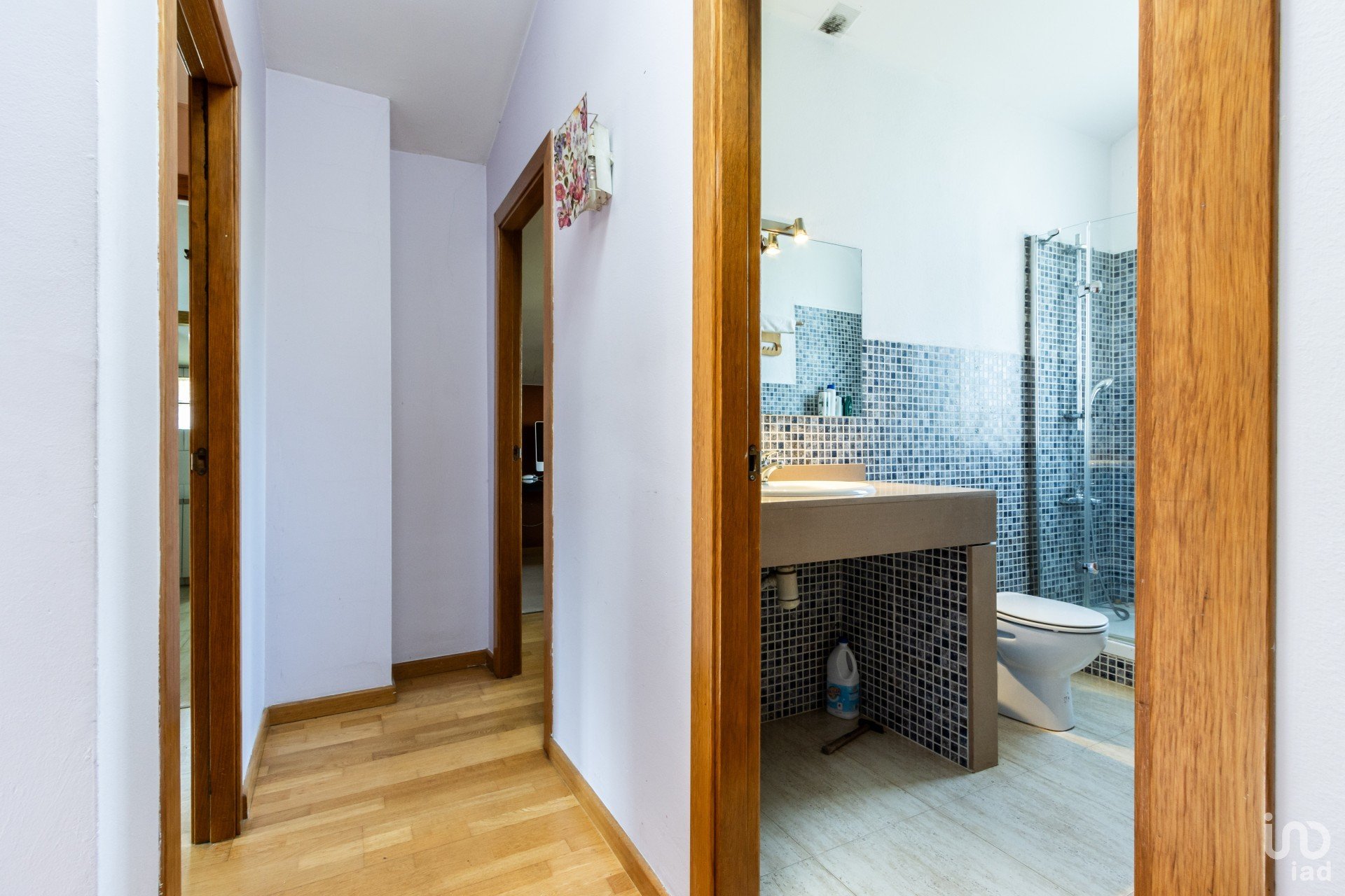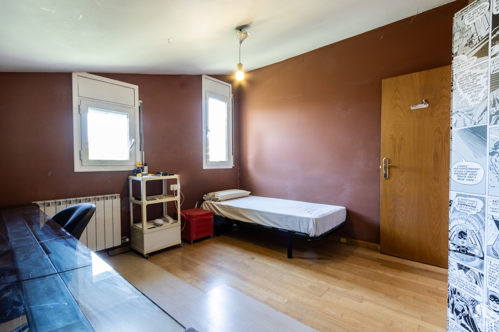 En la planta superior, se ubica la zona de noche, con cuatro habitaciones dobles. Una de ellas es una suite con vestidor y baño completo, ofreciendo un espacio privado y cómodo. Las otras tres habitaciones comparten un baño completo, perfectas para la familia o invitados.
