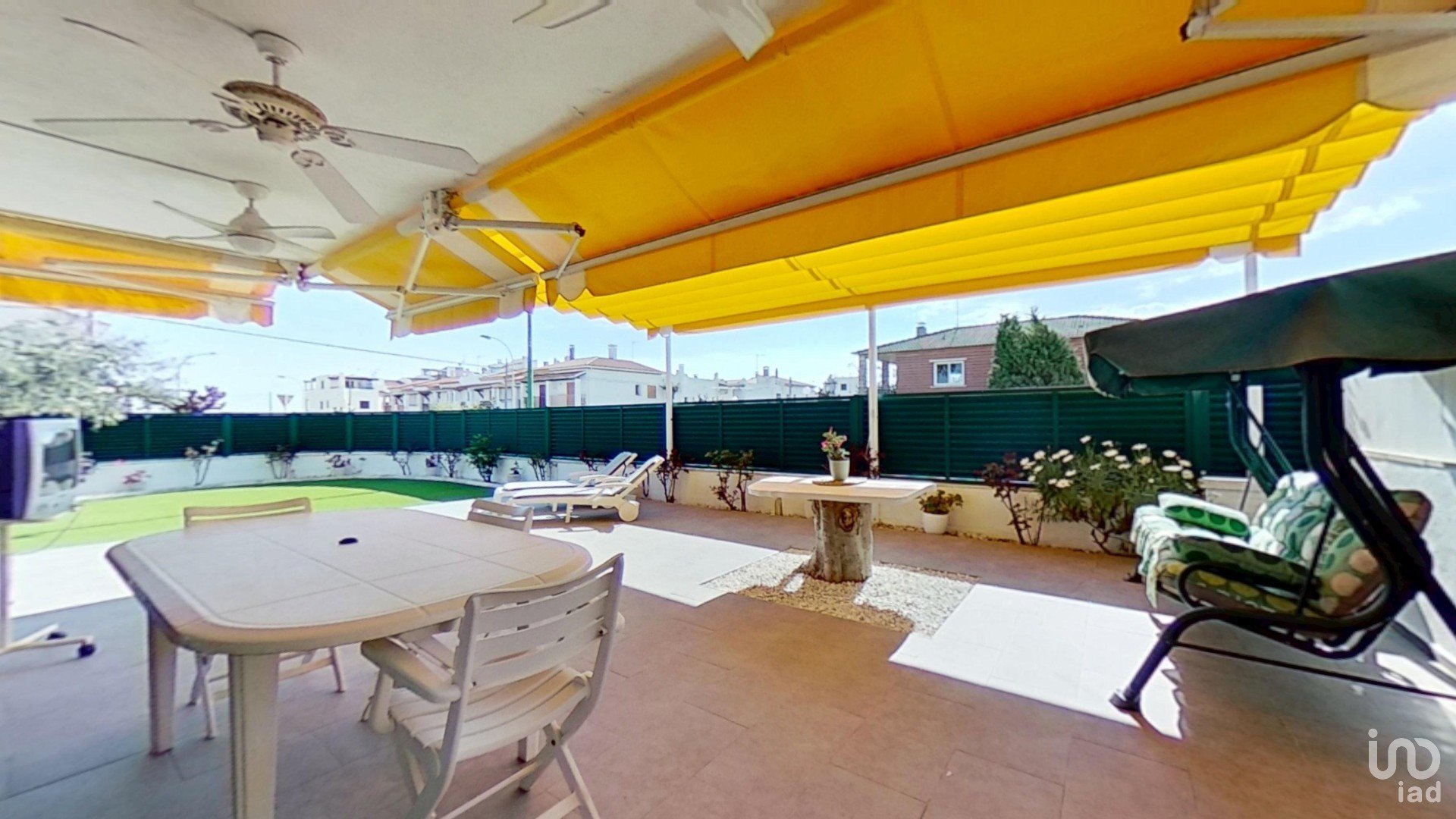 En el exterior, esta hermosa casa adosada esquinera con orientación suroeste se sitúa en un terreno de 220 m² con vallado recién reformado de aluminio, con un amplio jardín de césped artificial instalado hace 1 año, perfecto para disfrutar al aire libre. Dispone de una barbacoa de obra con pica, ideal para reuniones familiares, una ducha exterior, instalación de agua y un porche frontal y uno lateral, equipados con toldos y también con ventiladores y pérgola para mayor comodidad en los días cálidos. Su espaciosa distribución exterior ofrece múltiples opciones para el descanso y el entretenimiento y también para la privacidad.