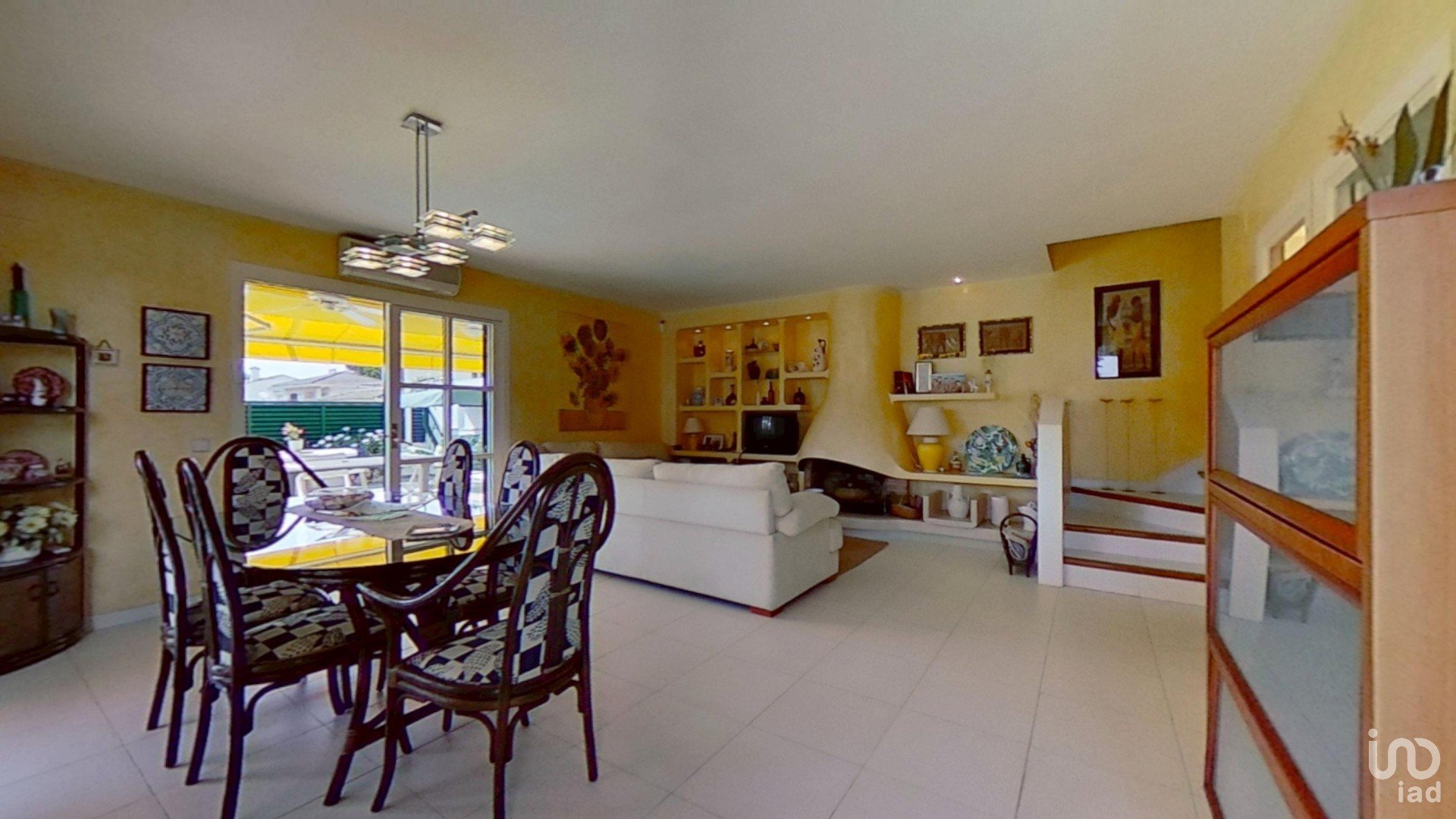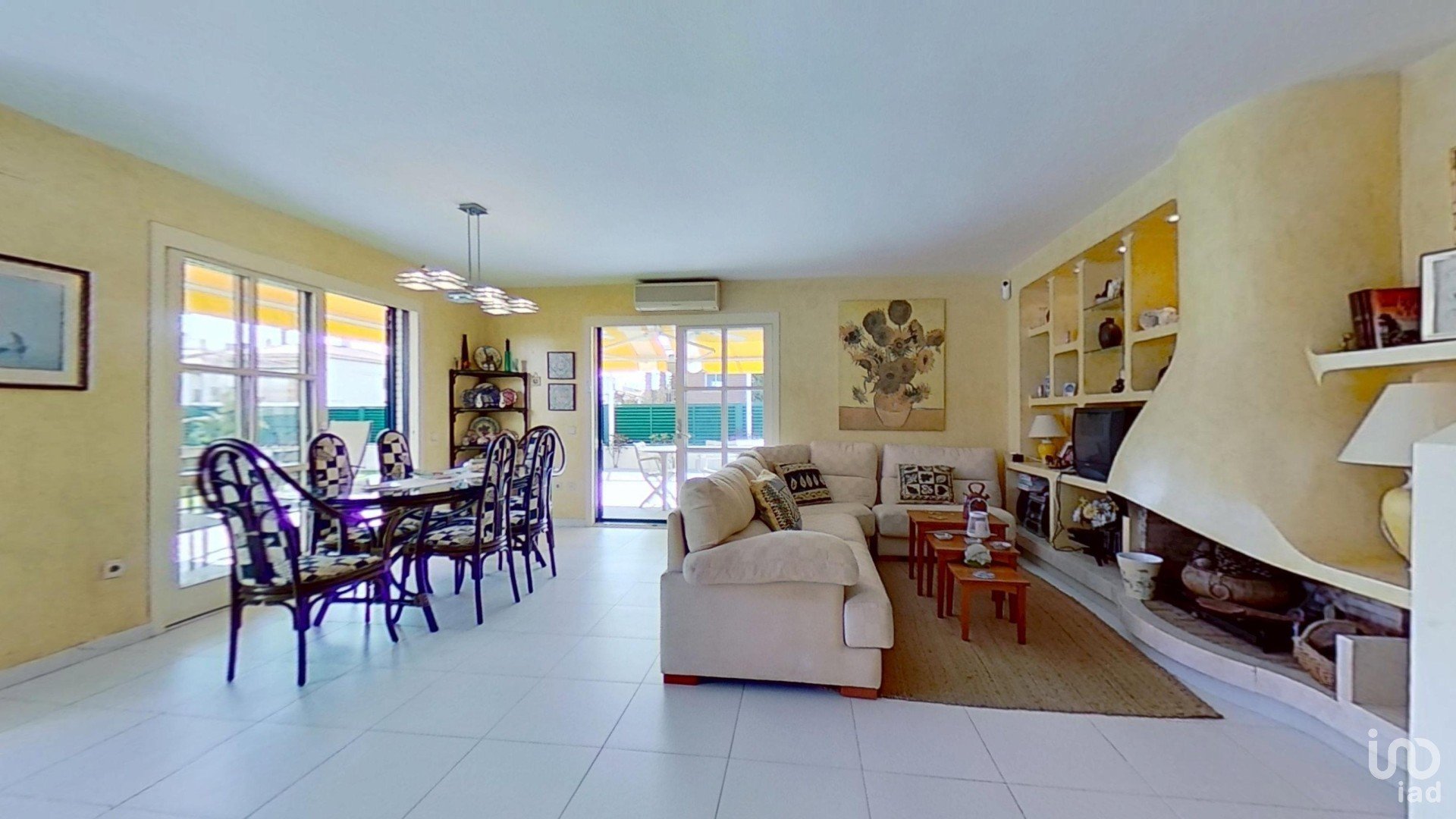 -salón-comedor increíblemente luminoso con 2 salidas al patio delantero y lateral y con chimenea de leña, creando un ambiente acogedor y funcional.