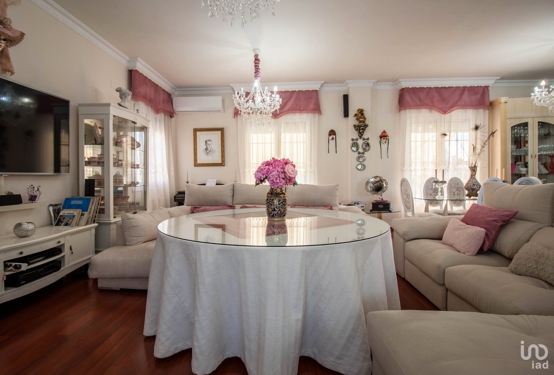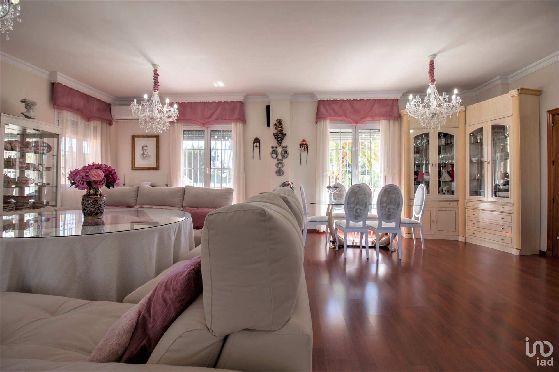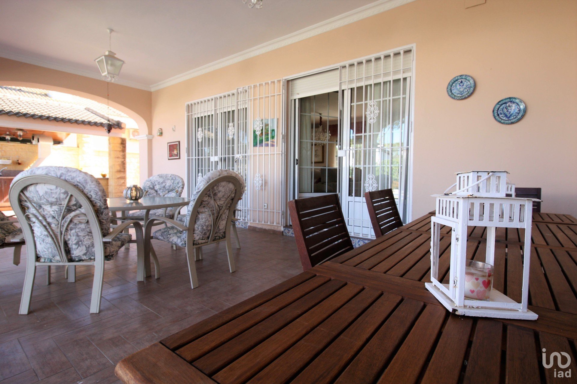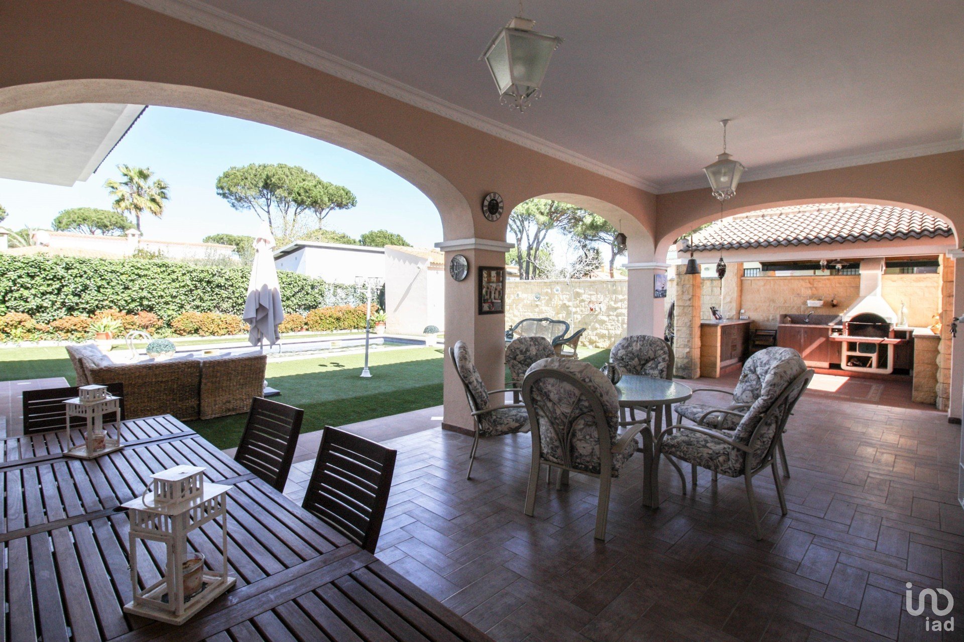 -Comunica asimismo al gran salón con chimenea, con grandes ventanales y mucha luz natural , acceso y vistas a la zona de jardín ,a la piscina , barbacoa , zona de ocio .