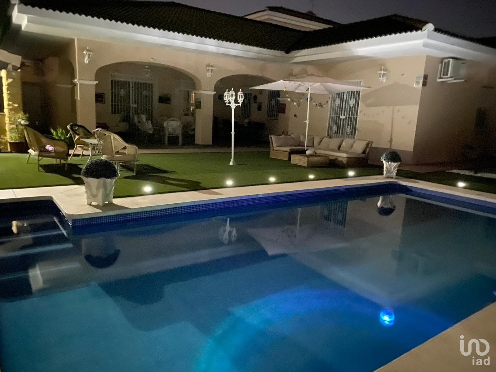 *En la parte trasera se encuentra la piscina de agua salada y una marquesina donde se ubica zona de esparcimiento .