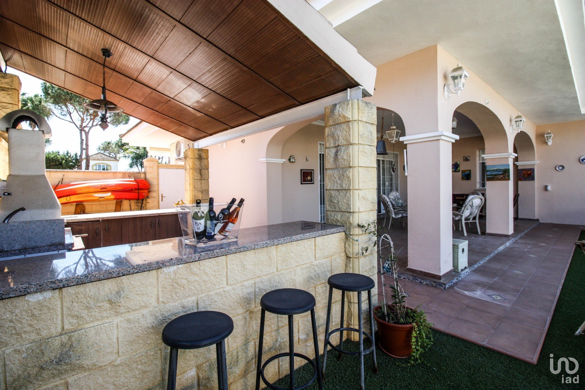 *Con la comodidad de una cocina totalmente acondicionada para uso en el exterior, amueblada, barbacoa, etc... Caseta de almacenamiento y leñeras.