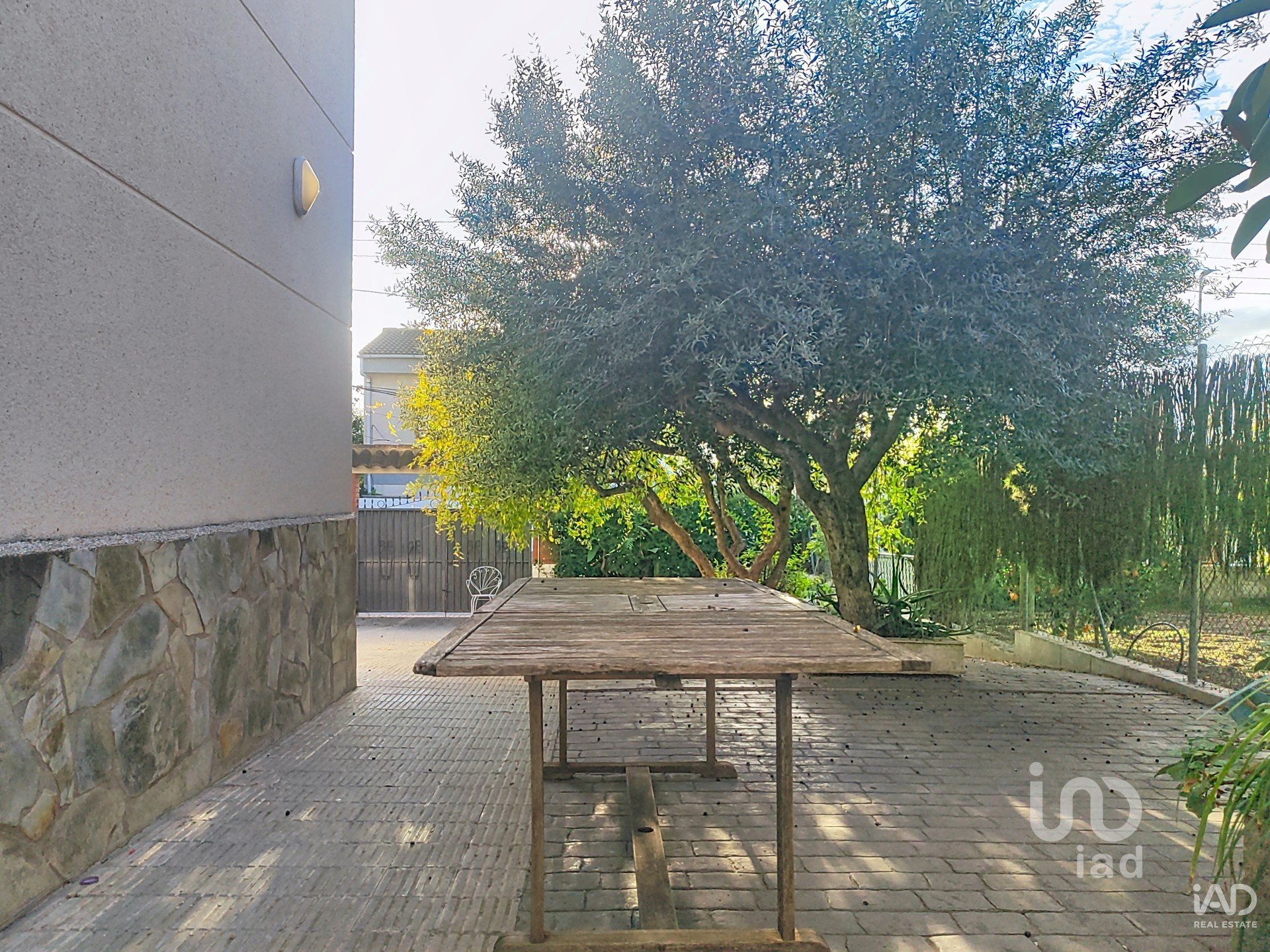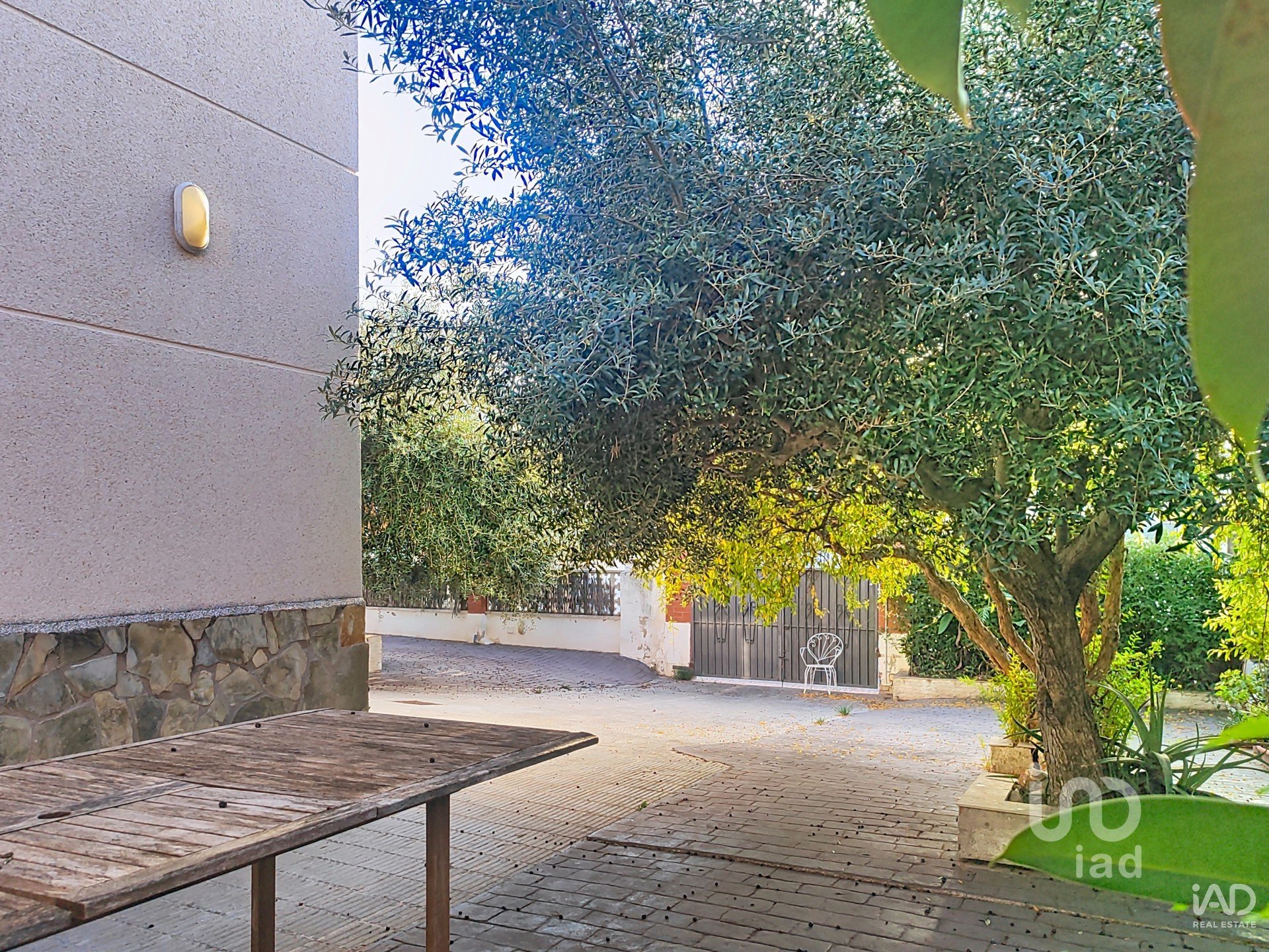 La parcela de 423 m², orientada al oeste y ligeramente elevada, cuenta en su entrada con varios olivos que enmarcan el acceso principal. Dispone de una balsa que actúa como zona fresca para el verano, perfecta para relajarse tras una jornada de trabajo o actividad. En el lateral se ubica el comedor de verano, bien aprovechado, con sombra Y espacio para una gran mesa, un baño exterior con ducha y una barbacoa. La parte posterior ofrece un jardín cuidado y sombreado, con acceso directo a la lavandería de la planta baja y, desde esta, a la cocina abierta de la vivienda.