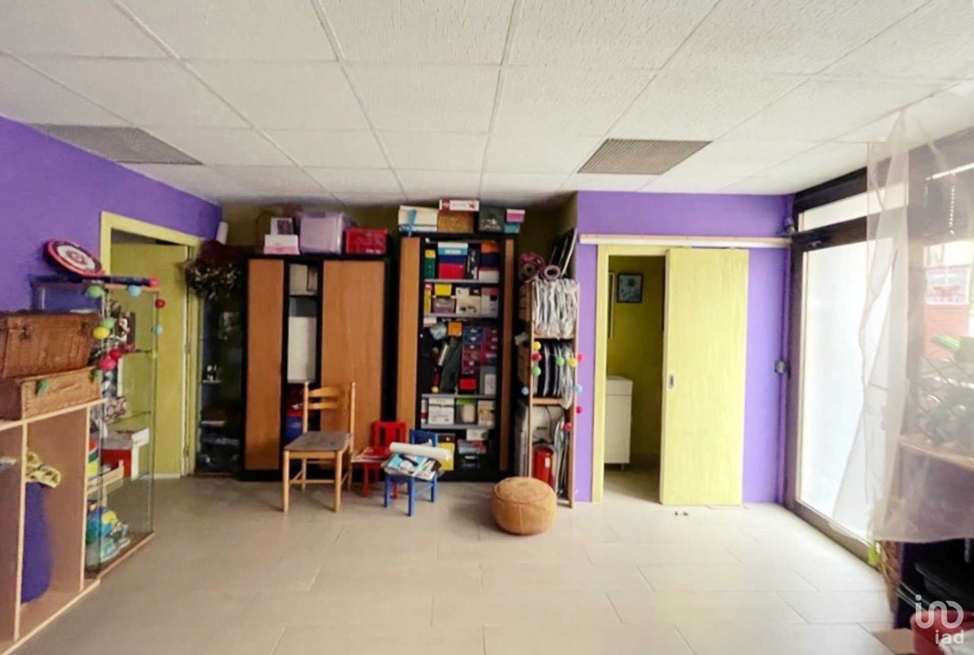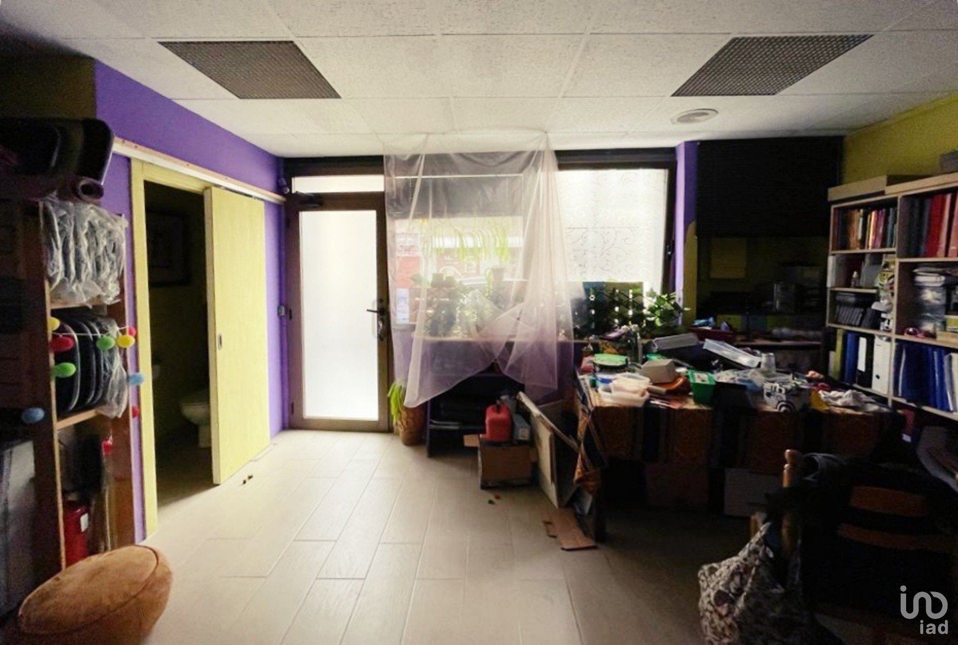 Las paredes divisorias interiores permiten el cambio de distribución. En su última actividad la primera sala estaba estaba dedicada a negocio y el resto era zona de estar interior.