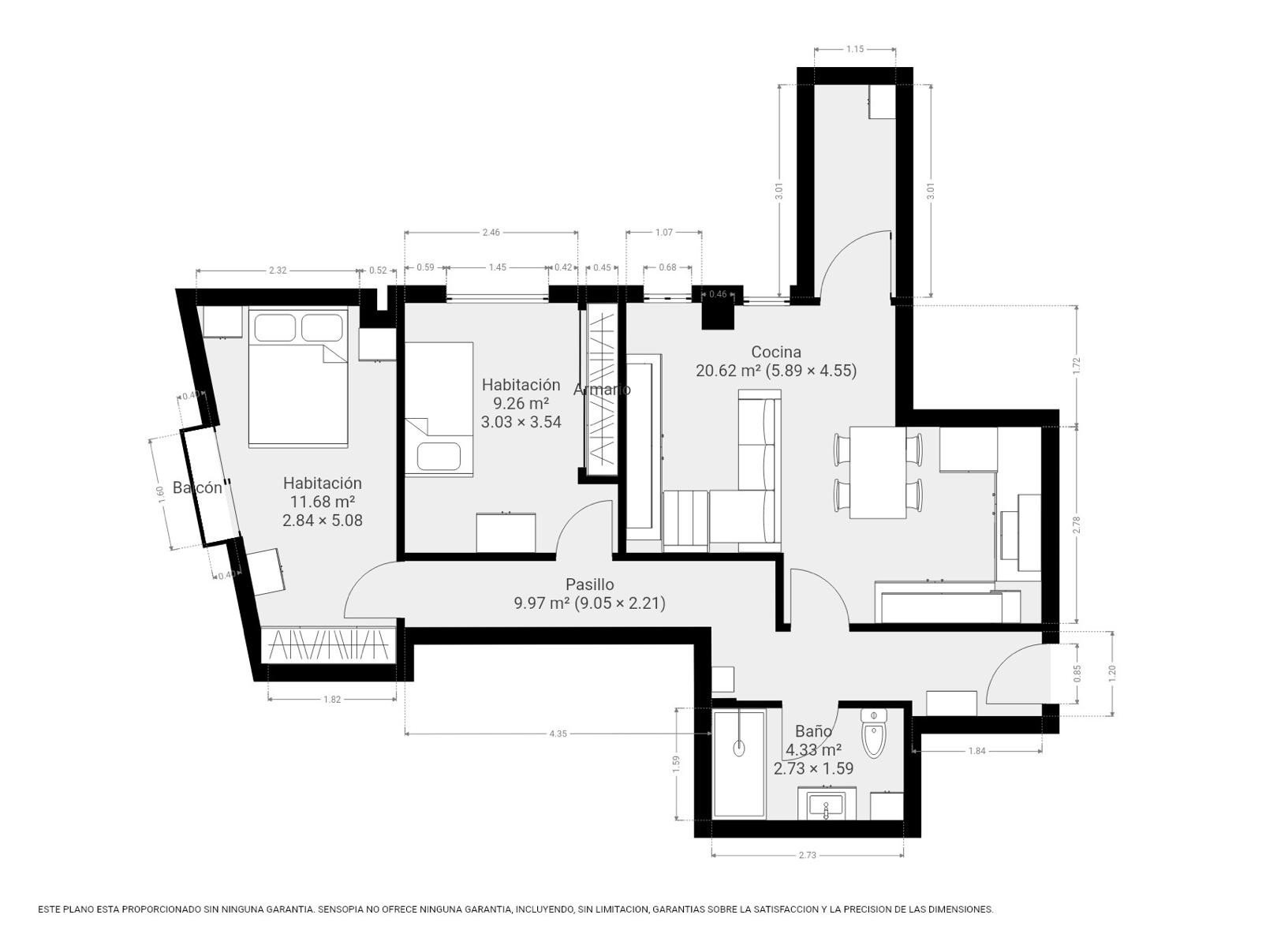 Este apartamento de 64 metros cuadrados .