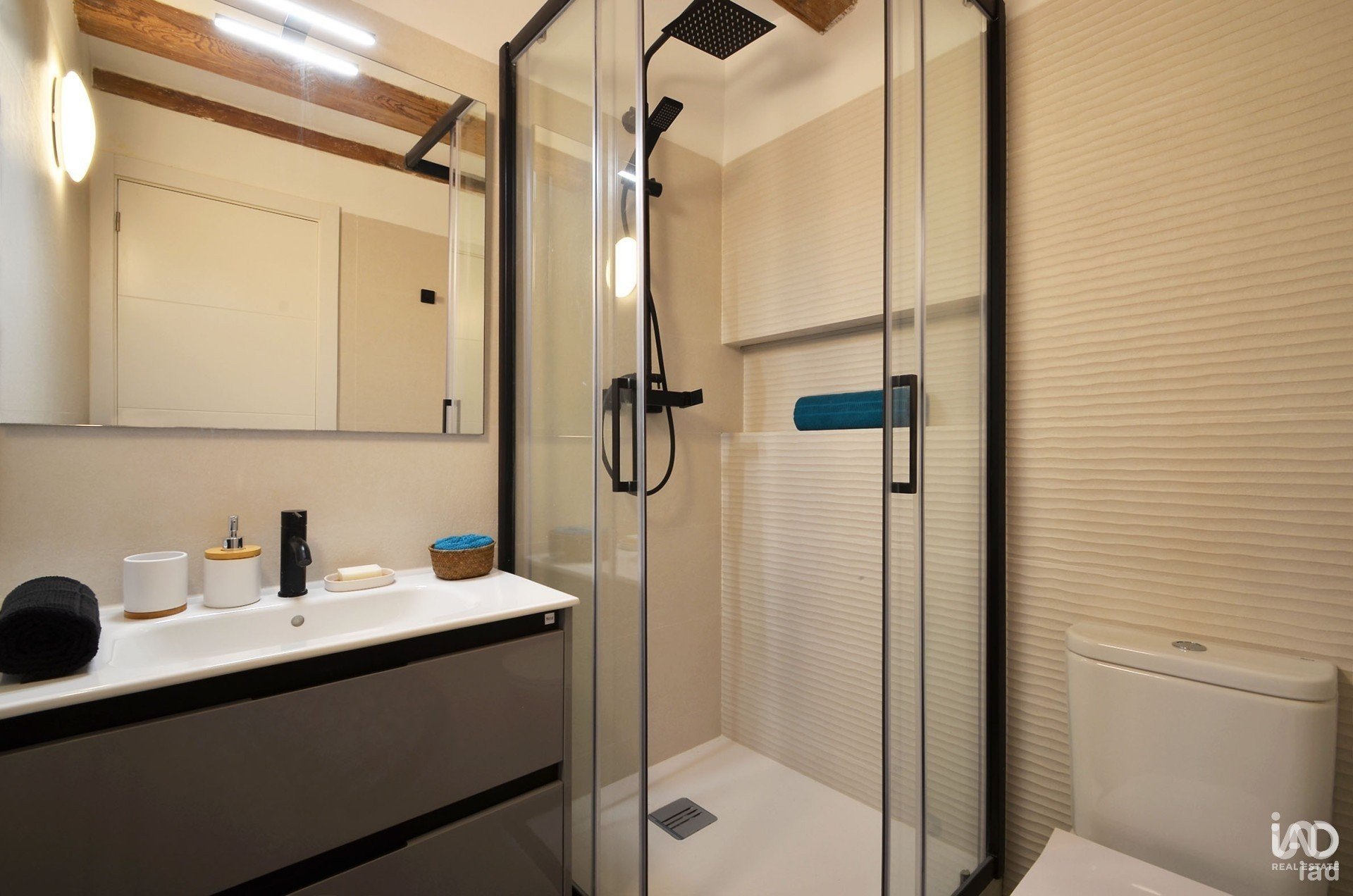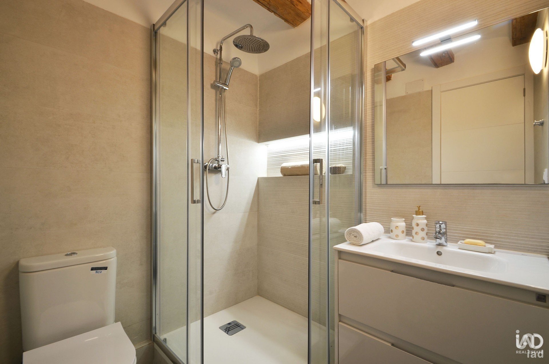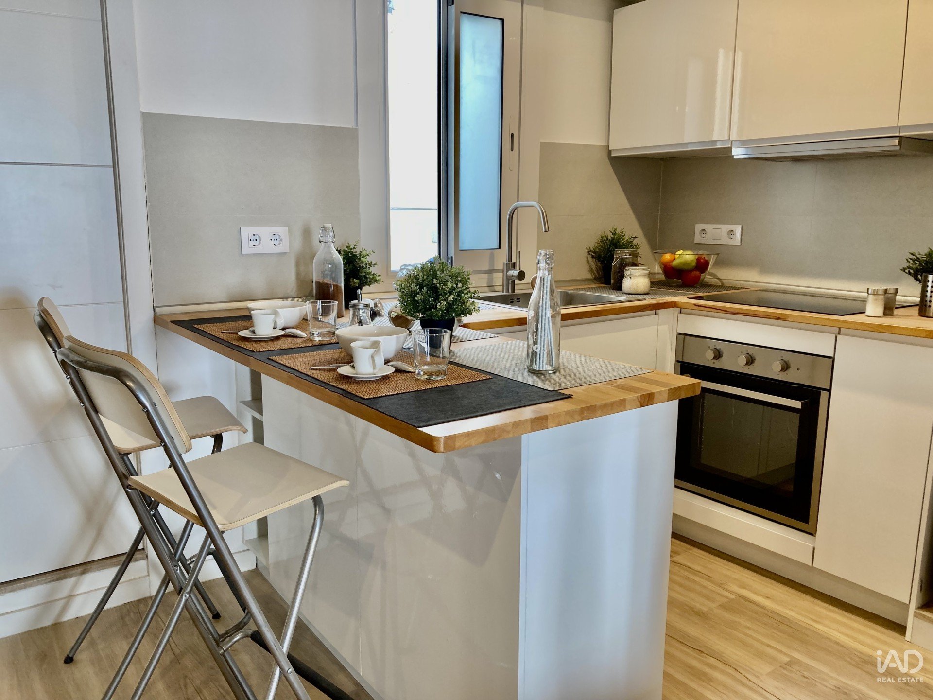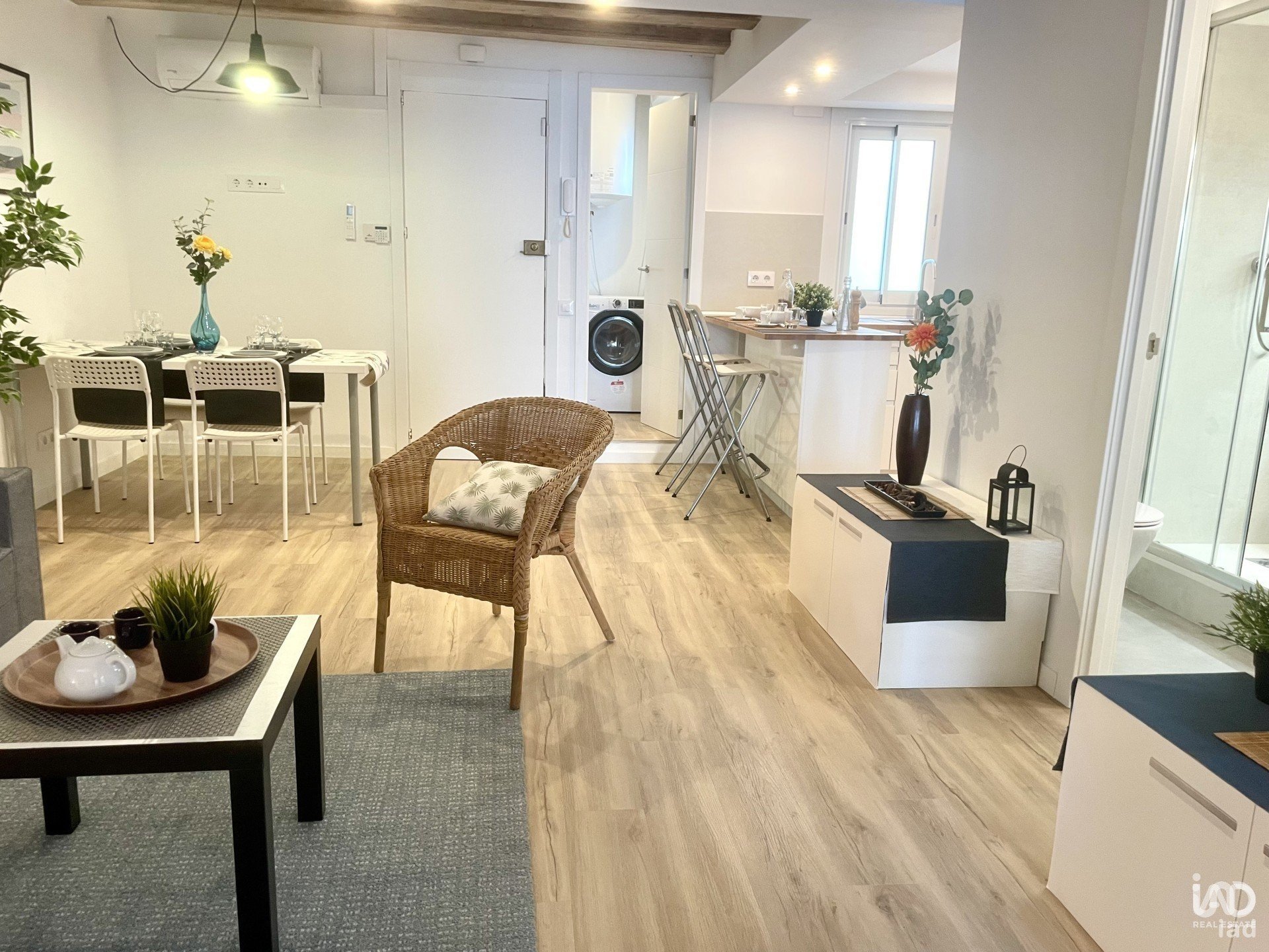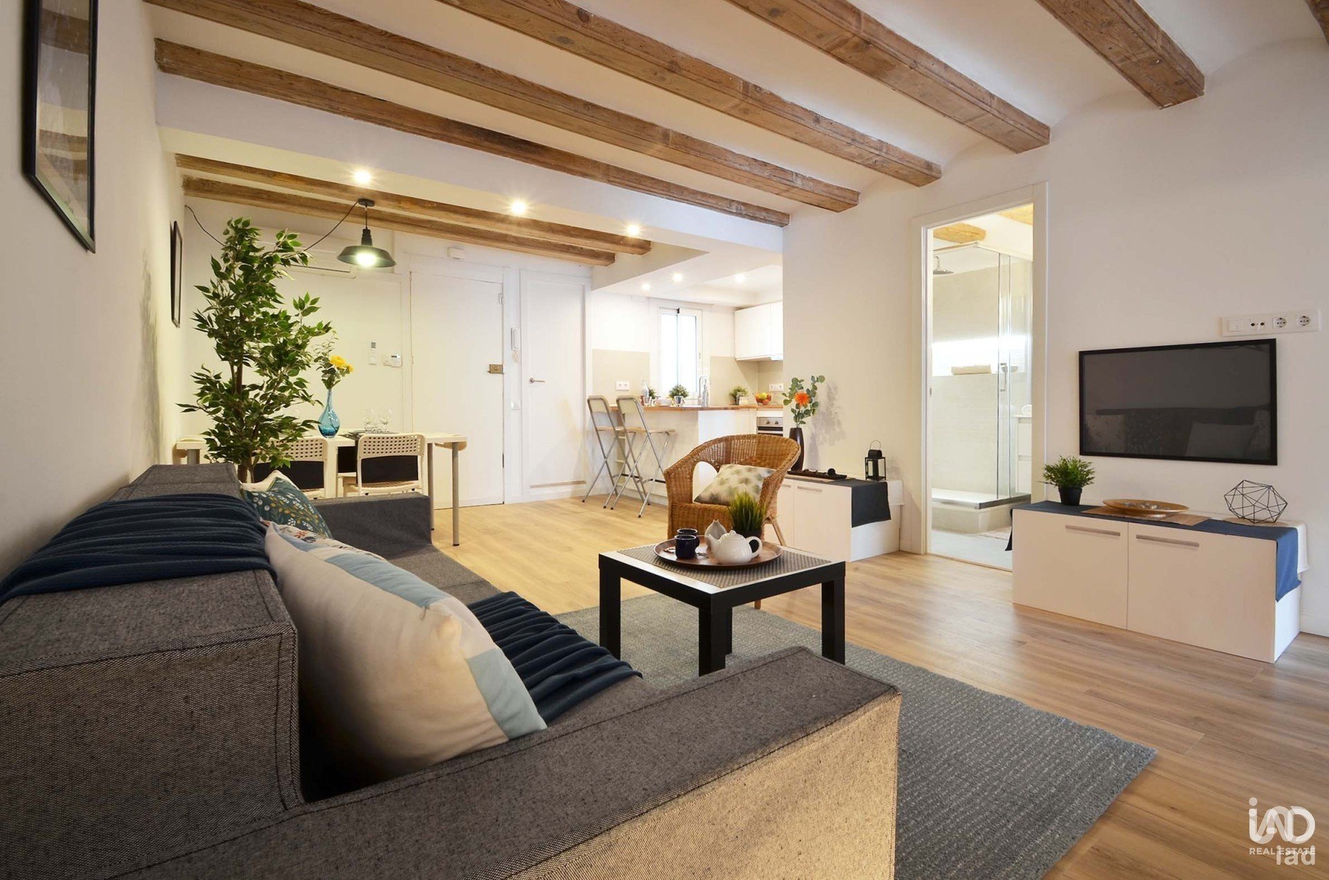 Situado en un edificio histórico con carácter, esta propiedad combina encanto y modernidad y ofrece un ambiente acogedor con su elegante suelo de parquet, vigas a la vista (volta catalana) y acabados de alta calidad.