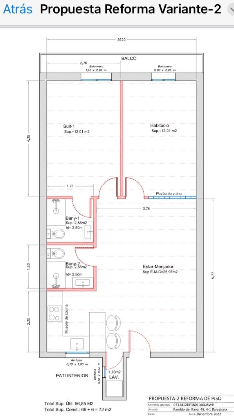 Sobre este piso de 2 habitaciones en Barcelona (08001)
