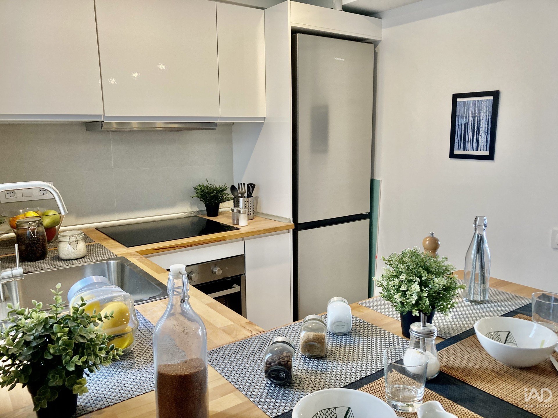 El salón-comedor gira en torno a una cocina abierta y amueblada, ideal para compartir momentos de convivencia.