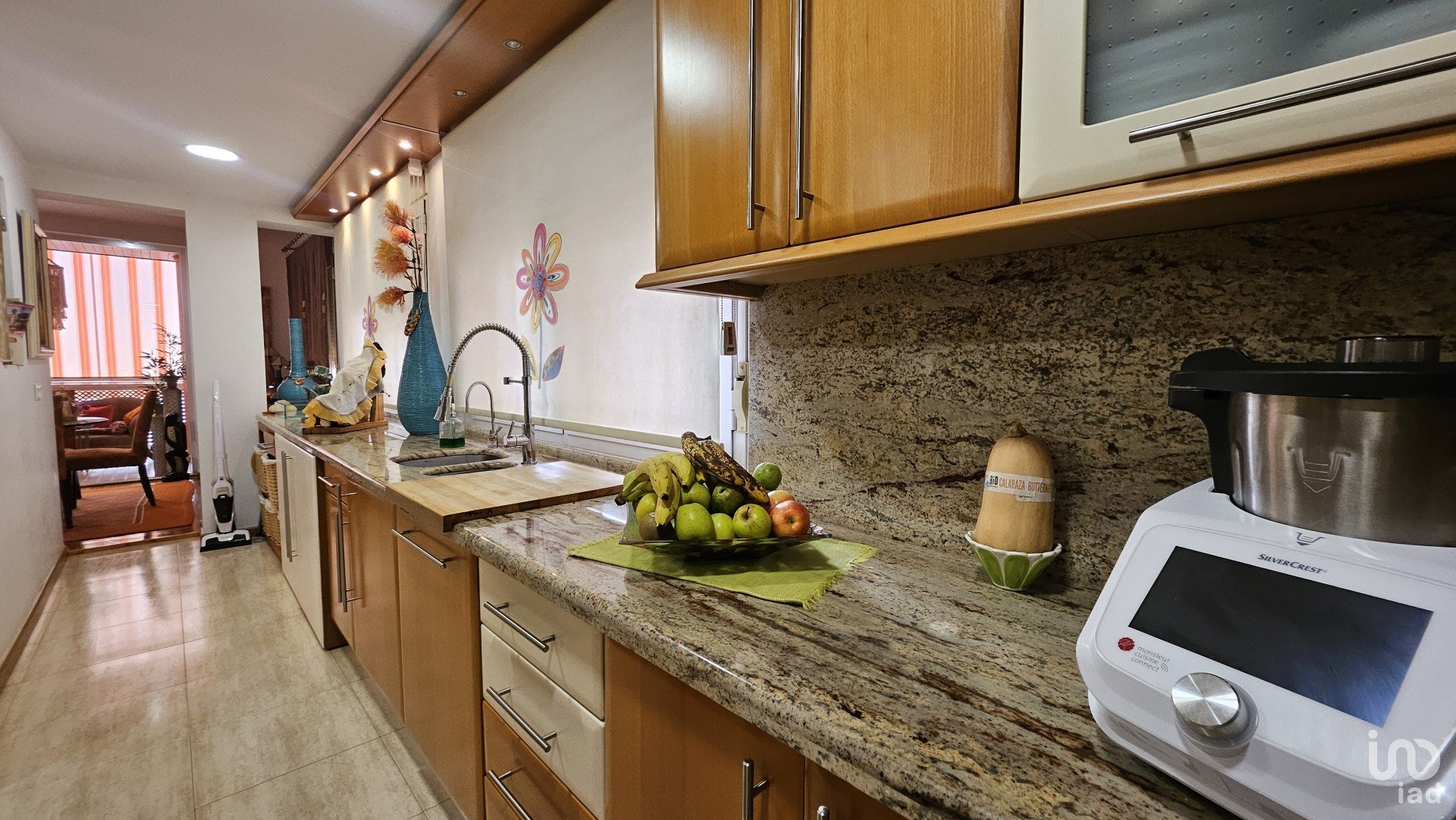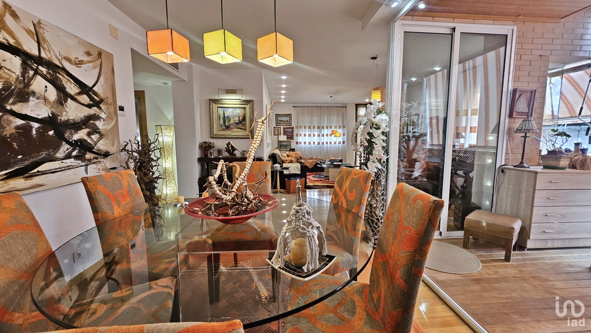 Al entrar, nos recibe un espacio lleno de luz y calidez, con suelo de parqué en la mayor parte de la vivienda. La cocina, semiabierta y moderna, cuenta con isla central perfecta para las comidas rapidas. Desde ella se accede tanto al comedor como al acogedor salón, decorado en tonos cálidos y con acceso a una terraza acristalada ideal para disfrutar todo el año.