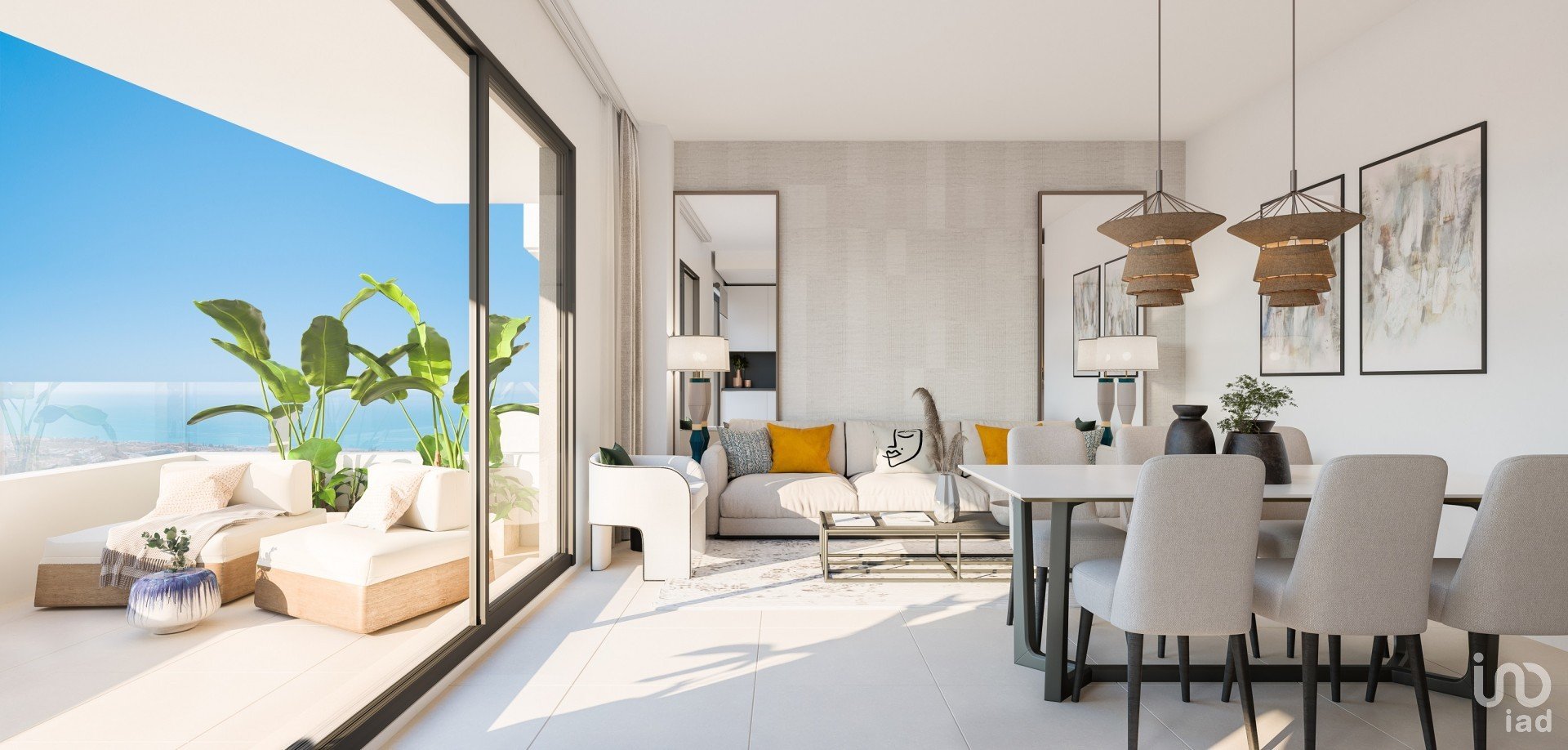 Desde las terrazas interminables de Bali, el simple transcurrir del día se convierte en un espectáculo. Por eso, hemos querido incorporar el exterior a cada espacio de tu hogar. Y para conseguirlo, hemos optado por instalar amplias cristaleras en el espacio que forma el salón comedor con su gran cocina abierta. Solo tienes que abrirlas y dejar que la brisa y el sol del mediterráneo formen parte de tu casa.