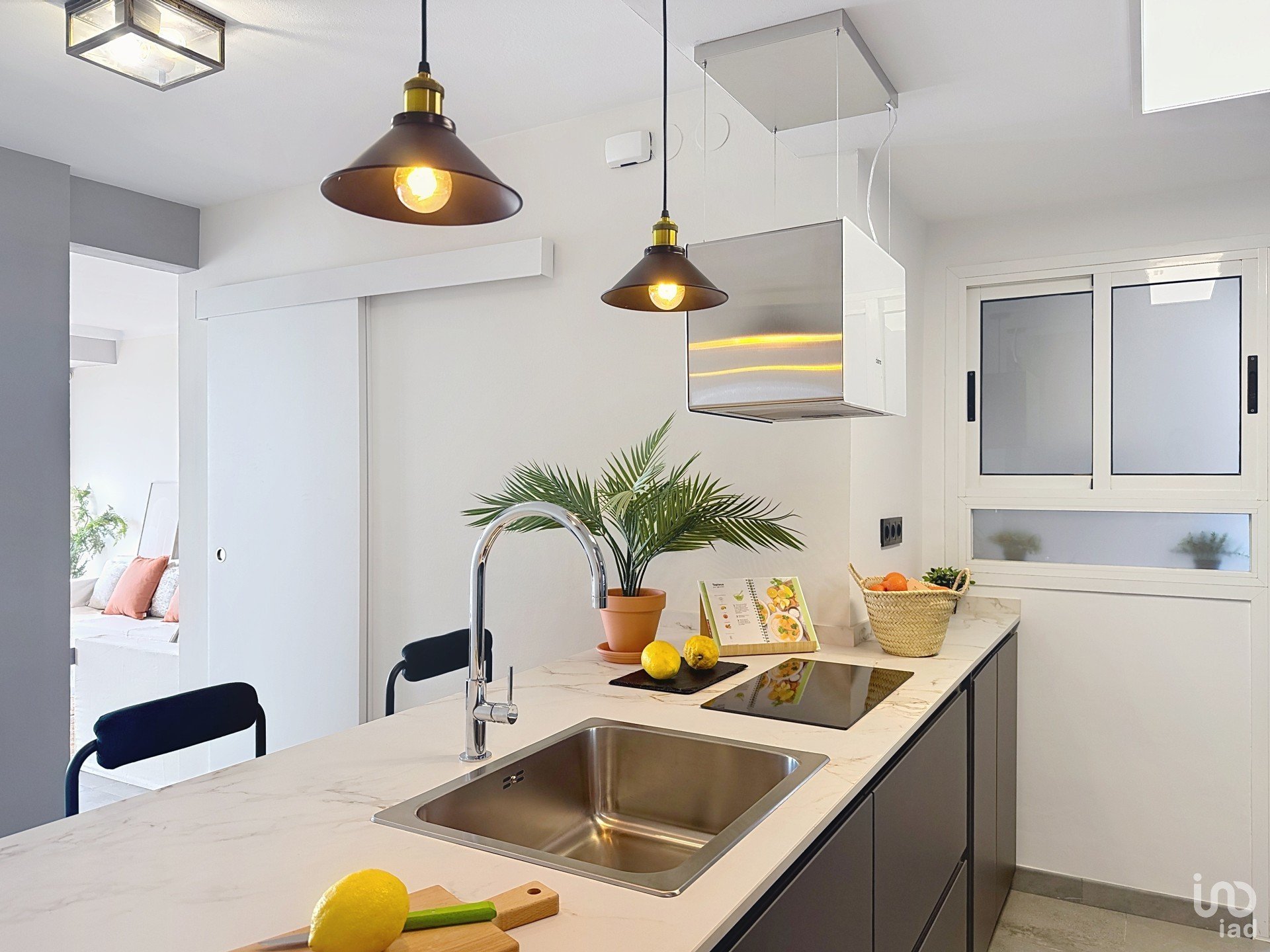 Cocina reformada, abierta al salón comedor