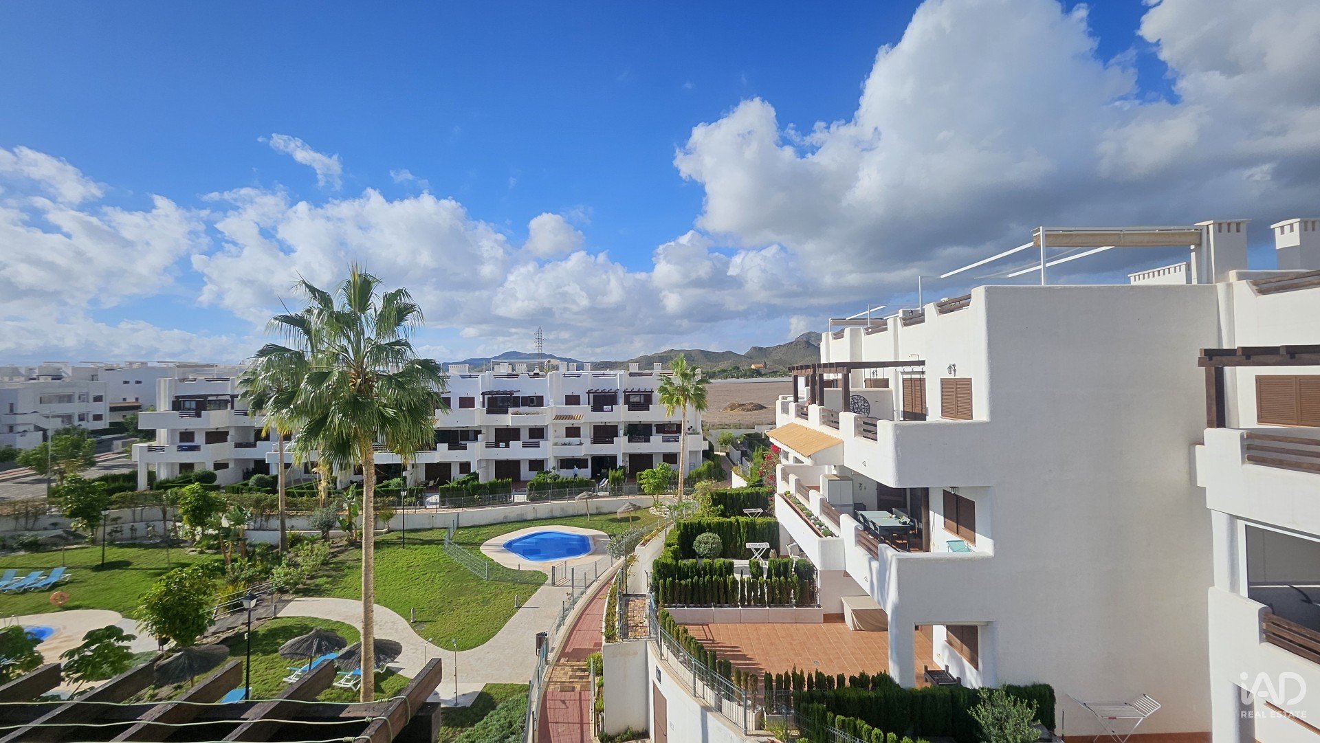 La urbanización cuenta con 4 piscinas, 2 de adultos y 2 de niños, jacuzzis, áreas de juego, está a un corto paseo de la playa con su gimnasio, centro comercial, bares restaurantes y por supuesto, las gloriosas playas de San Juan de Los Terreros.