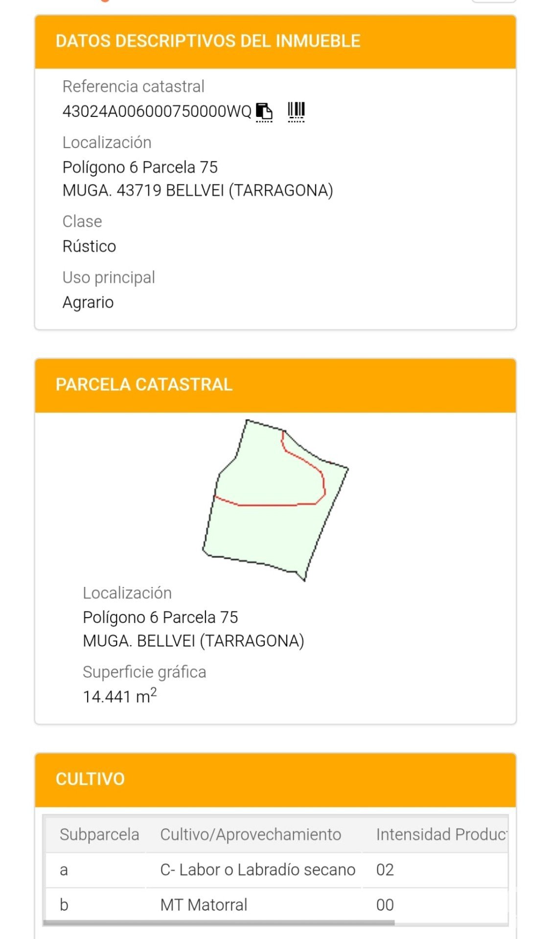 Terreno de 14.441 m² en Bellvei (43719)