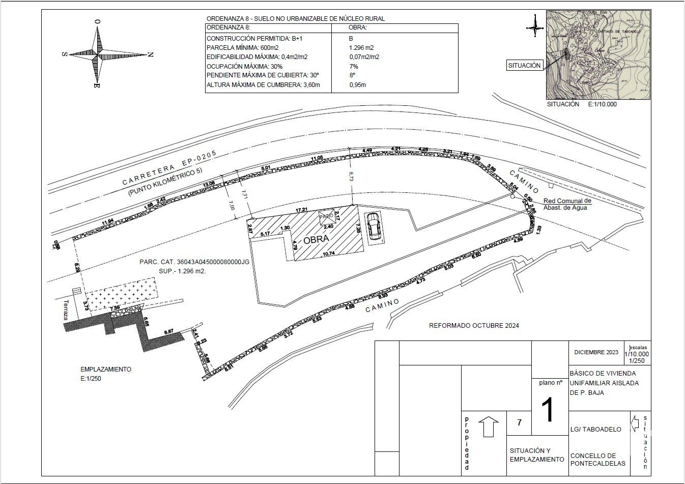 El precio incluye el proyecto para la construcción de una vivienda unifamiliar de planta baja, así como de licencia municipal y la correspondiente autorización de la Diputación.