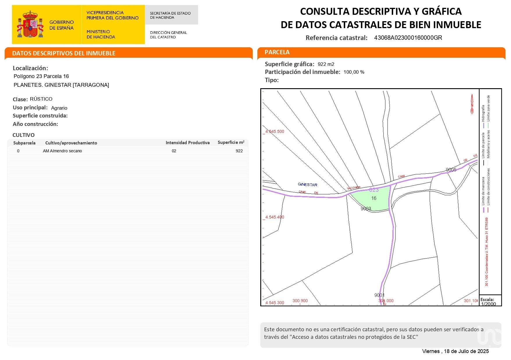Aquesta casa es troba a Ginestar (43748).