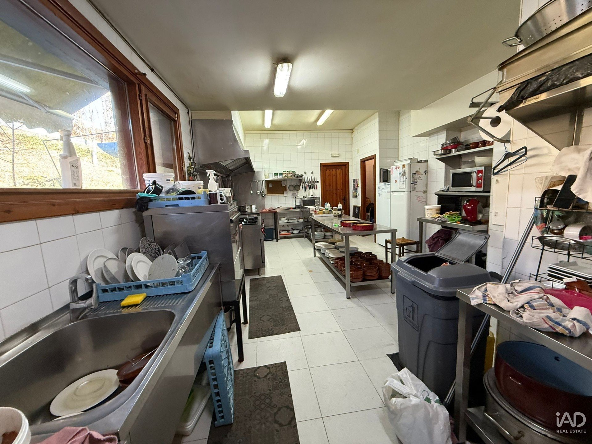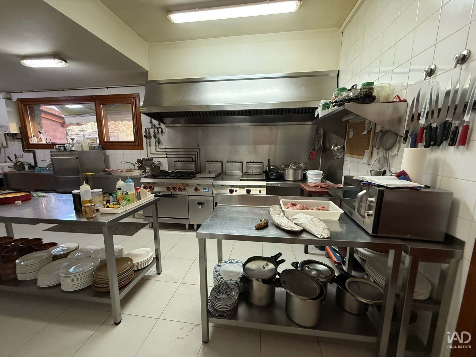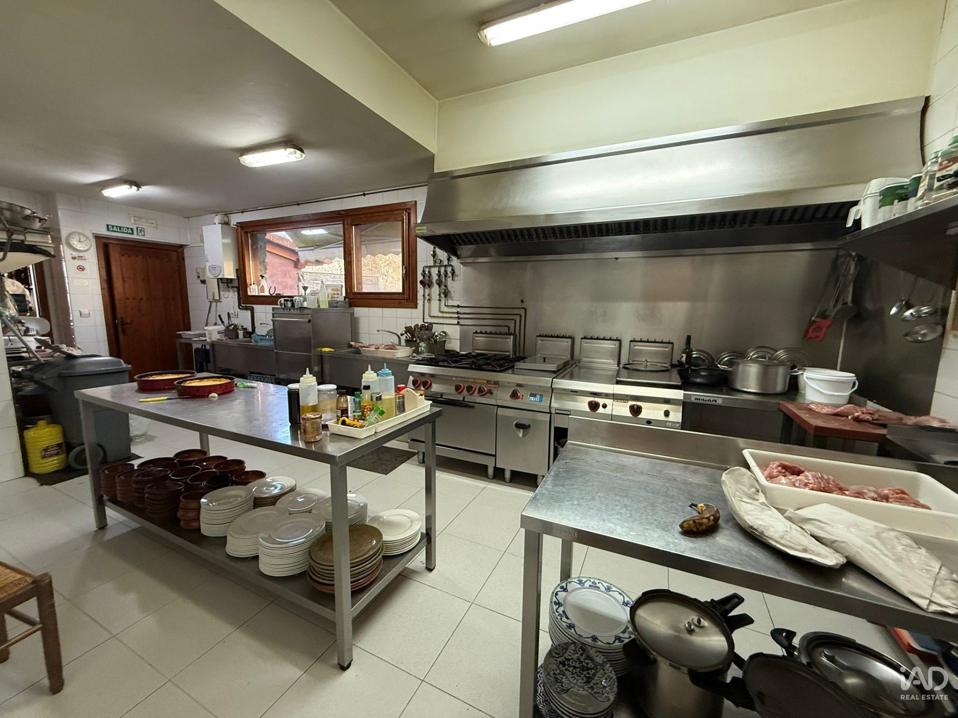 Cuenta con instalaciones profesionales: cocina industrial completa y zonas de trabajo amplias, tres almacenes, despensa y cámara frigorífica de gran capacidad.