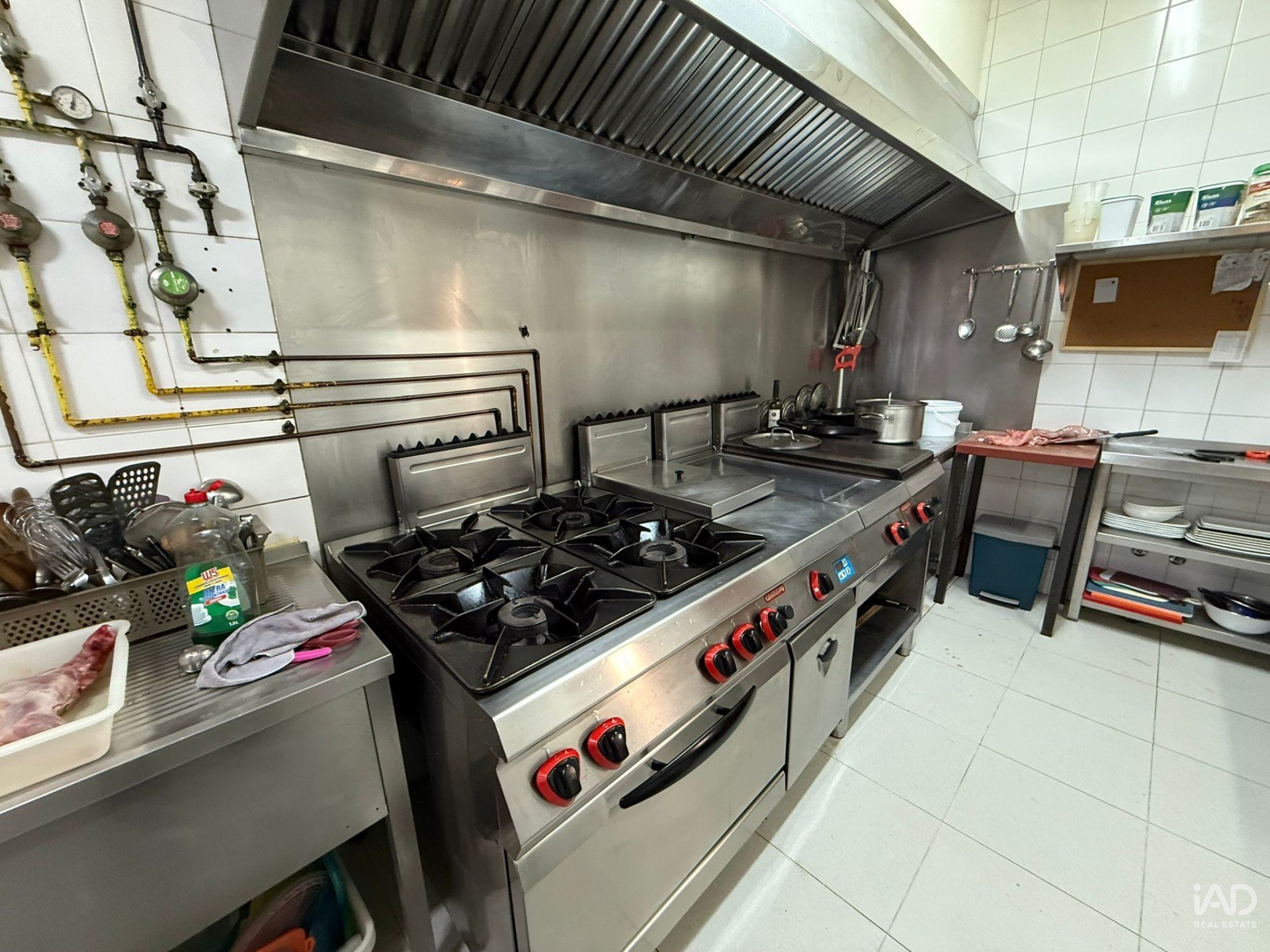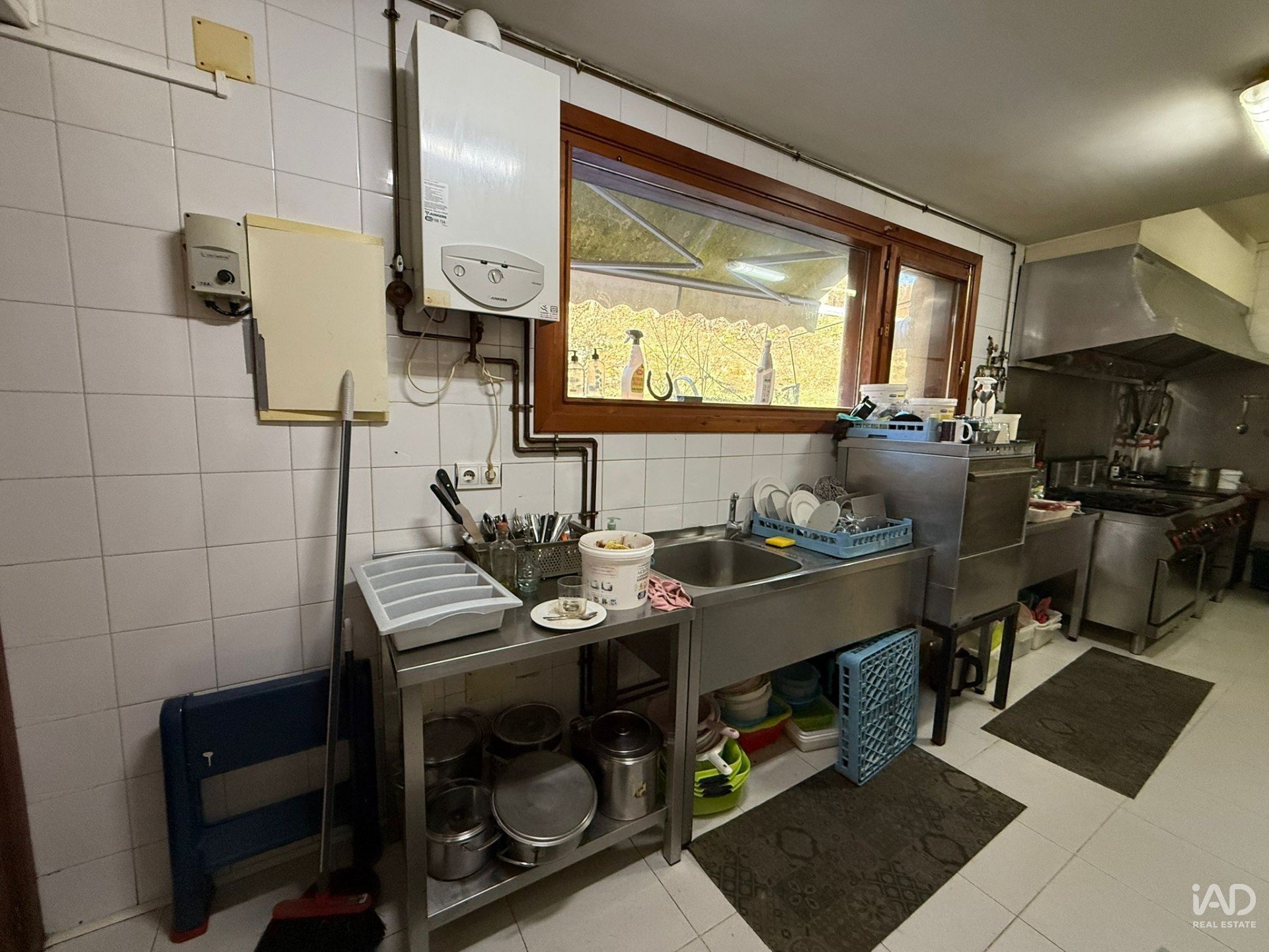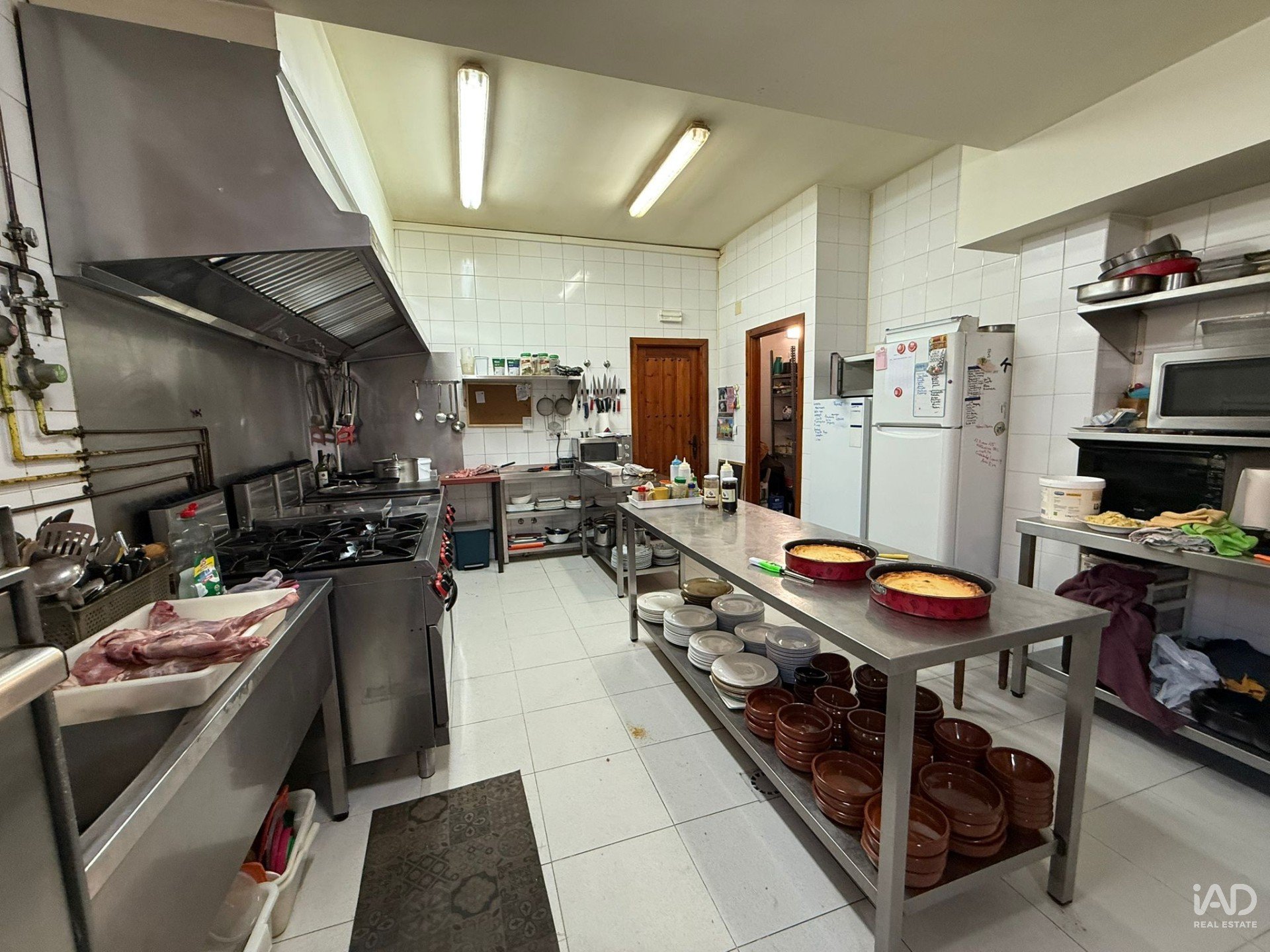 Cuenta con instalaciones profesionales: cocina industrial completa y zonas de trabajo amplias, tres almacenes, despensa y cámara frigorífica de gran capacidad.
