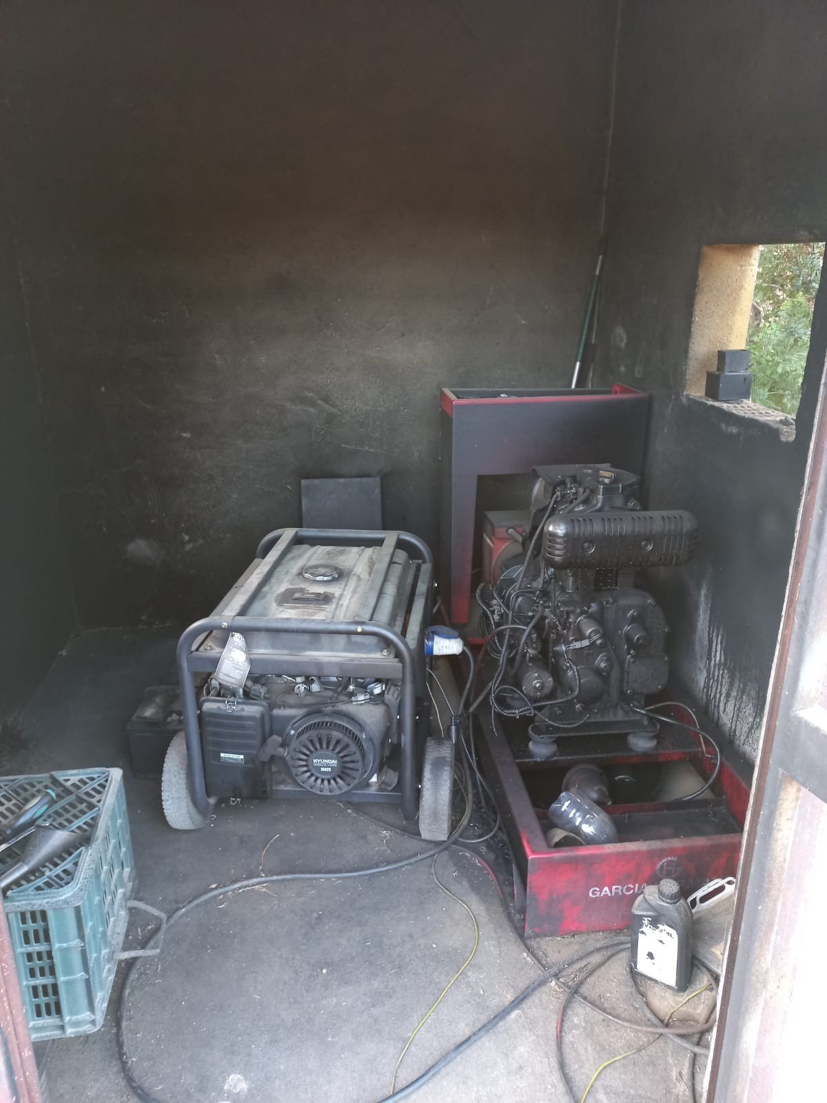 Pozo con bastante agua que da de beber a los olivos que tiene la finca con sus gomas de regadio instalados.