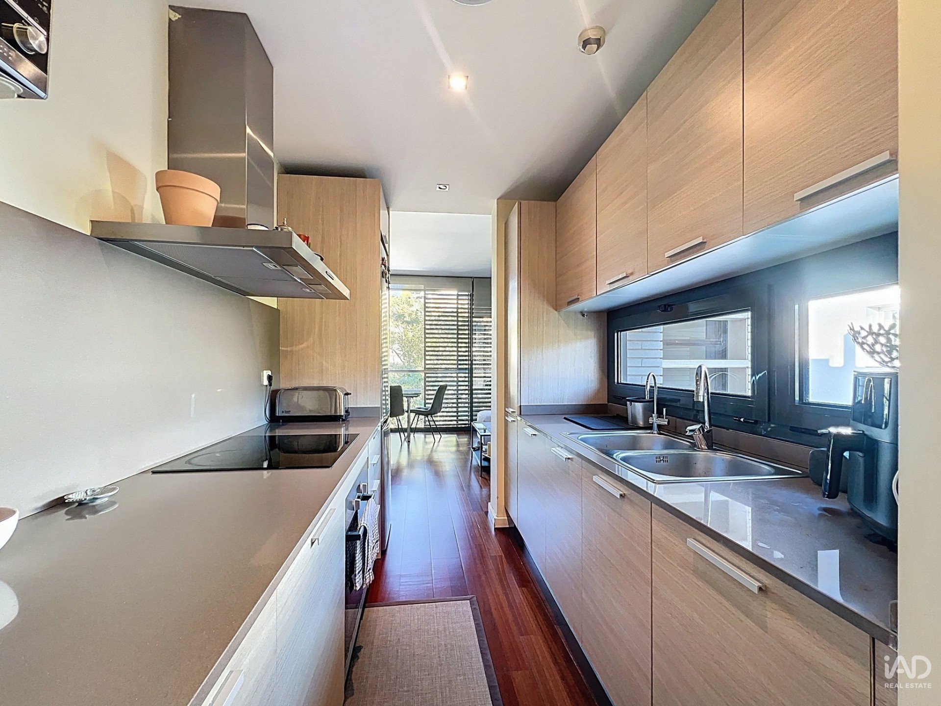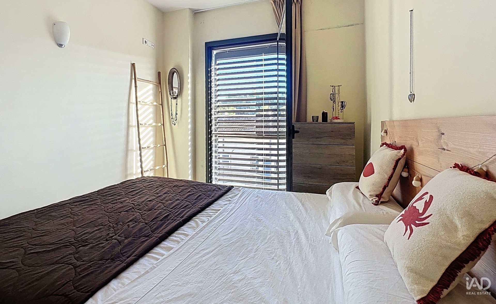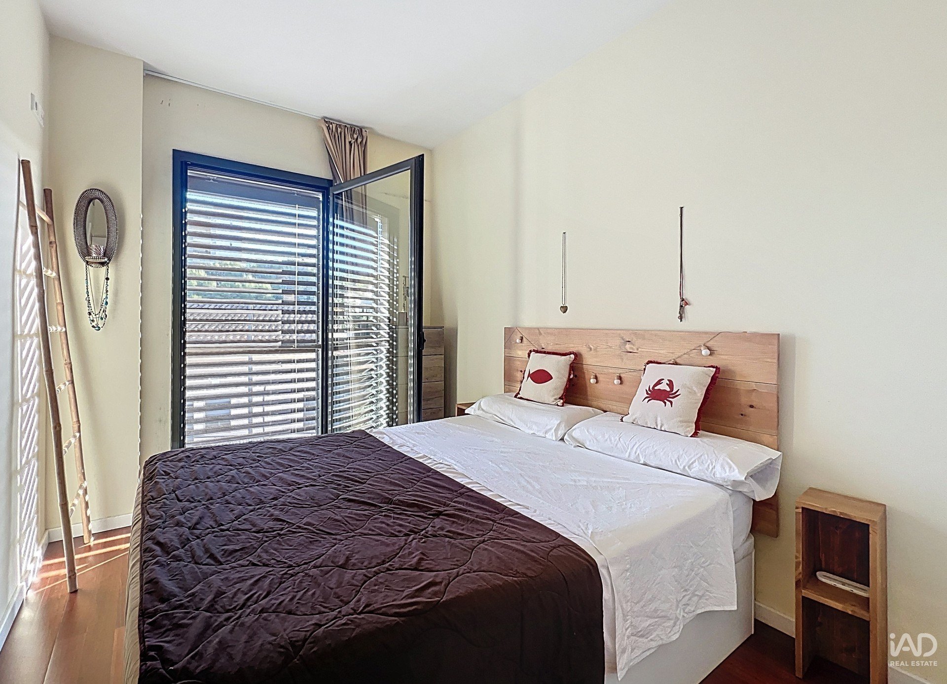 La planta principal dispone de un amplio salón-comedor con grandes ventanales que llenan el espacio de luz natural y se integran perfectamente con una cocina americana totalmente equipada. La zona de noche ofrece dos dormitorios dobles, ambos con armarios empotrados, y un baño completo con bañera.