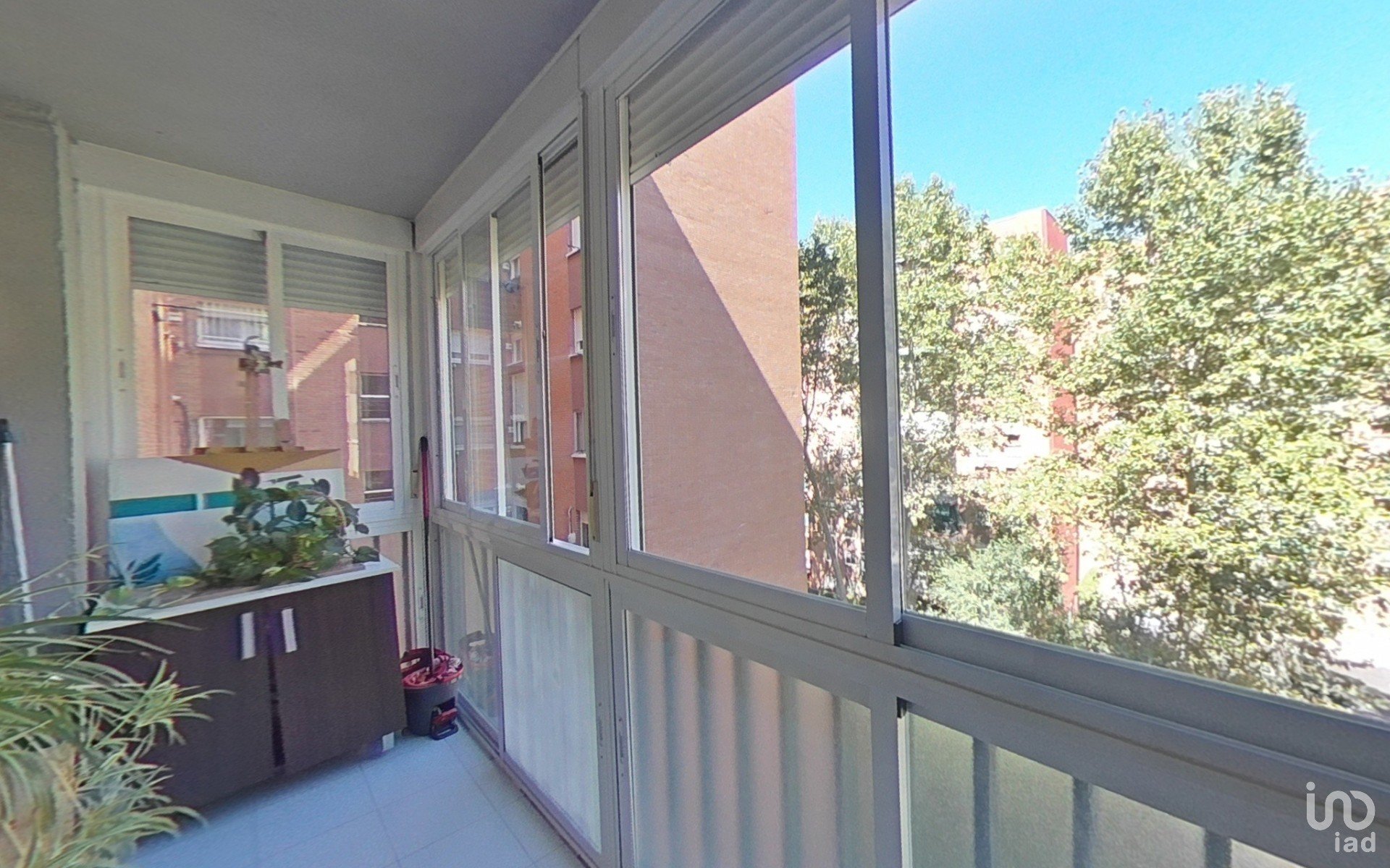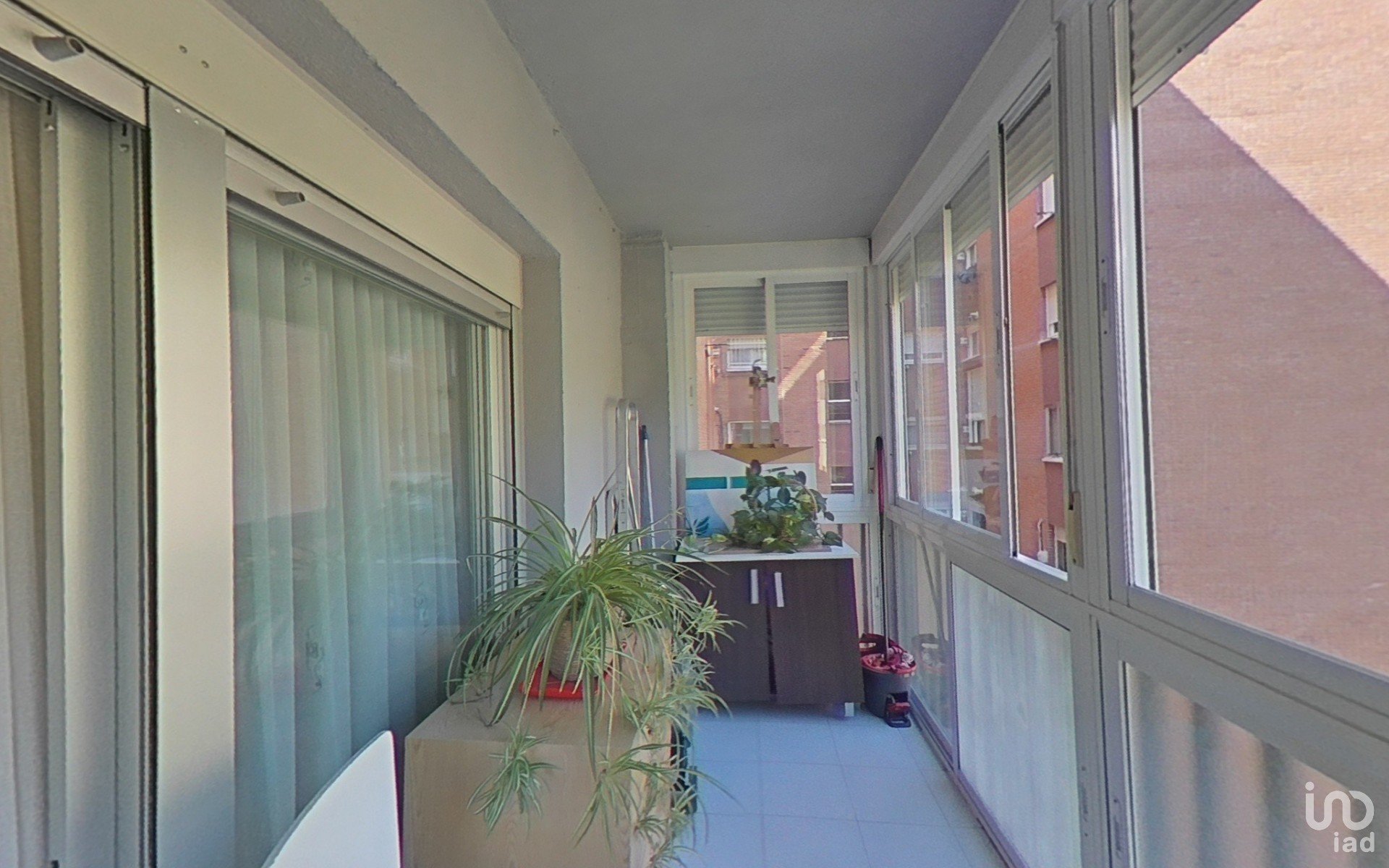 Amplio salón-comedor con acceso a una terraza acristalada de 1,6 x 3,5 m, con vistas despejadas a una plaza y con gran armario de almacenaje.