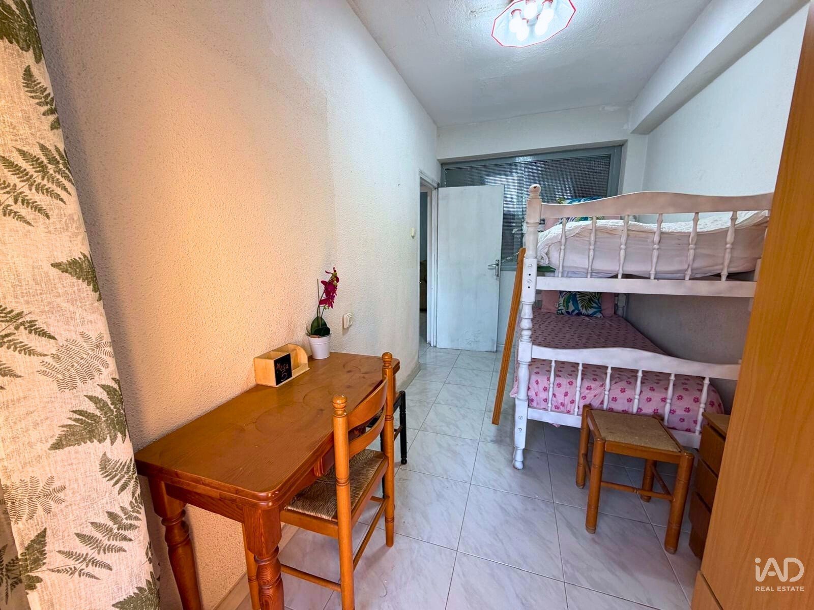 El piso se ubica en un tercer piso sin ascensor y se distribuye en tres dormitorios, un baño completo, cocina independiente y un salón/comedor. Una distribución práctica que permite diferentes posibilidades de adaptación según las necesidades del futuro propietario.