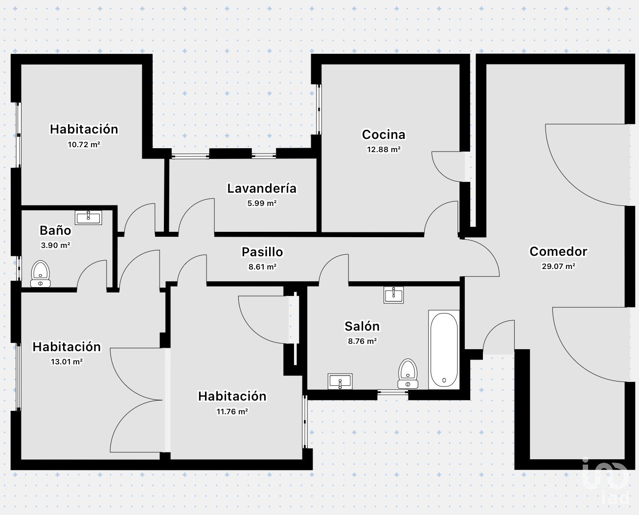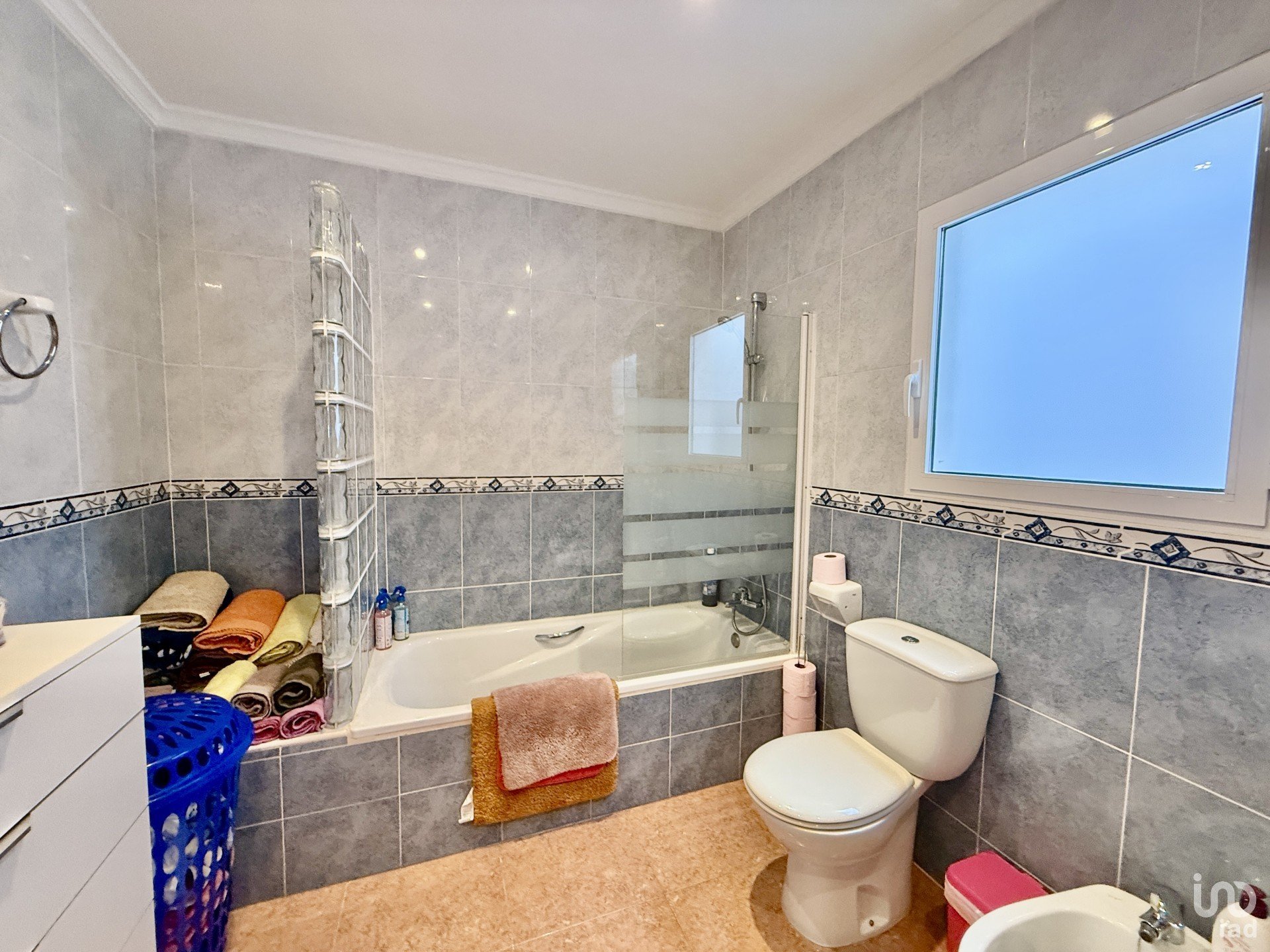 Disposa de tres habitacions molt àmplies i lluminoses, dos banys complets, una cuina gran totalment equipada i una zona de bugaderia independent per a més comoditat.