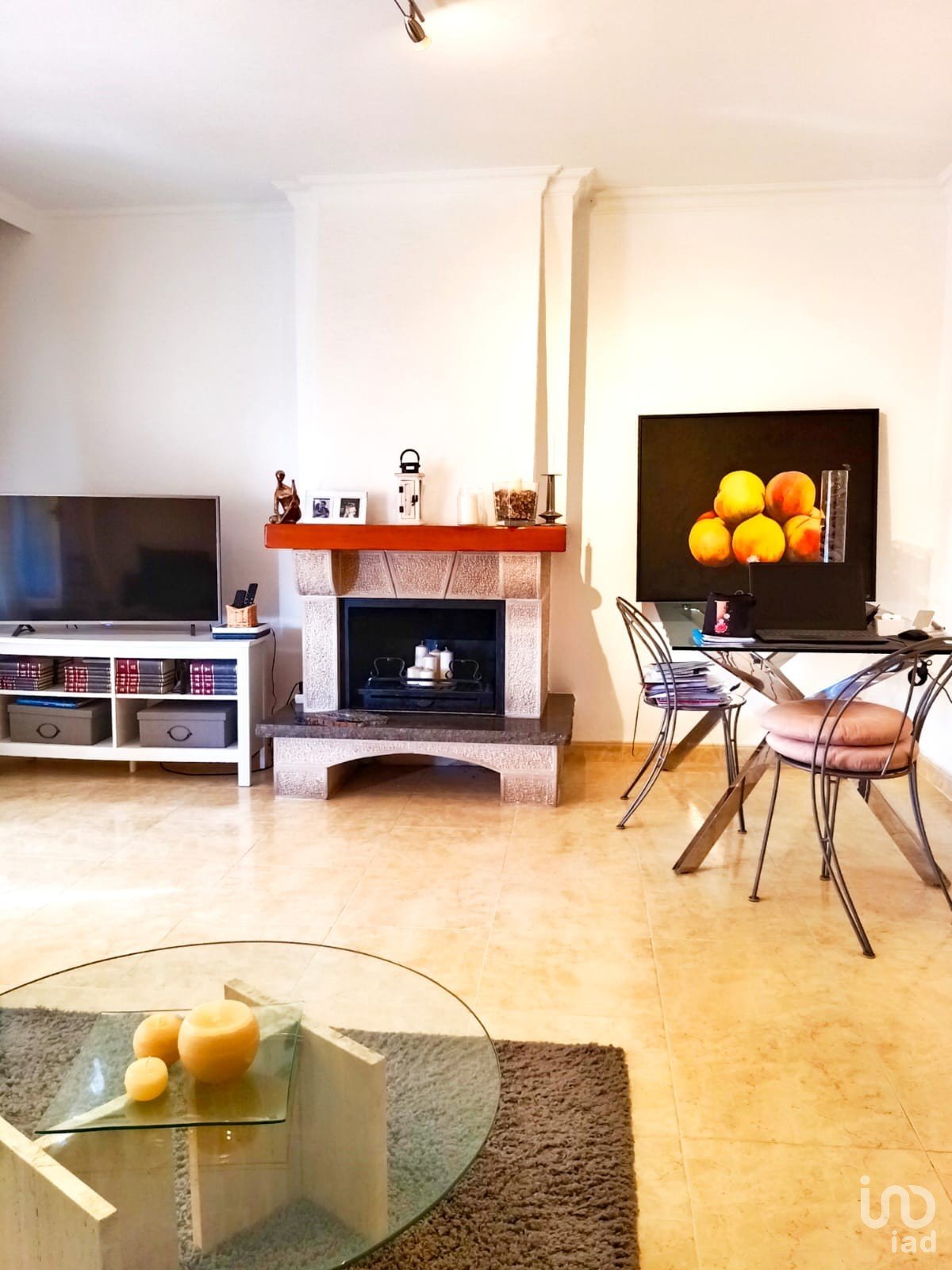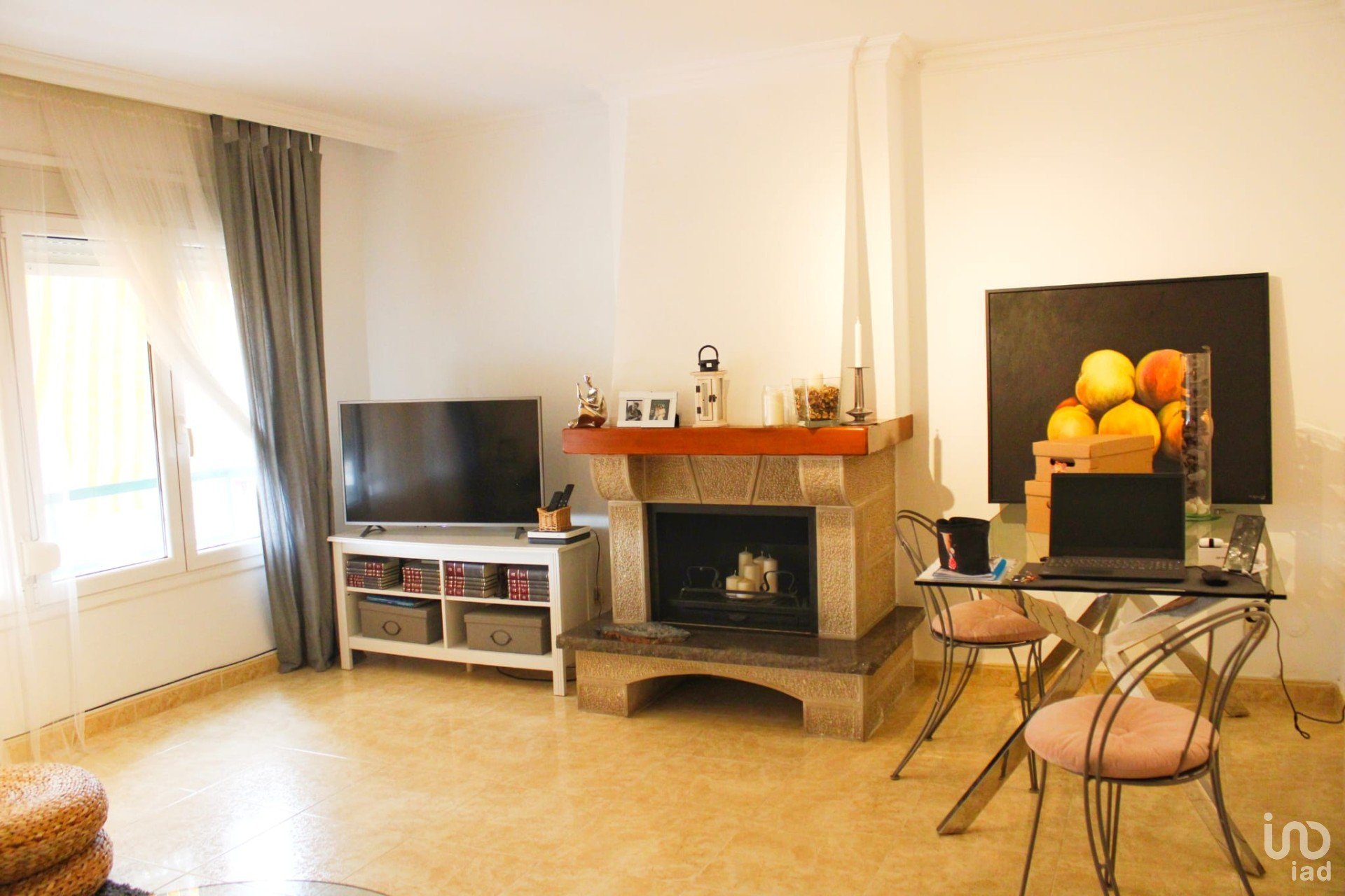 Saló-menjador espaiós amb llar de foc, perfecte per a moments acollidors.
