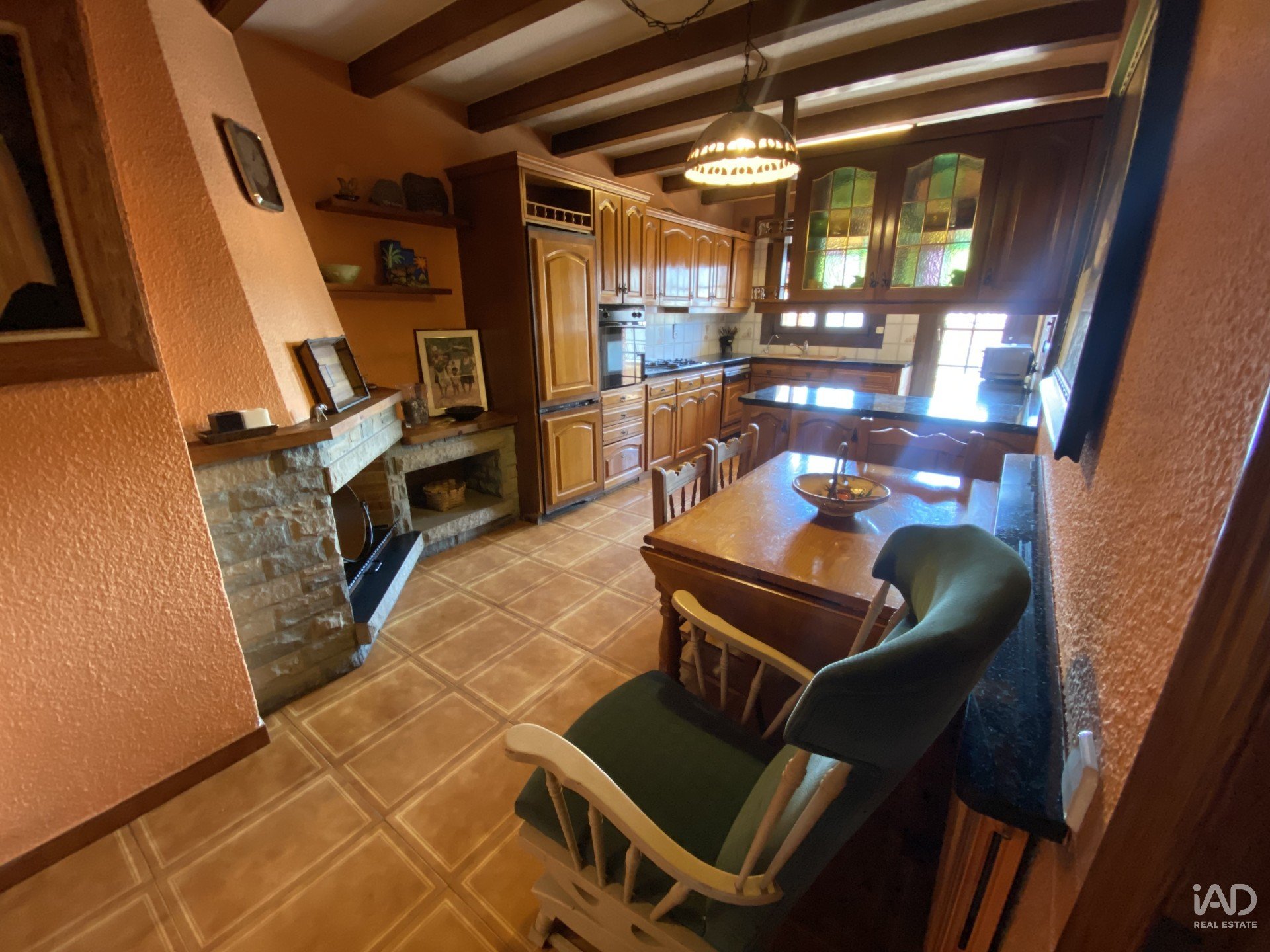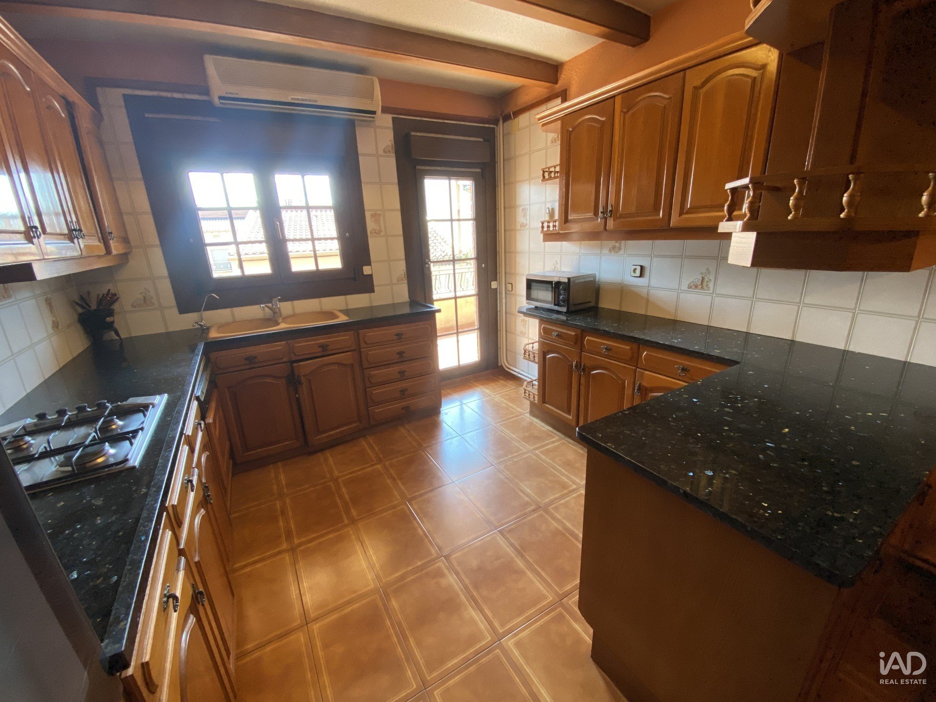 Siguiendo recto desde el distribuidor llegamos a una cocina de gran tamaño, diseñada para ofrecer comodidad y funcionalidad, con zona de cocinar separada de la zona para comer, despensa y también salida directa al balcón.