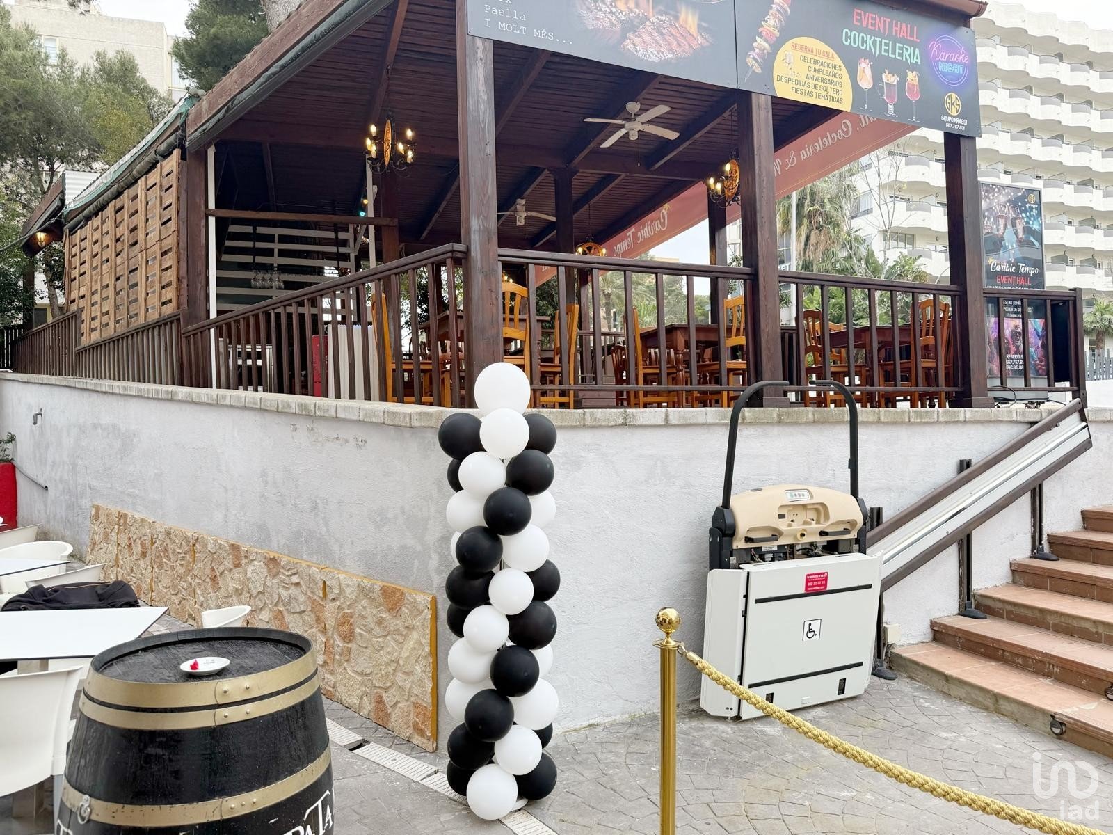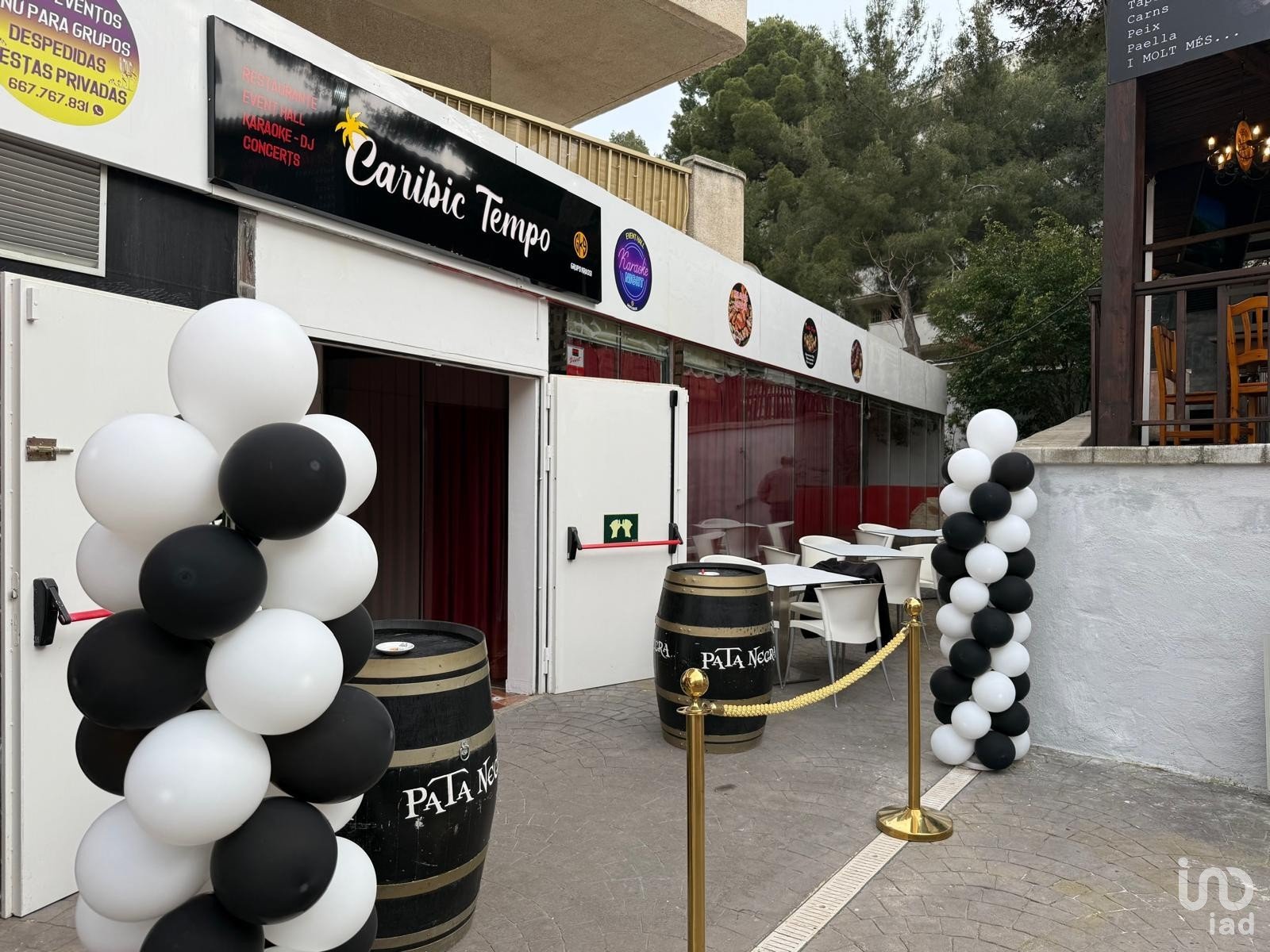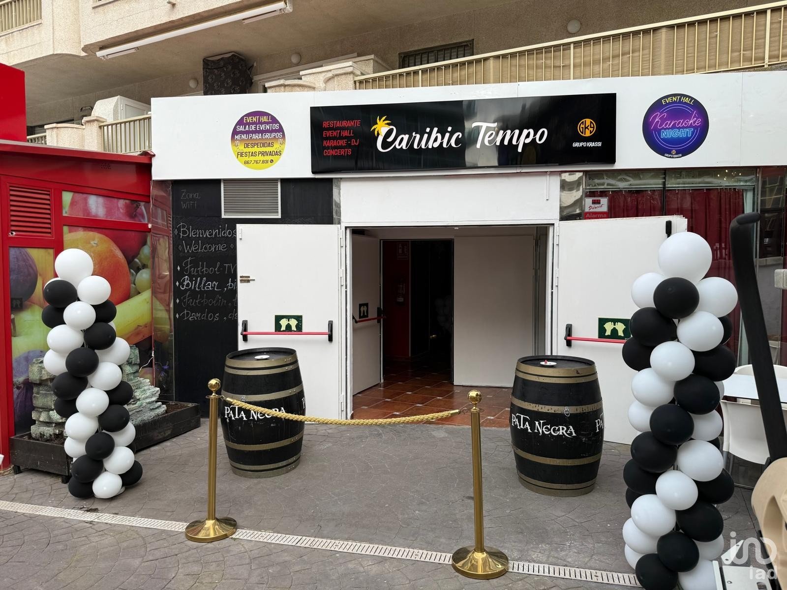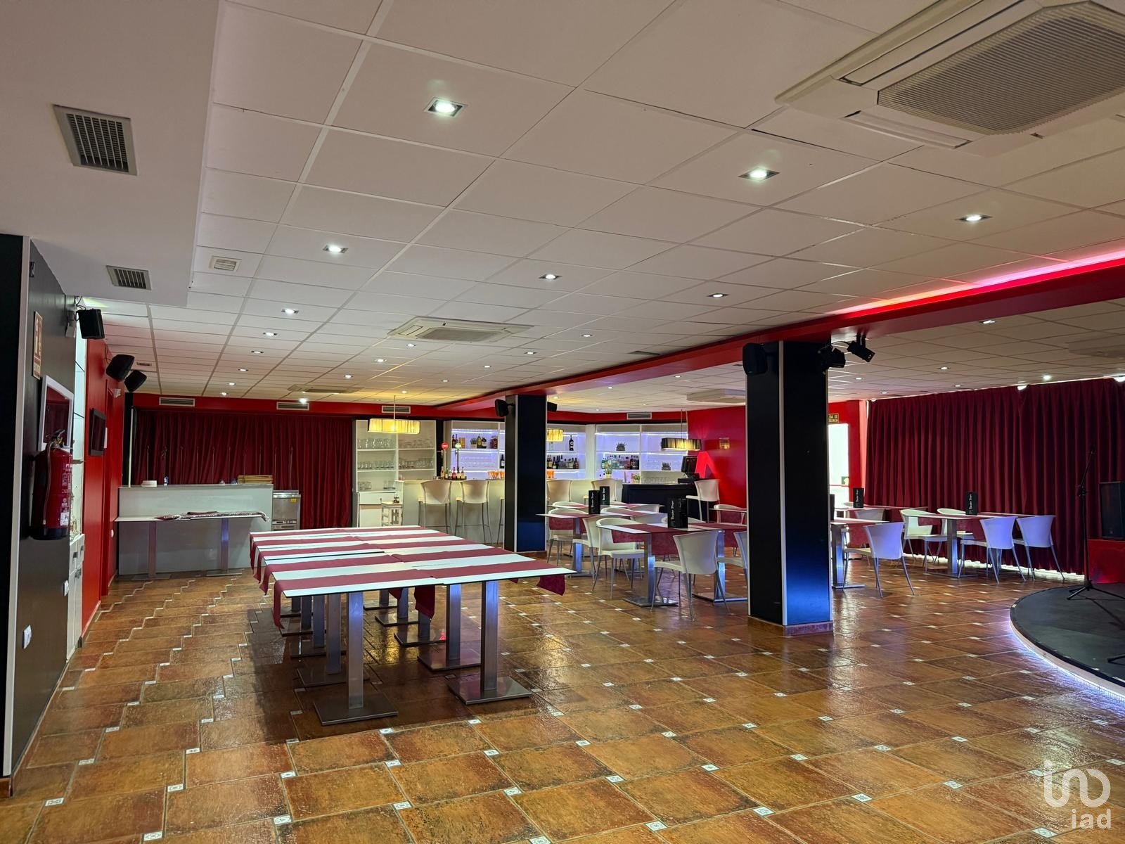 Dispone de mobiliario, cocina equipada, barra, frigorificos, bomba de calor 60000 frigorias, sistema de audio y video, zona de dj, camerino...