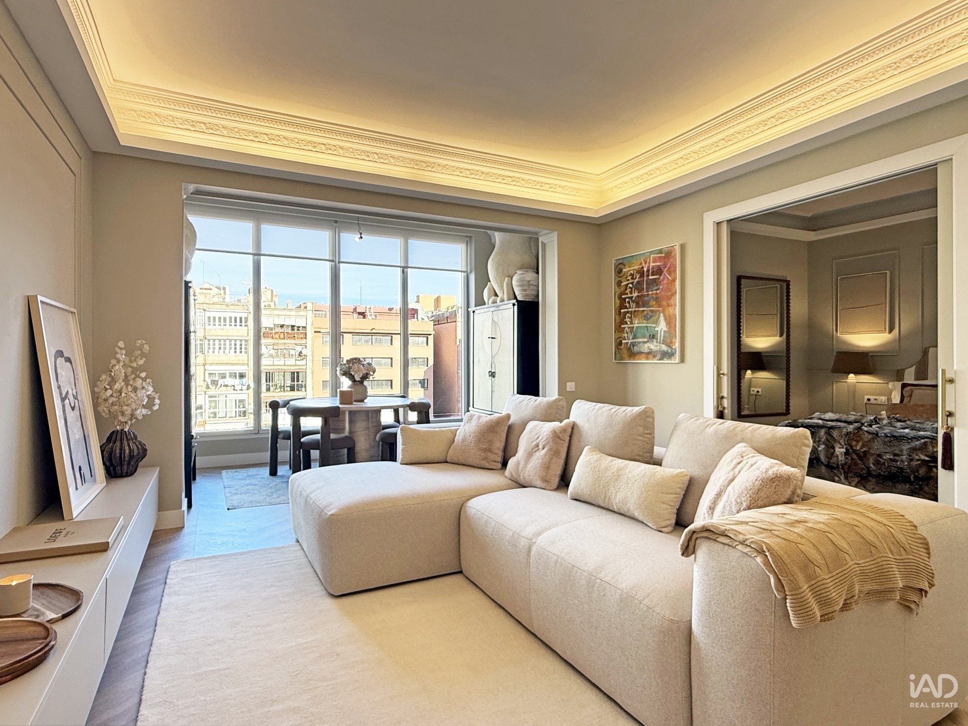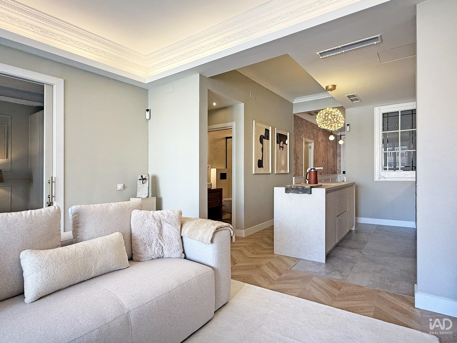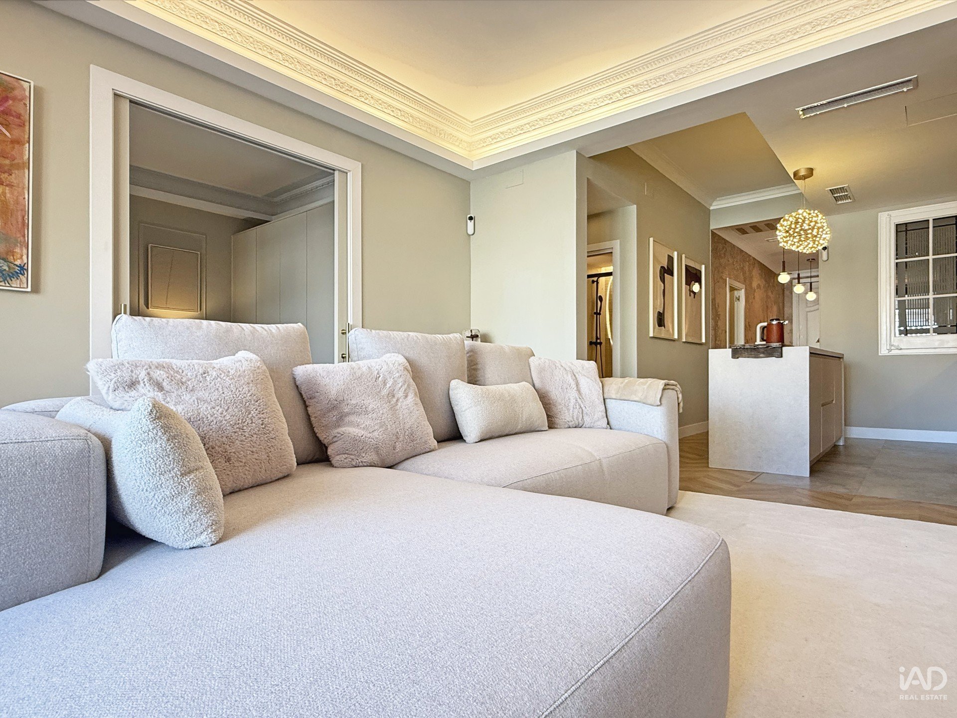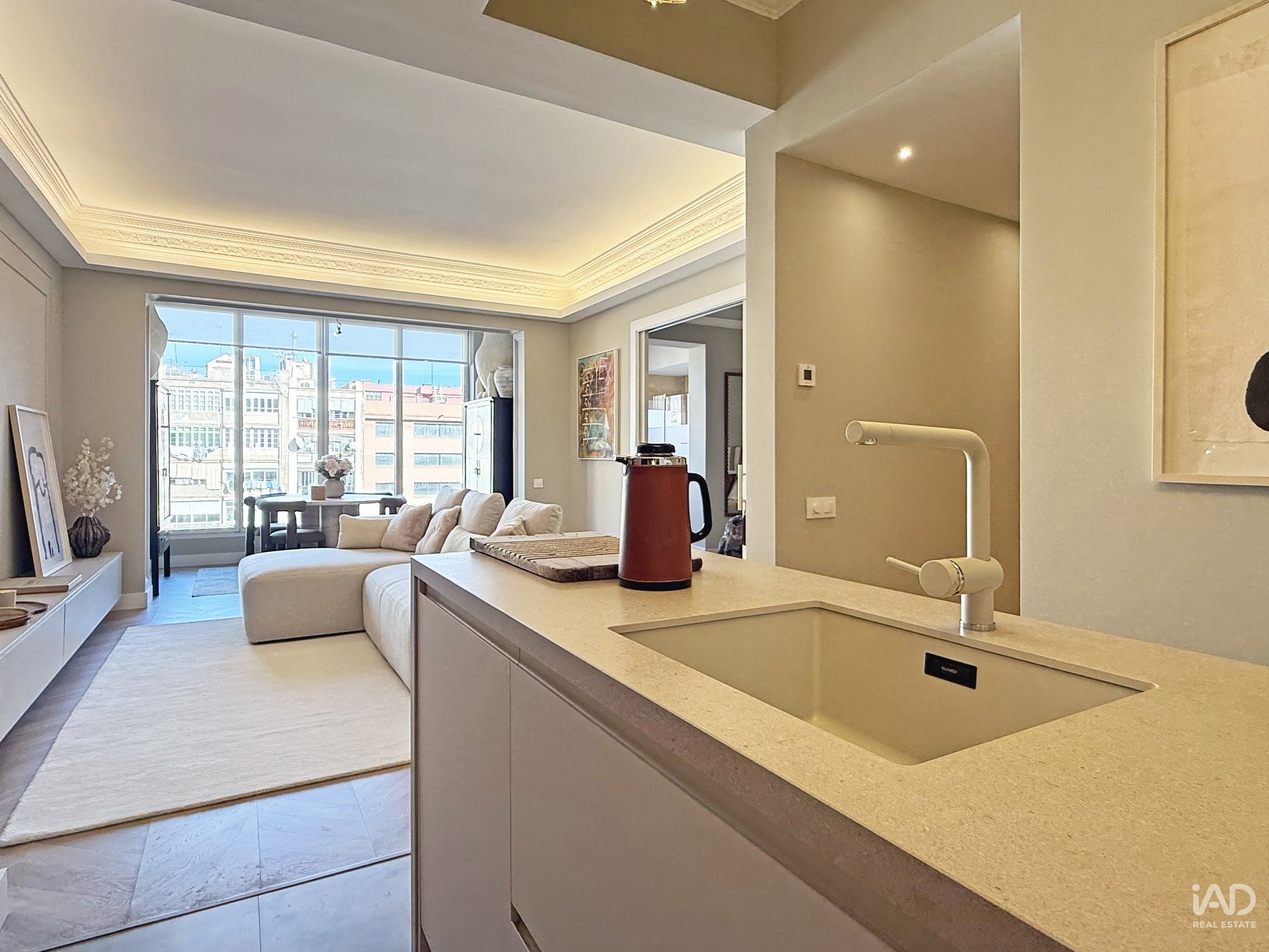 The seamless connection between the living room and kitchen provides a fluid and elegant experience, designed for those who appreciate quality in every detail.