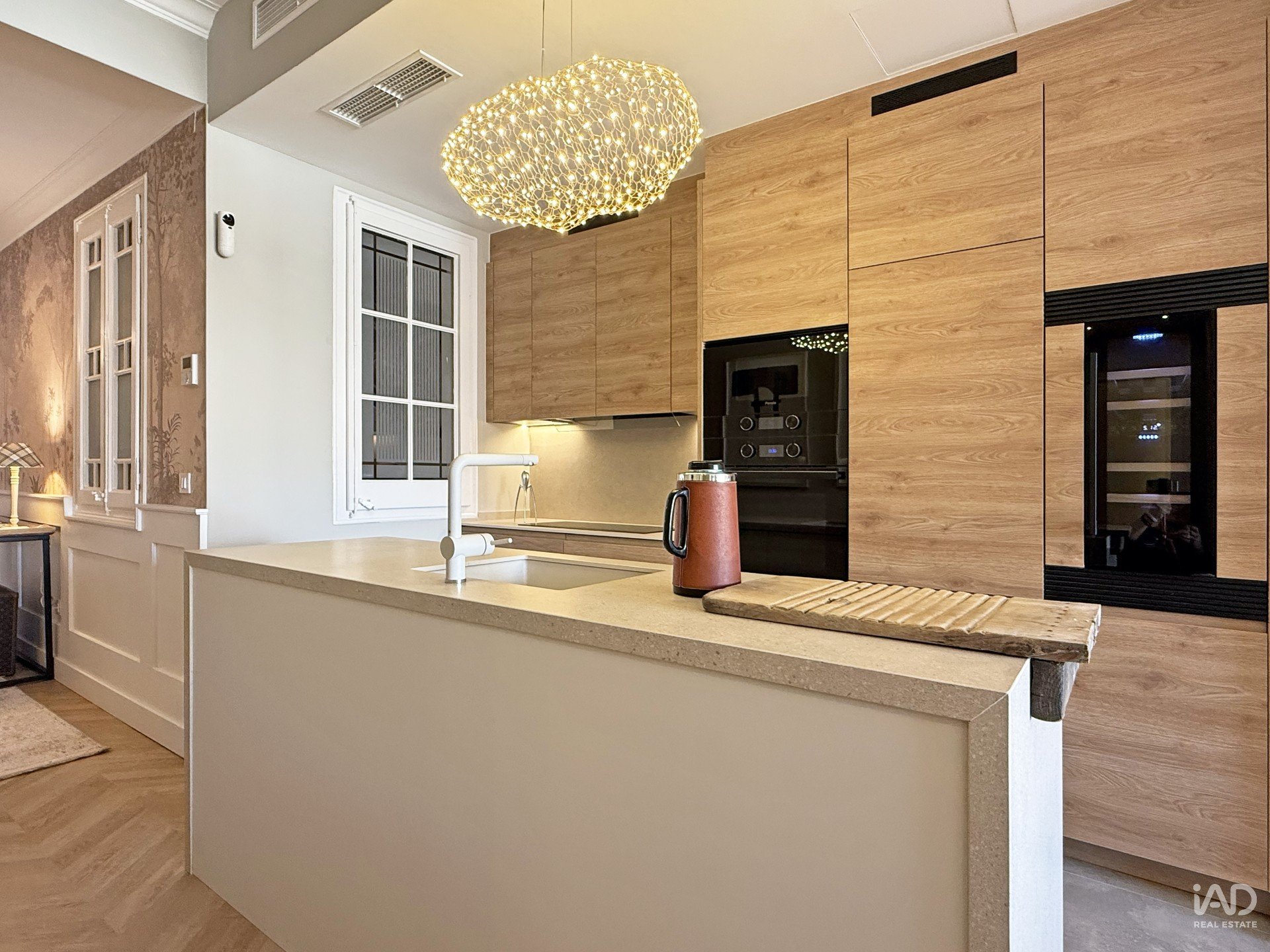 Integration with an American-style kitchen featuring an island and equipped with high-end appliances—perfect for those seeking style, design, and practicality.