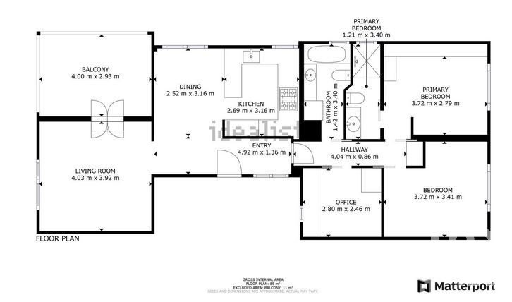 2 full bathrooms, including an en suite in the master bedroom.