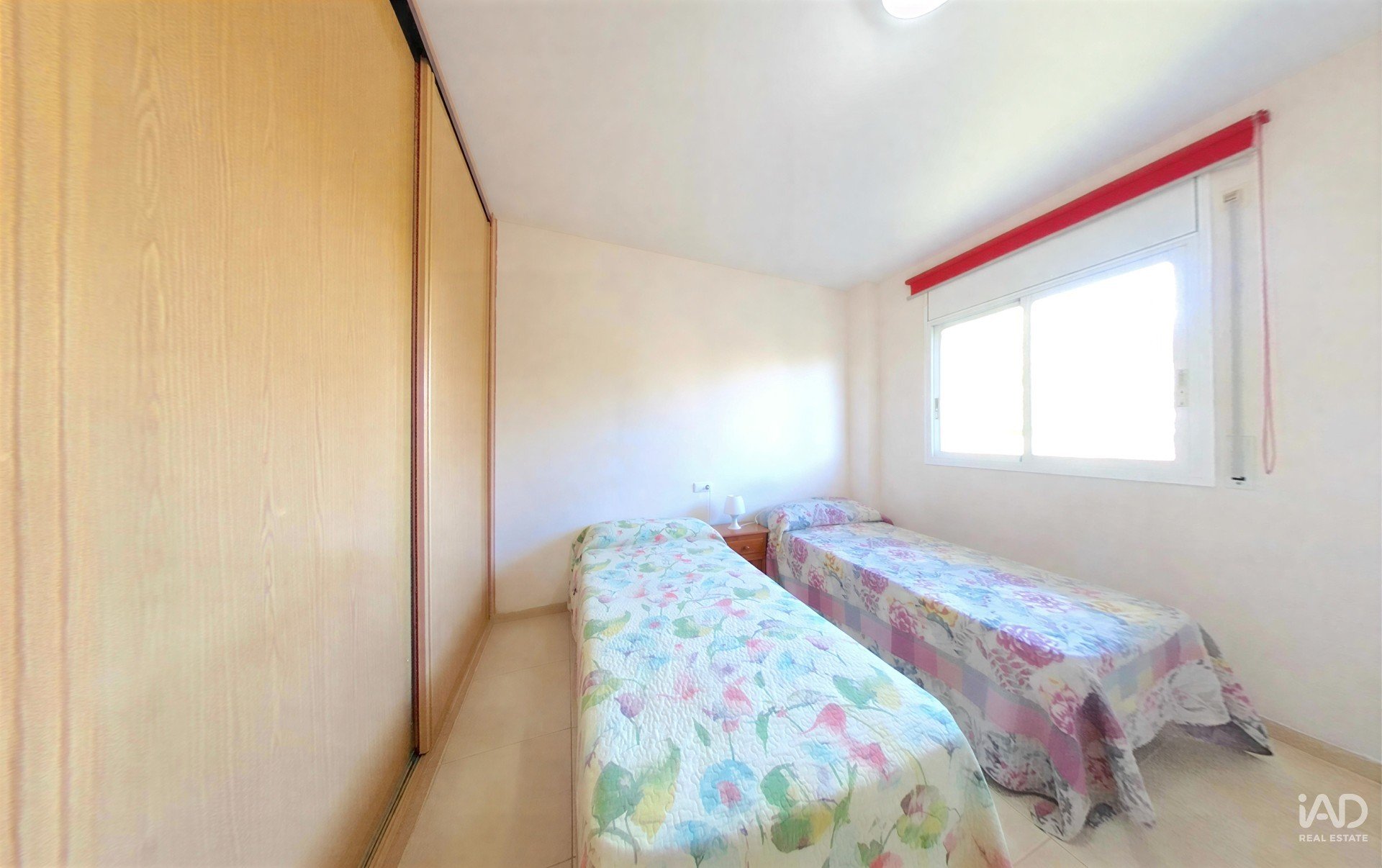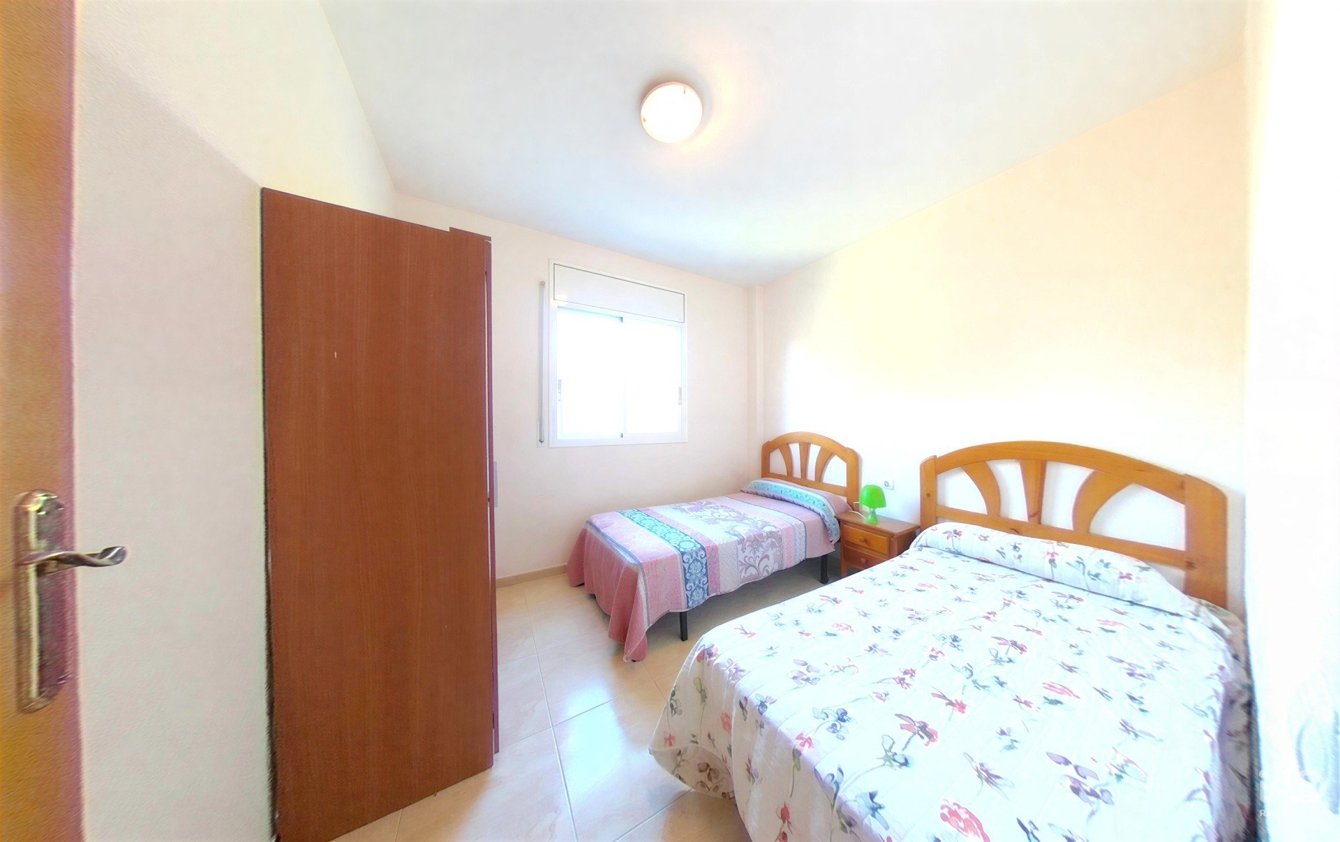 Third bedroom: another twin bedroom with two individual beds, a bright window with pleasant garden views and a practical closet.