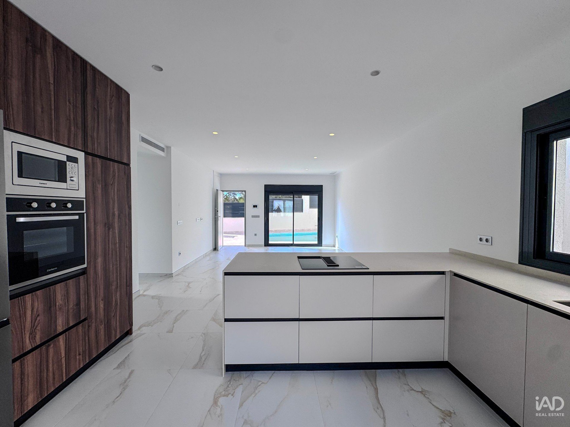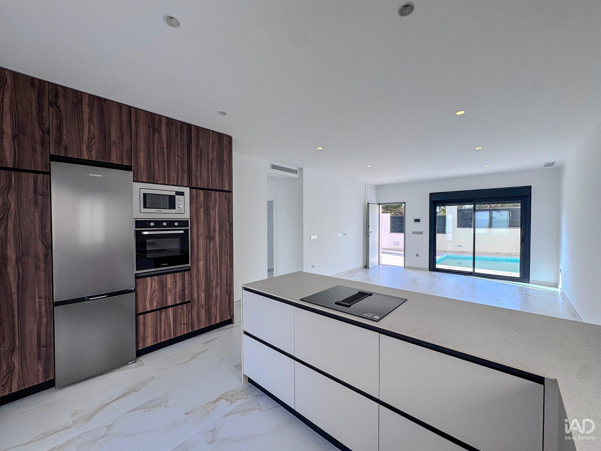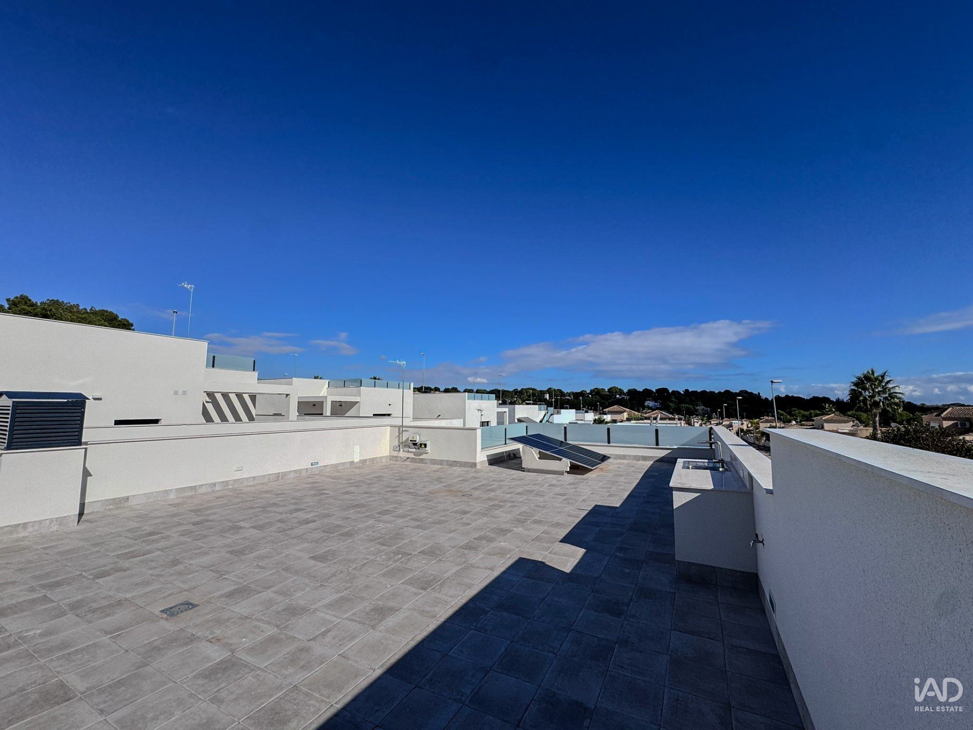 La cocina se abre a la gran sala de estar, que se conecta directamente con la terraza y la piscina. Mediante una escalera externa, se accede al gran solarium desde donde tendrán unas espectaculares vistas panorámicas y a su vez podrán disfrutar de unas exquisitas barbacoas en familia, con amigos y también tomar el sol en la tranquilidad de tu hogar.