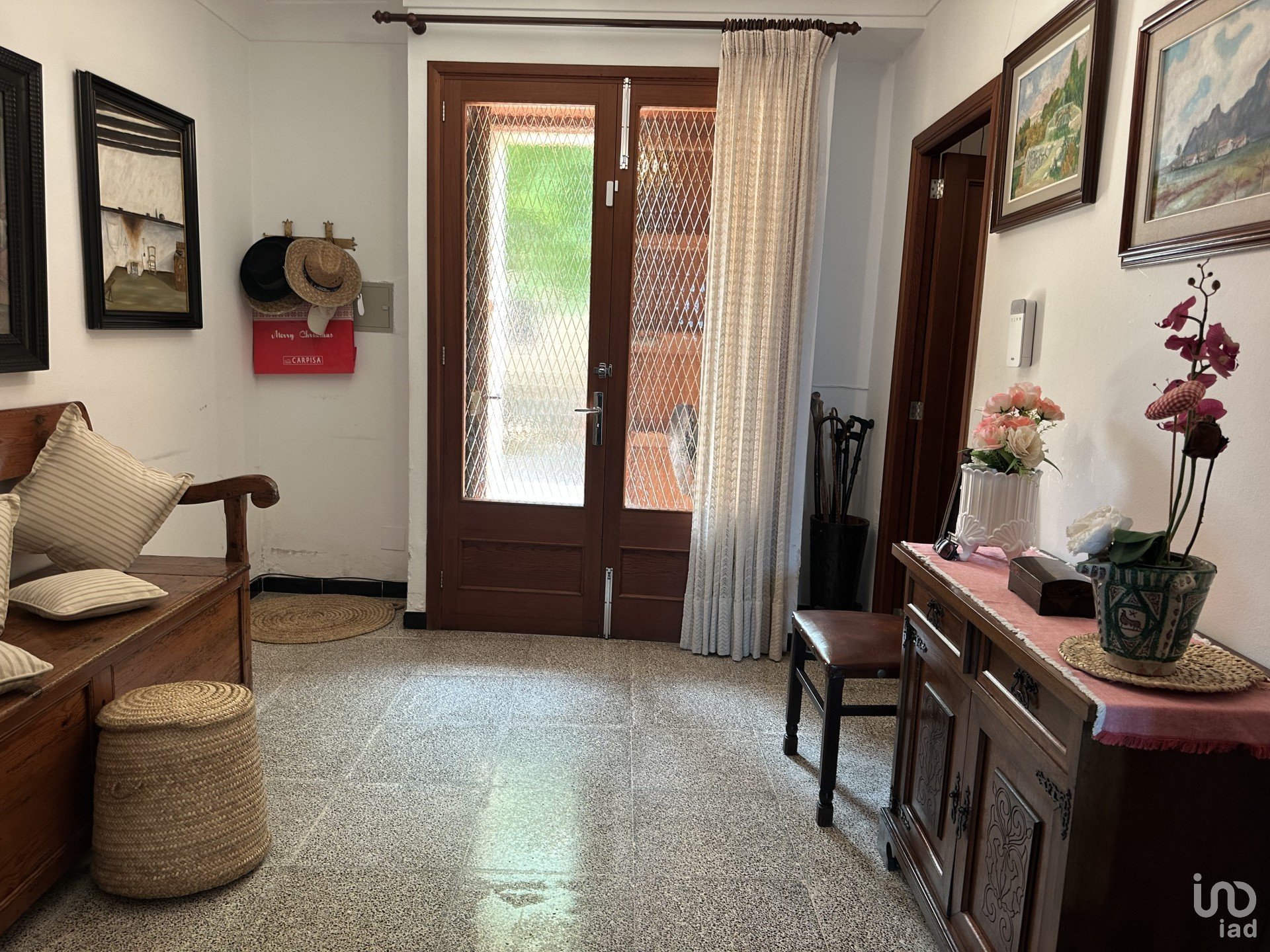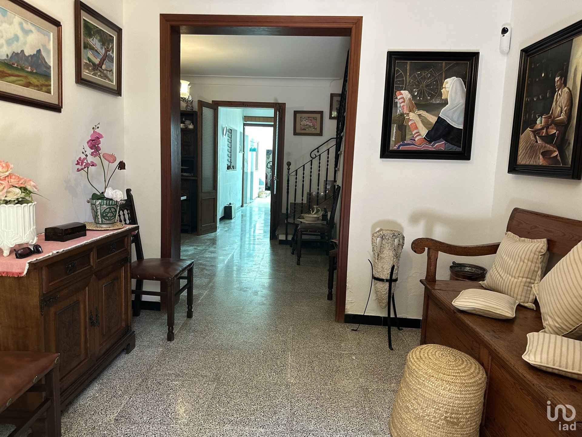 The home features three spacious bedrooms and two bathrooms, offering a functional setting for both families and those seeking additional space for guests. It also features a small private garage, a cozy interior patio, and a sunny terrace for enjoying the outdoors and summer dinners. Also noteworthy is the outdoor kitchen, which boasts a wealth of personality.