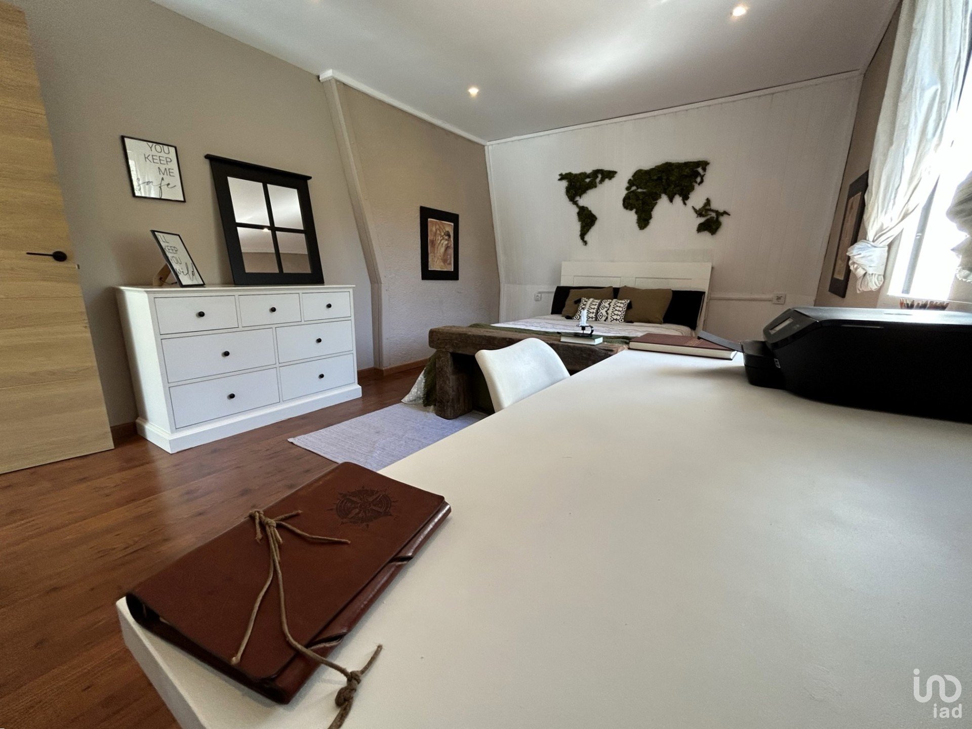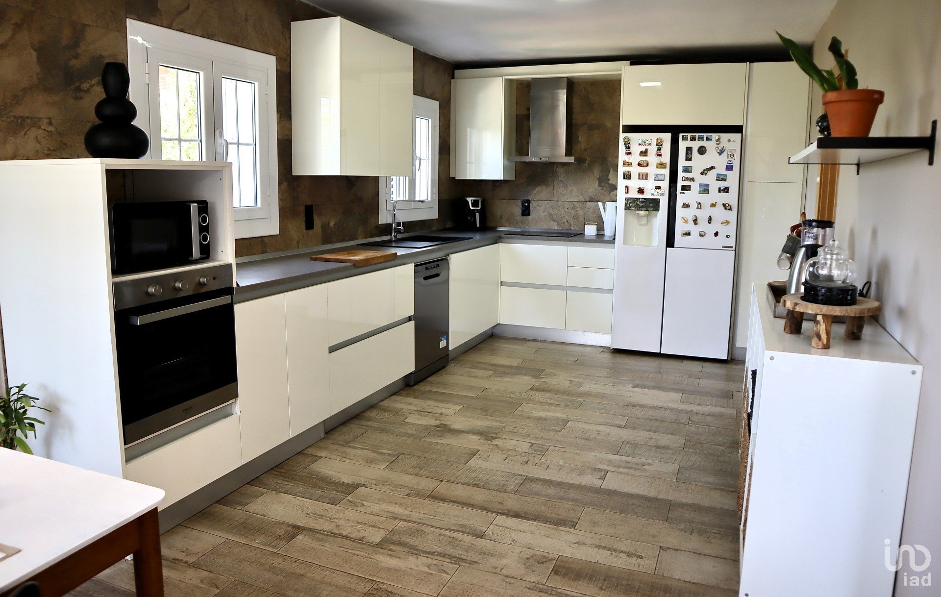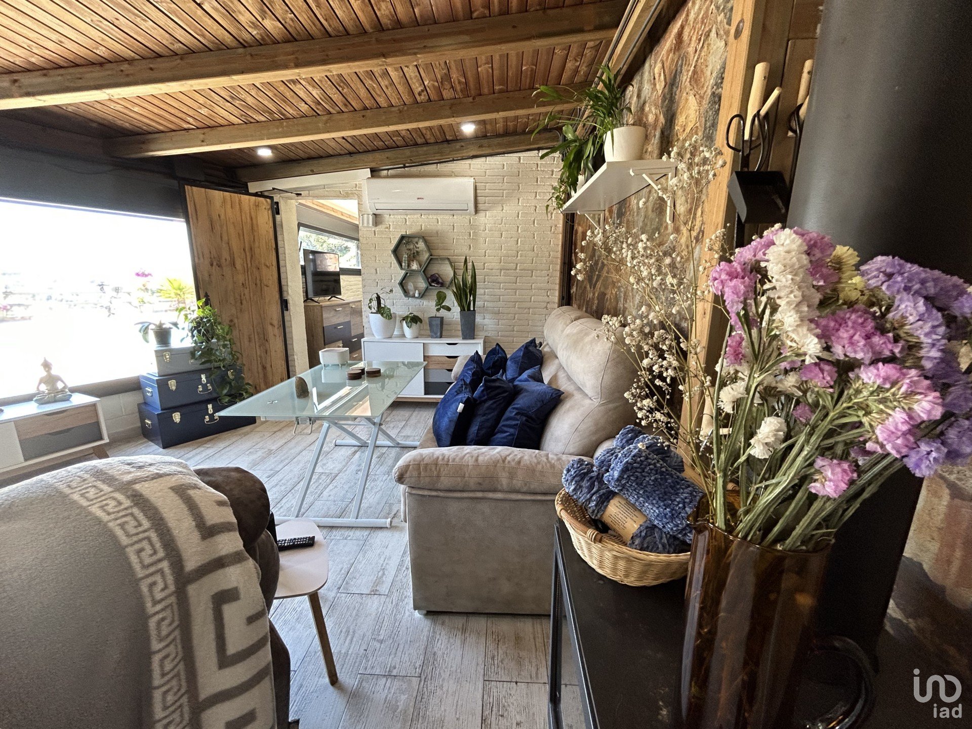 In terms of finishes, these are diverse, aluminum enclosures with double glass, beech and oak doors, parquet and stoneware on the floors and different air conditioning splits with heat pumps distributed throughout the house.