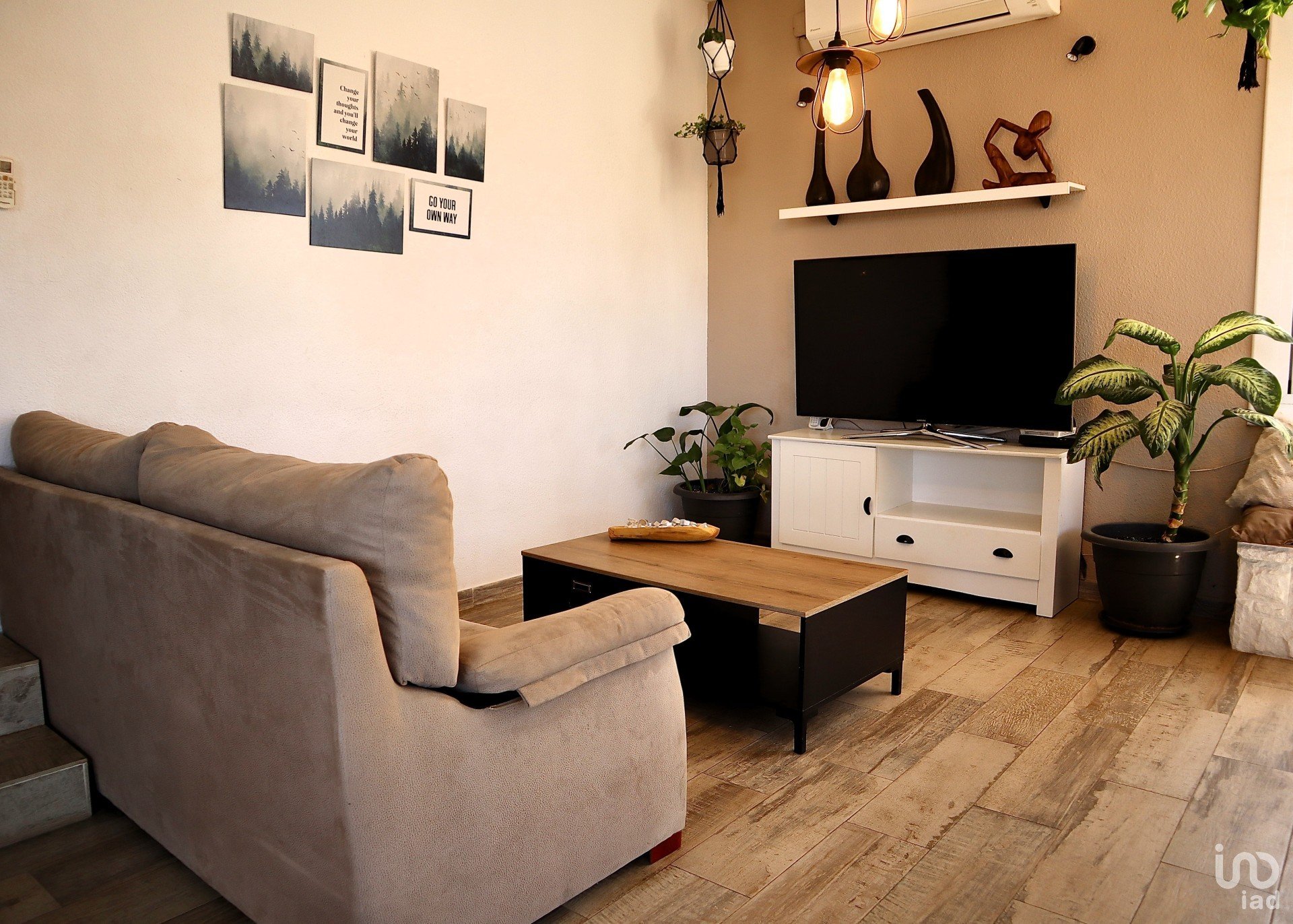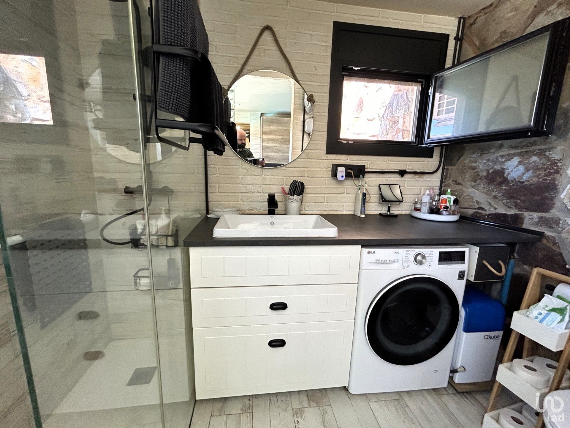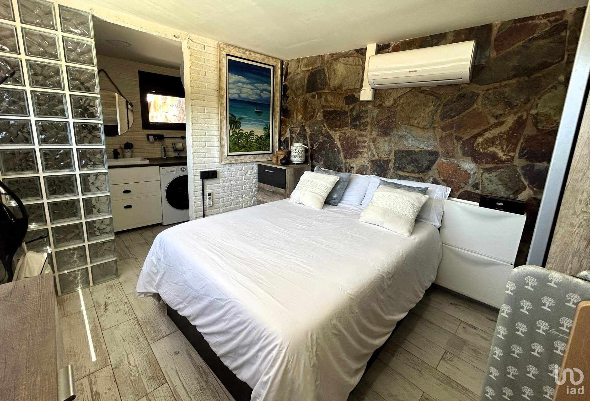 In terms of finishes, these are diverse, aluminum enclosures with double glass, beech and oak doors, parquet and stoneware on the floors and different air conditioning splits with heat pumps distributed throughout the house.