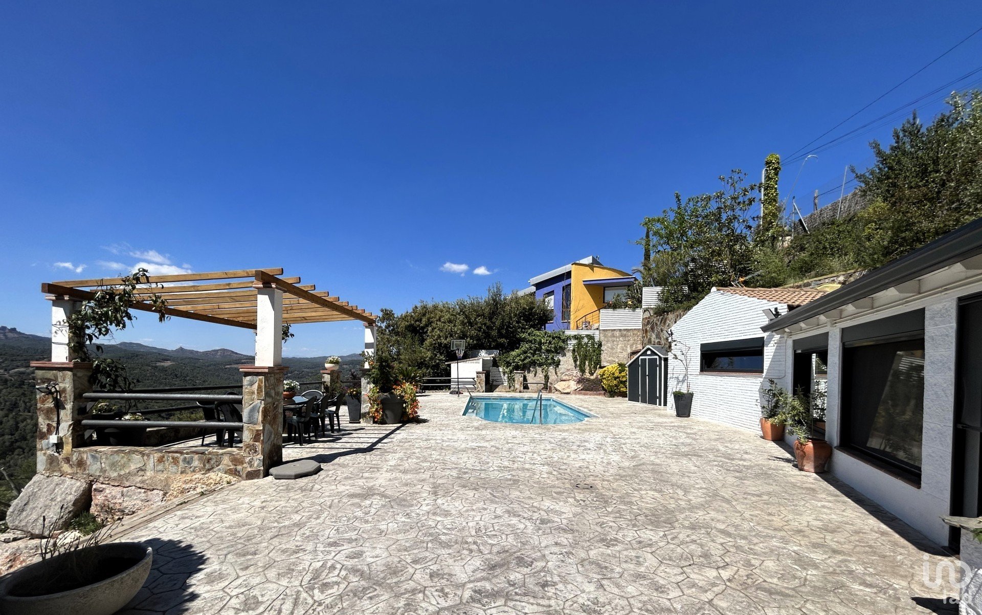 It is built on a 1633m² plot of land (actually there are 2 independent plots) and has 214m² built plus the pool area and guest housing.